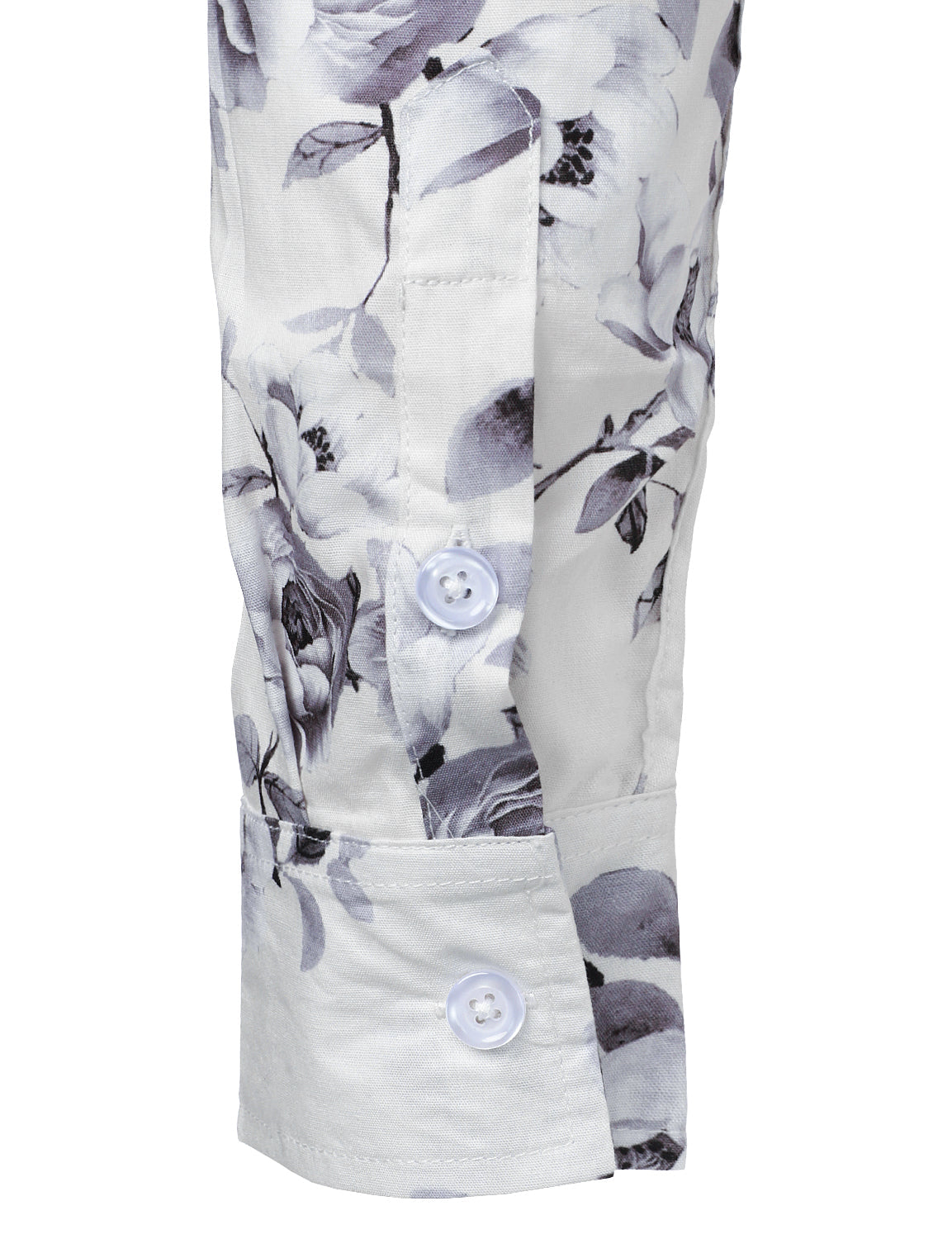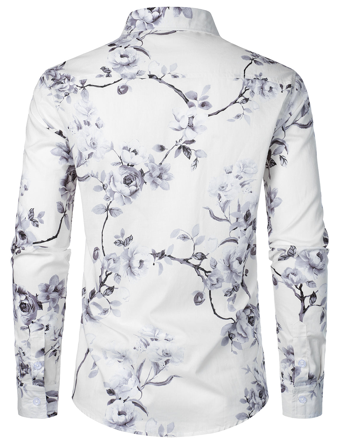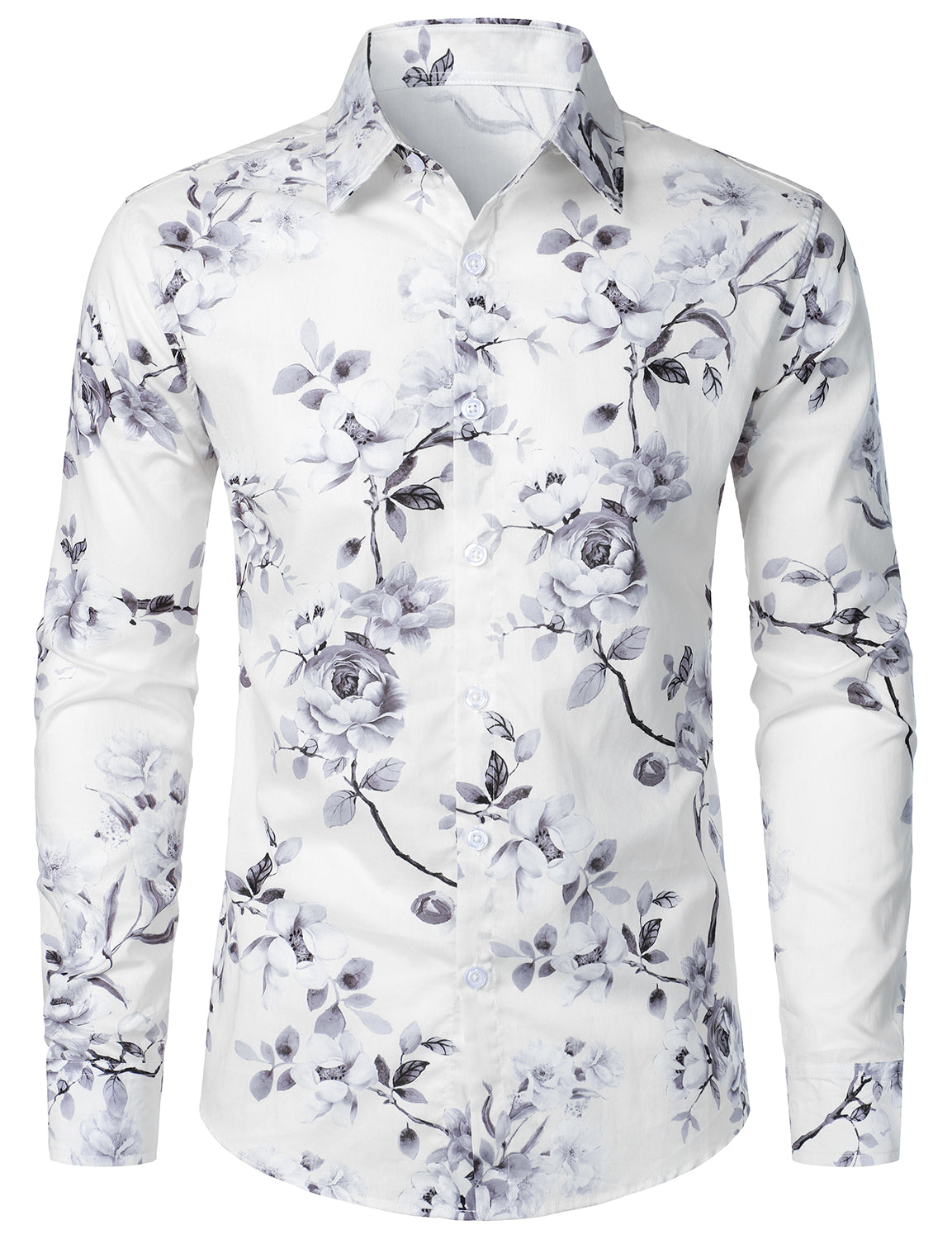 Men's Cotton Rose Print Casual Button Up Long Sleeve Shirt