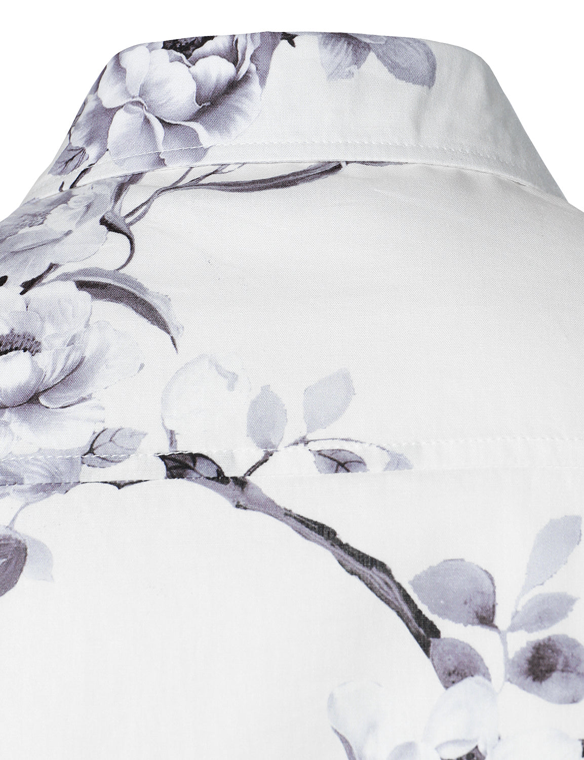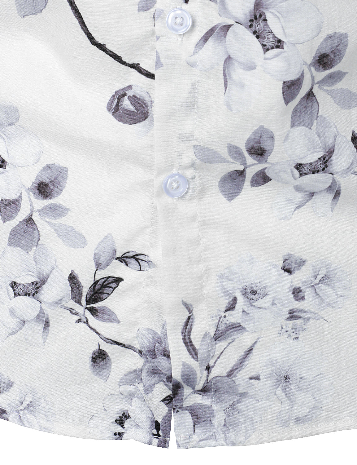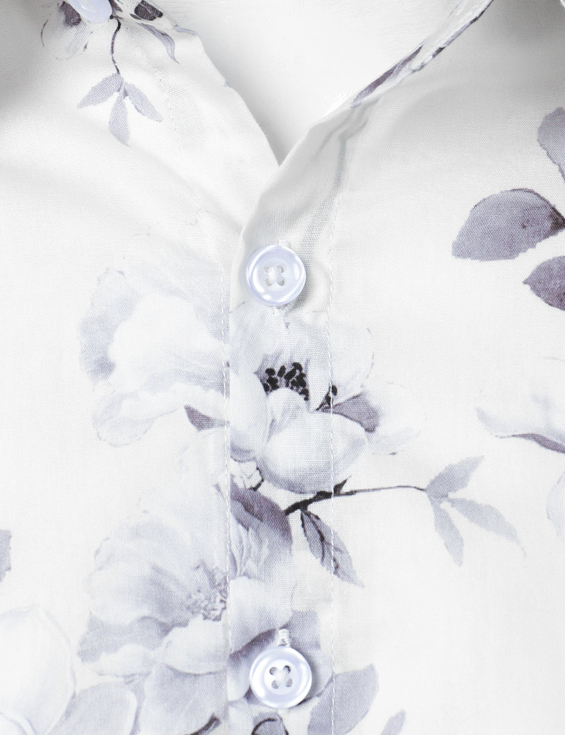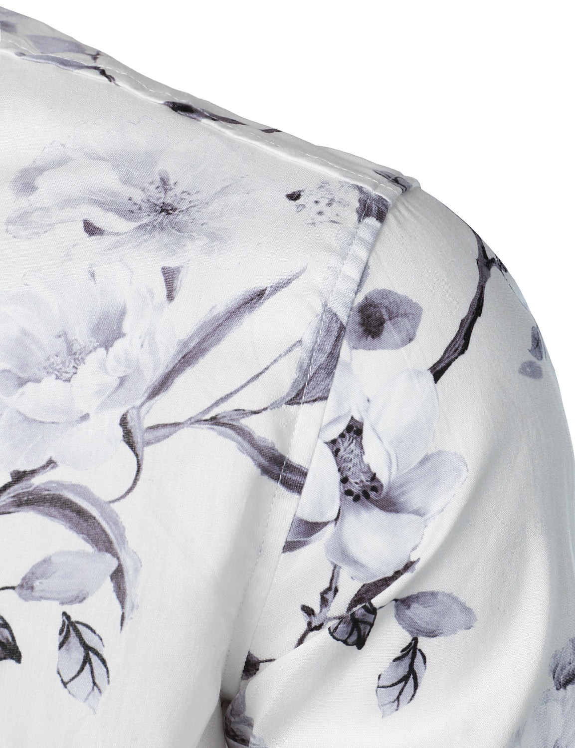Men's Cotton Rose Print Casual Button Up Long Sleeve Shirt