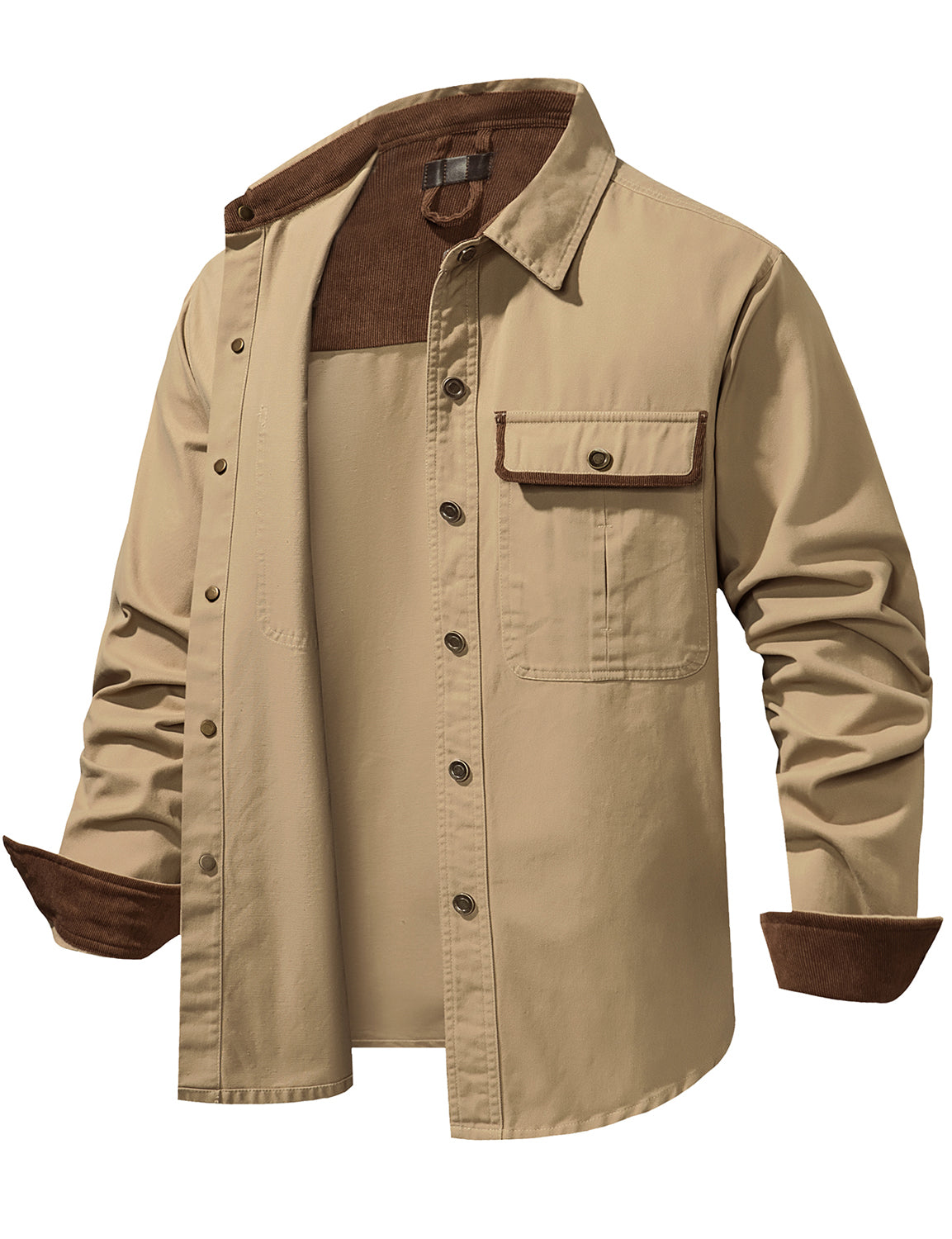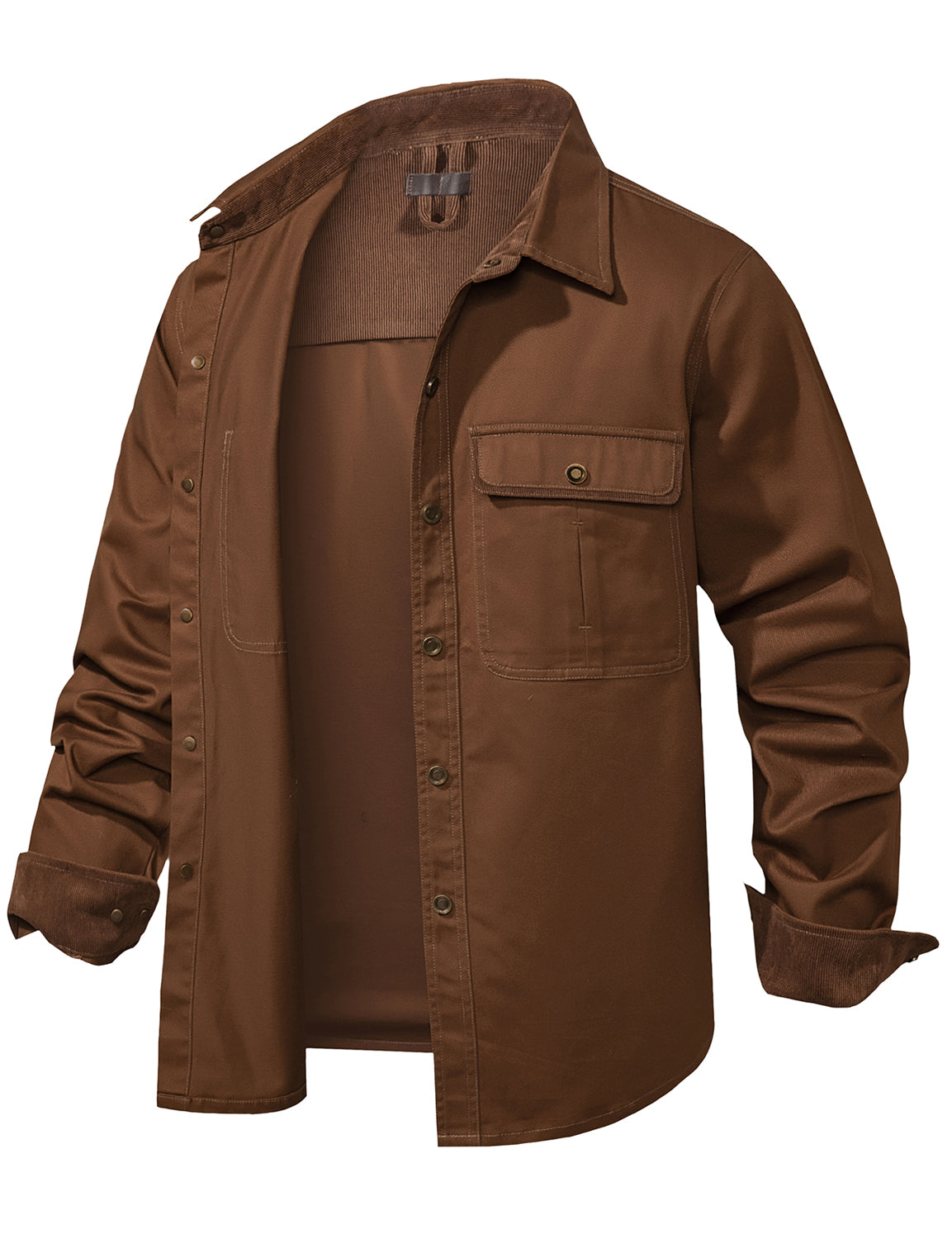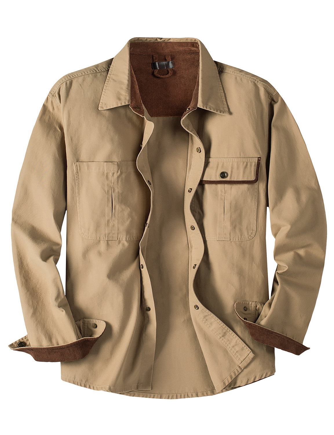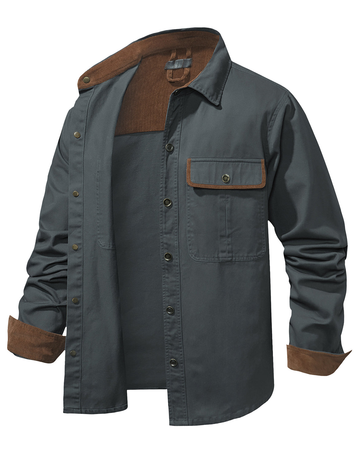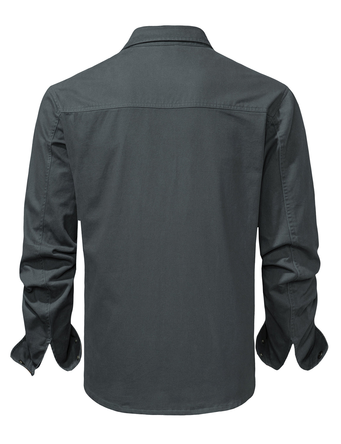 Men's Cotton Breathable Solid Color Casual Button Up Lapel Long Sleeve Shirt