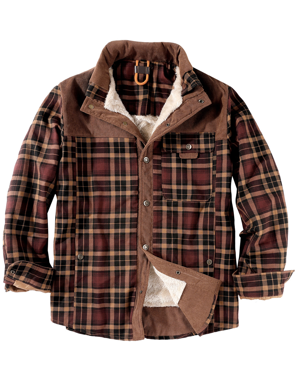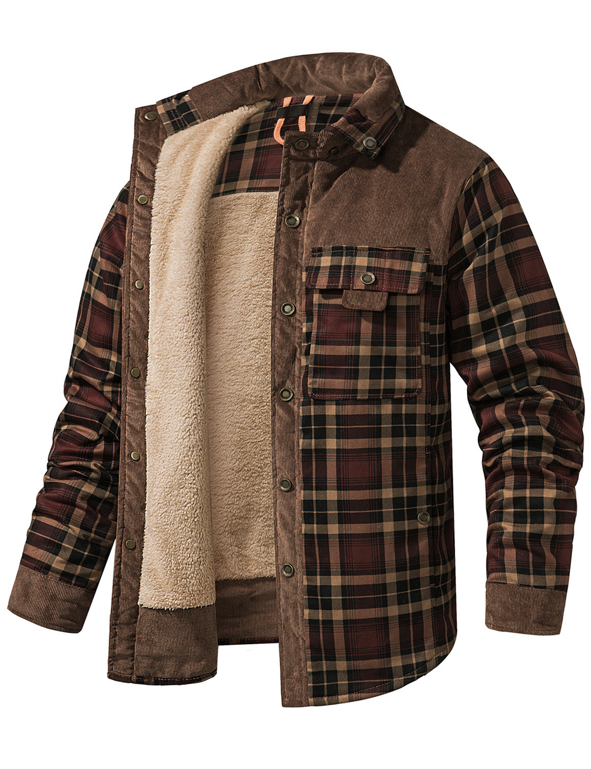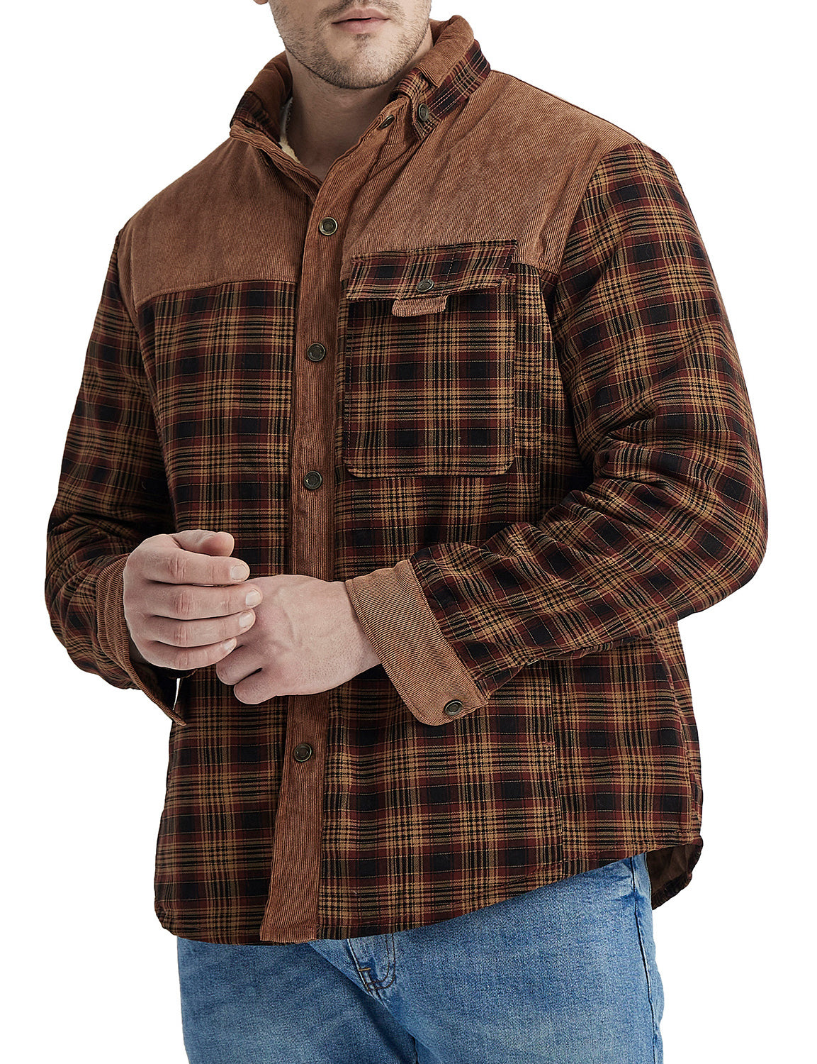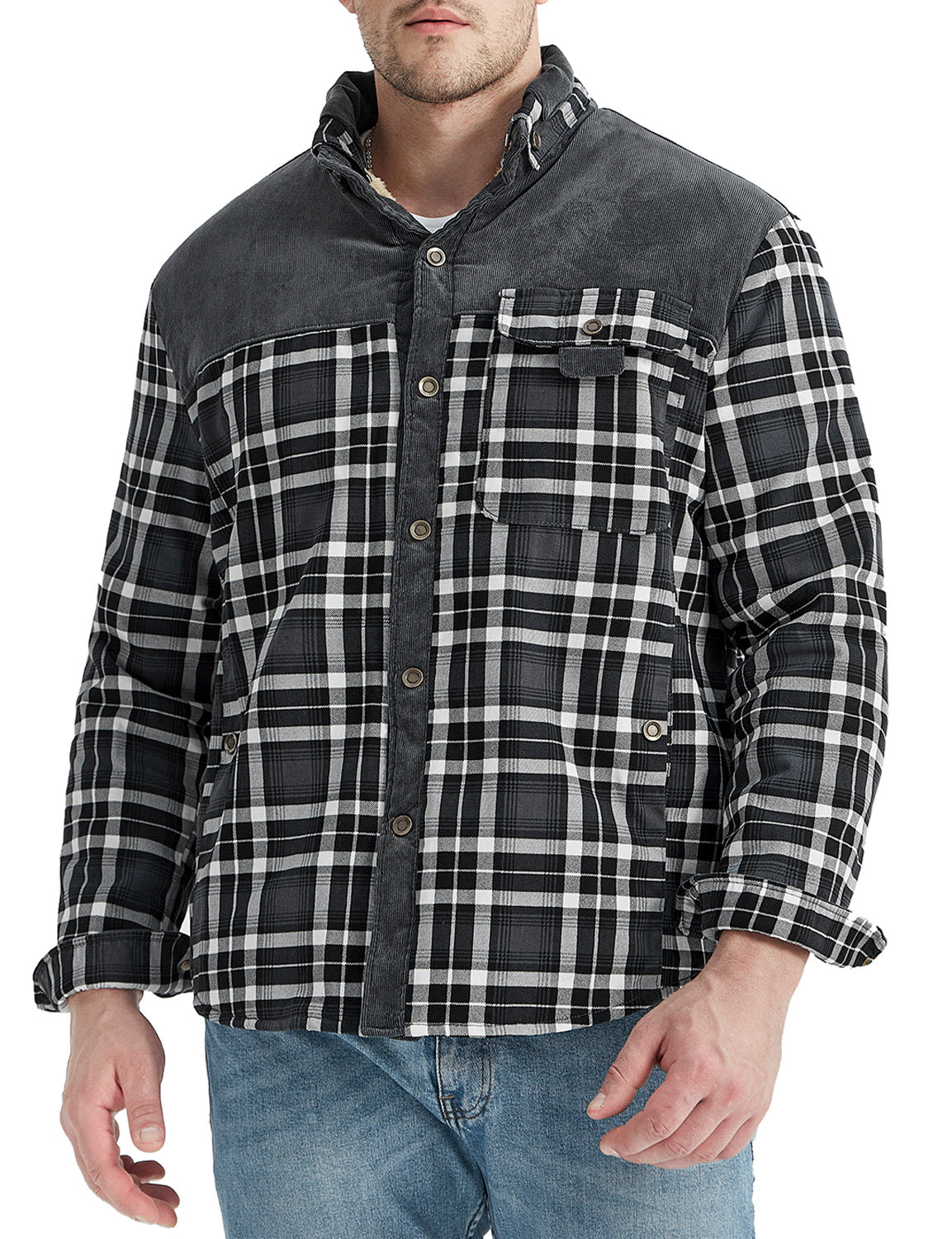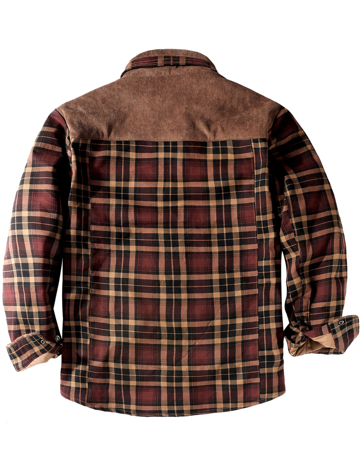 Men's Plaid Double Pocket Button Up Checkered Lapel Long Sleeve Fall Winter Shirt