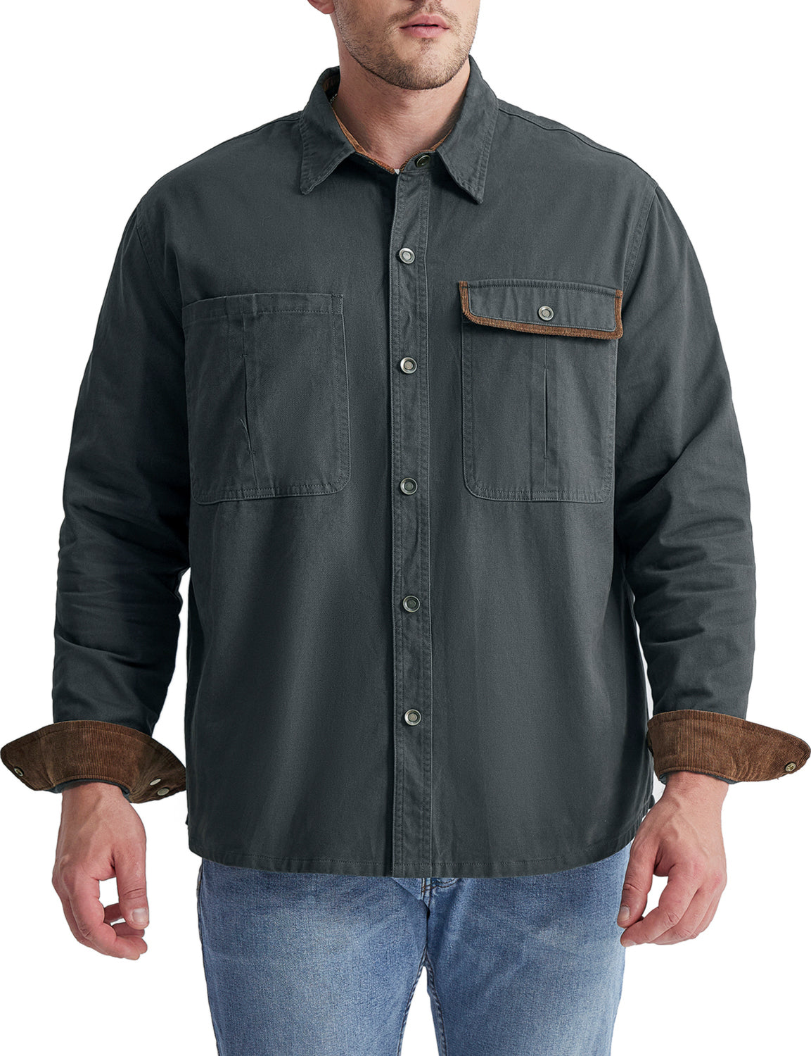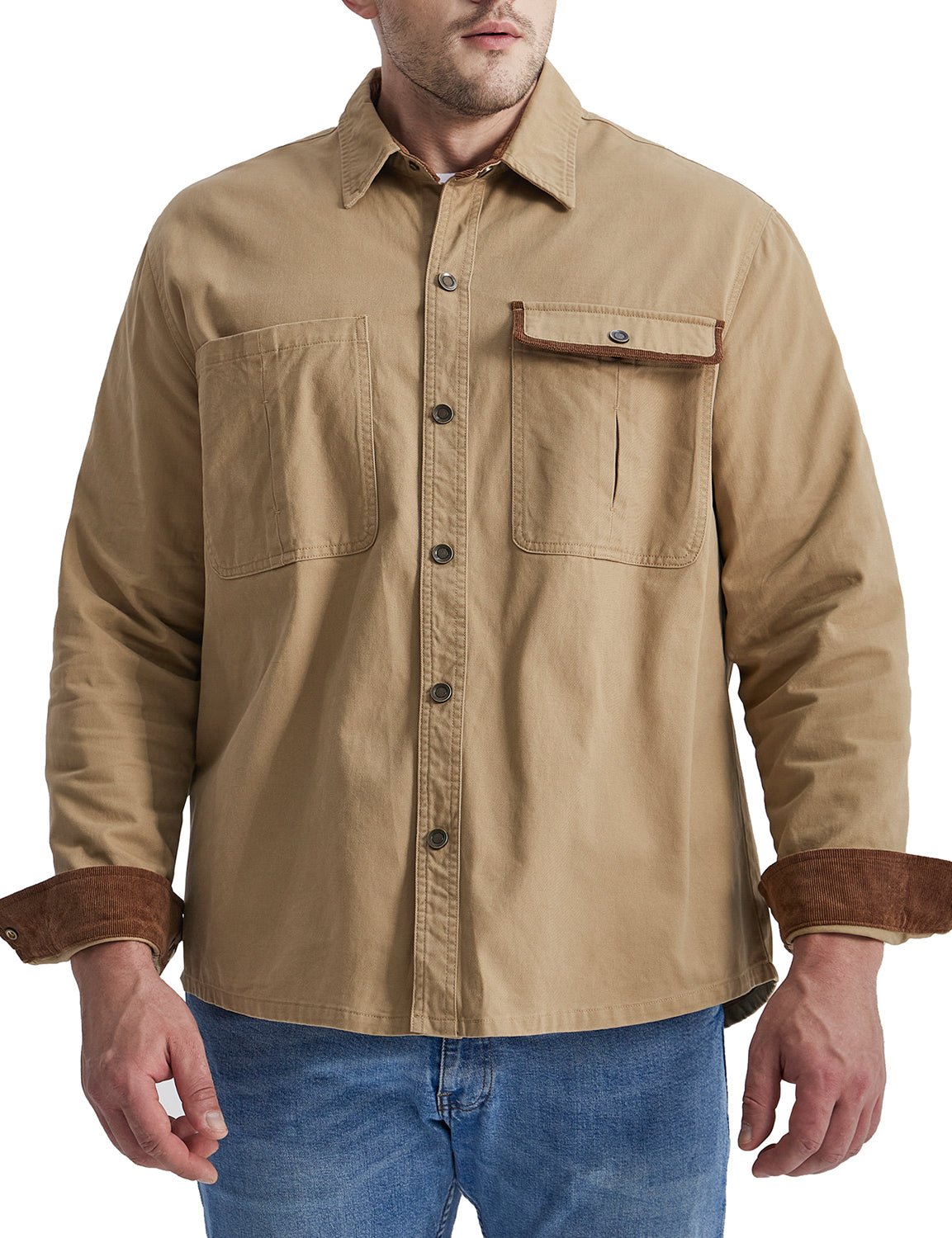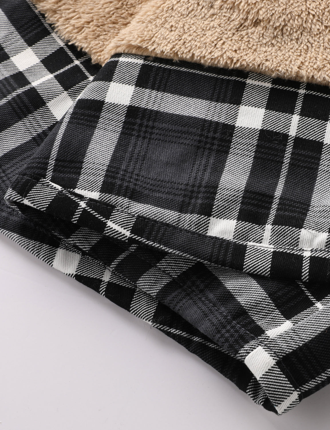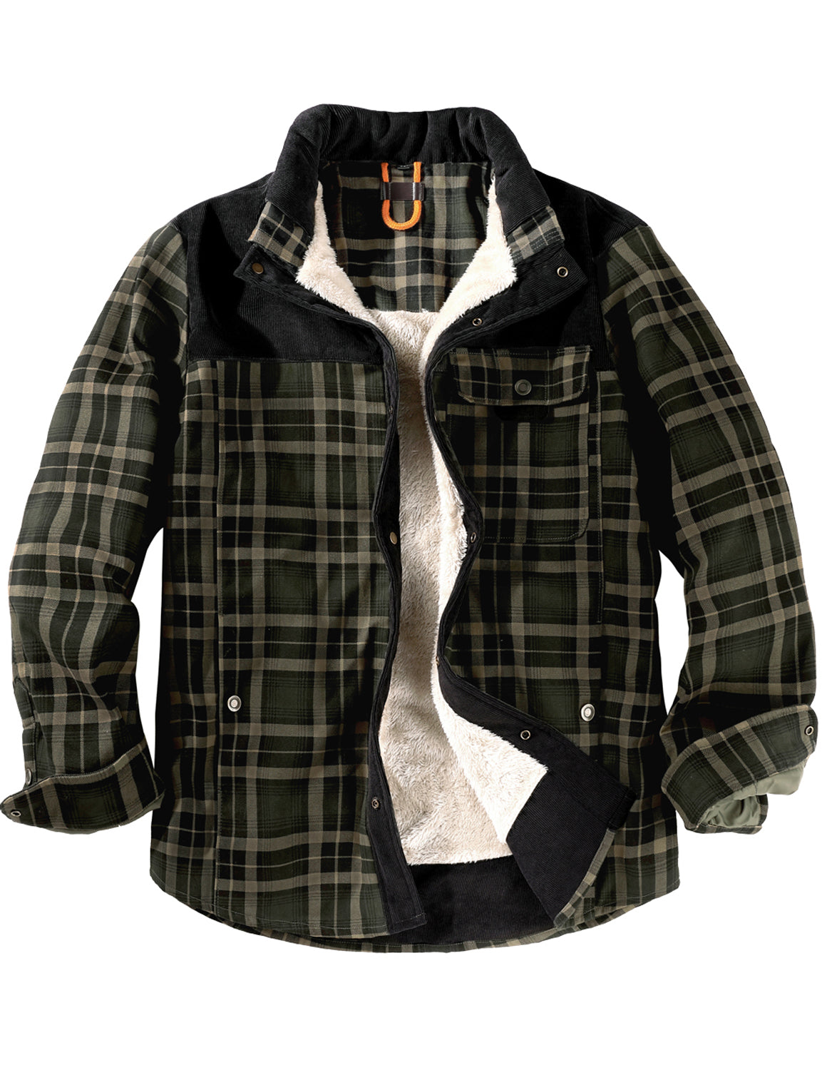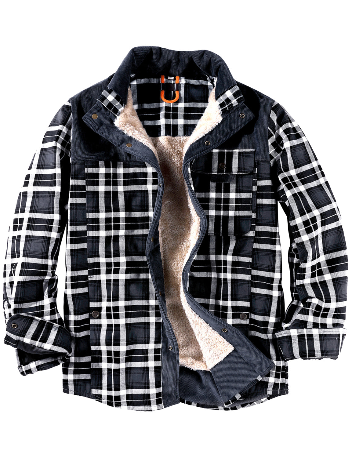 Men's Plaid Double Pocket Button Up Checkered Lapel Long Sleeve Fall Winter Shirt