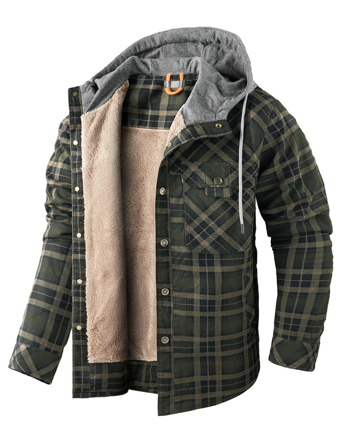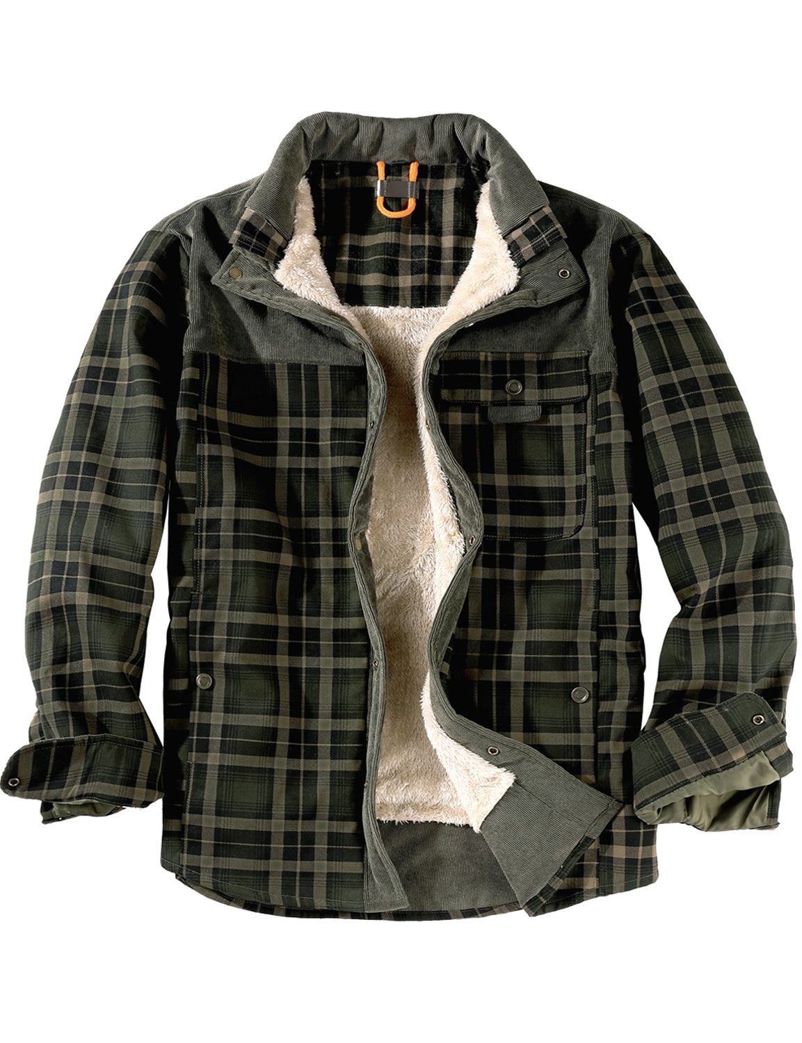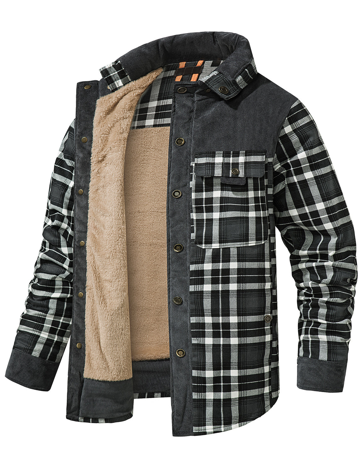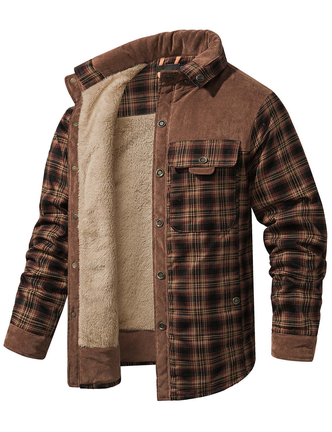Men's Plaid Double Pocket Button Up Checkered Lapel Long Sleeve Fall Winter Shirt