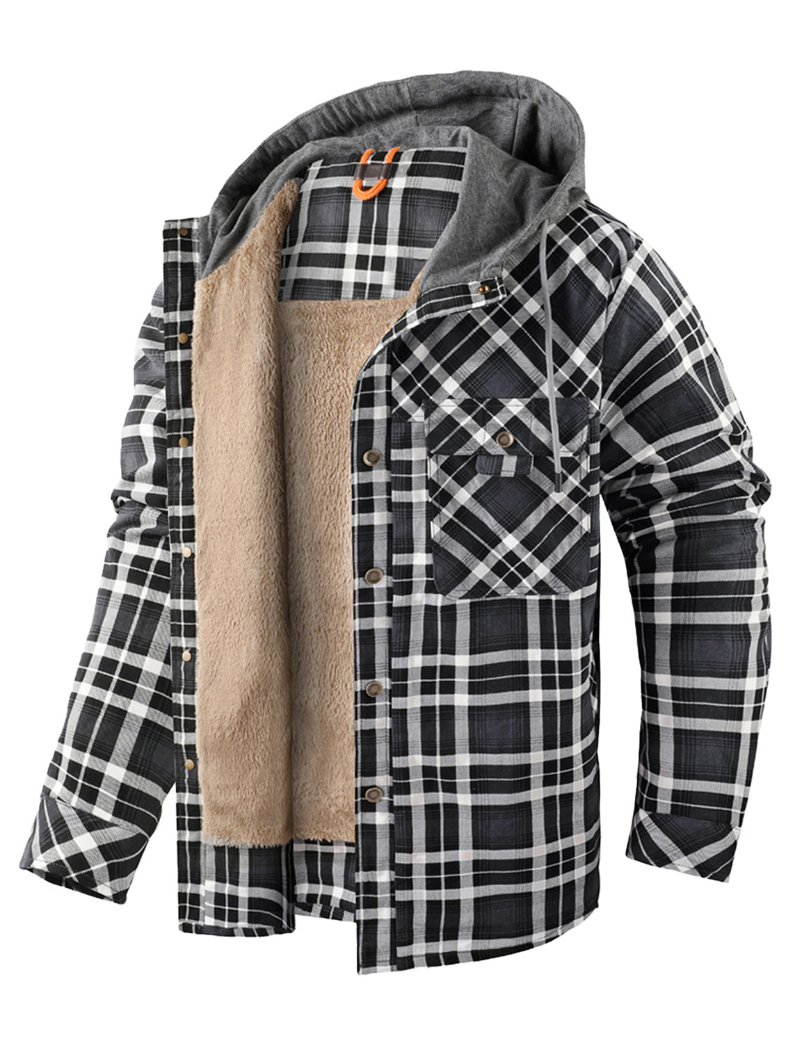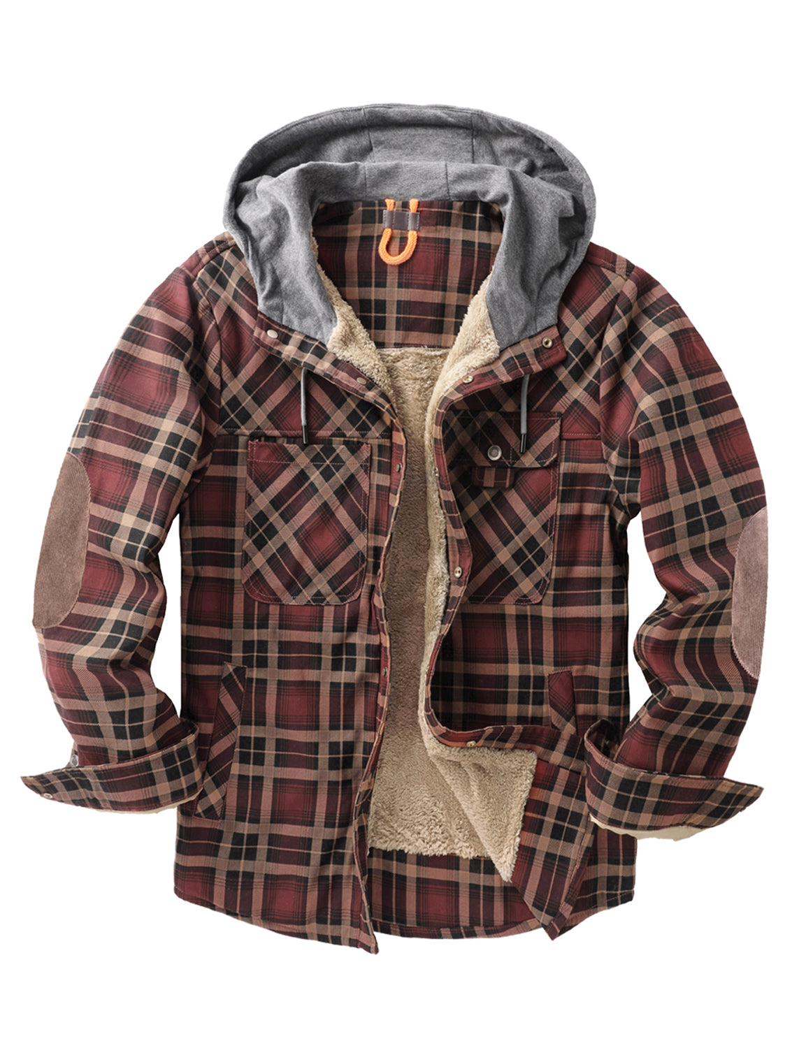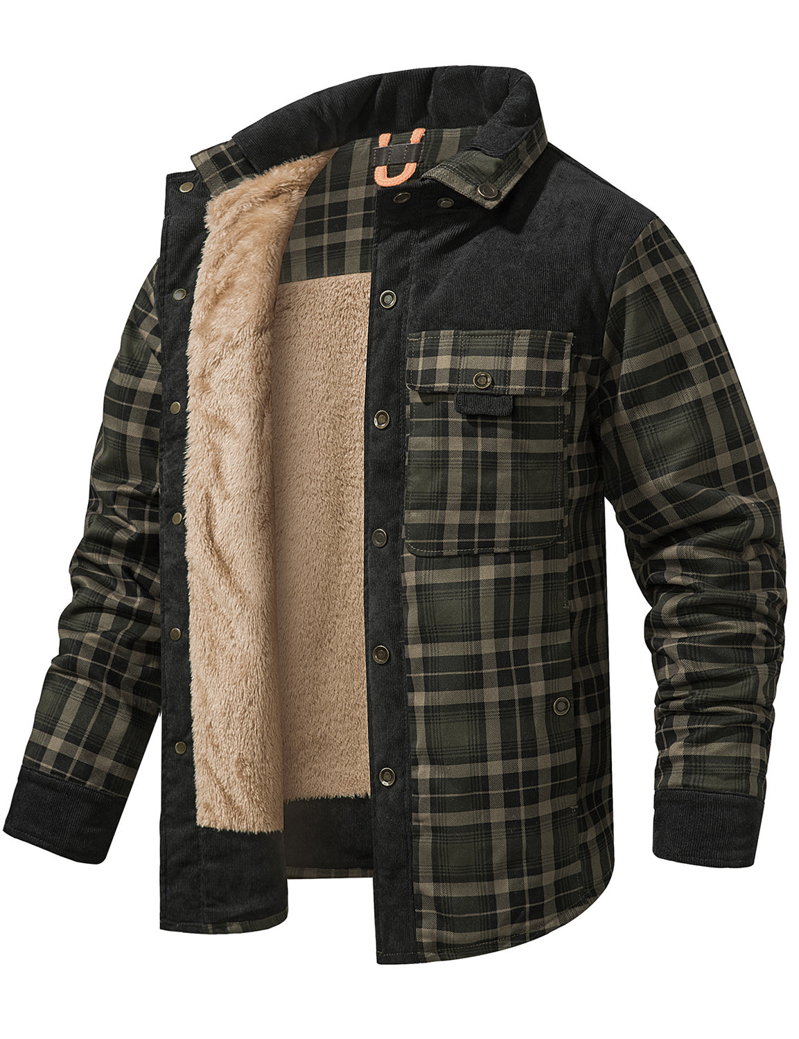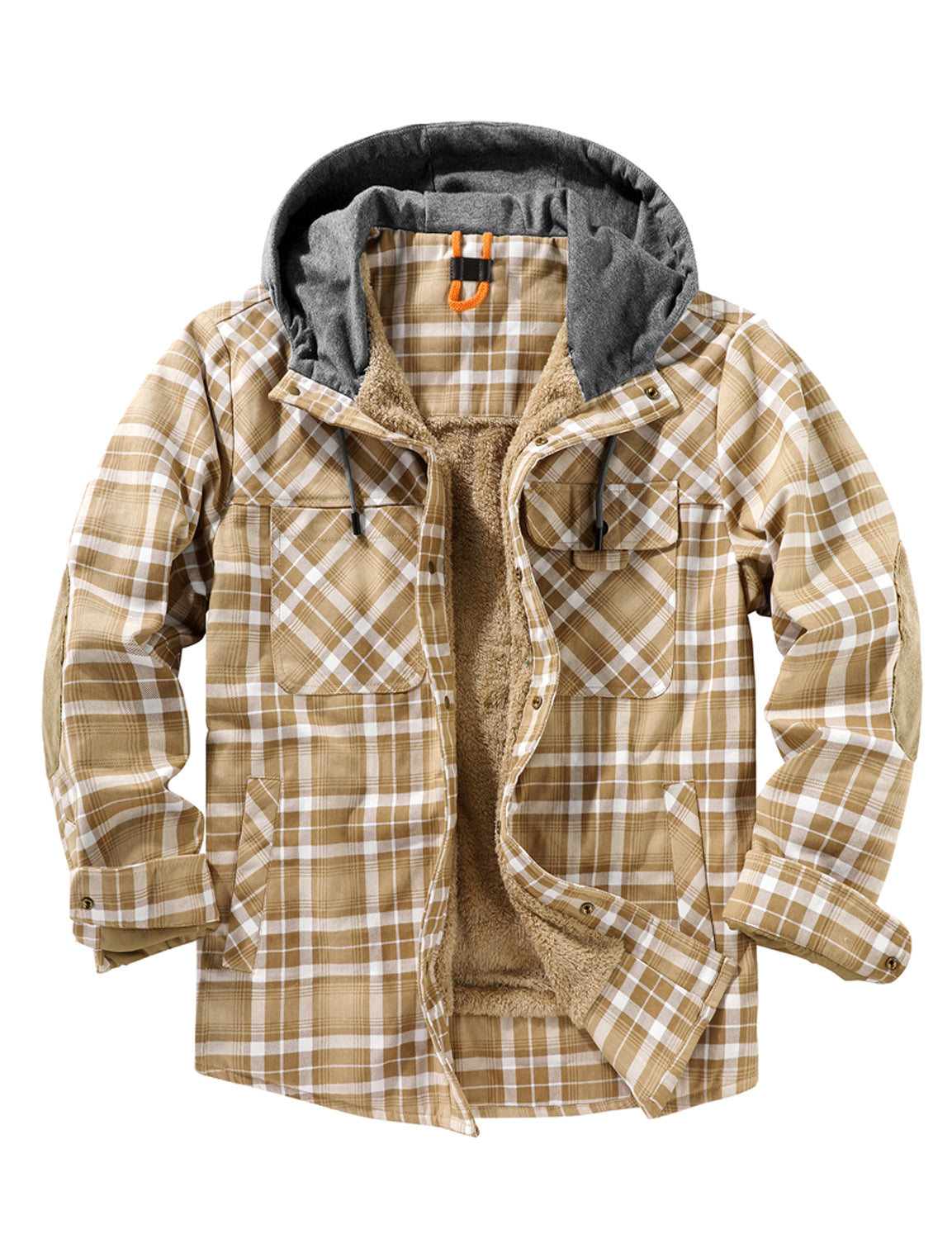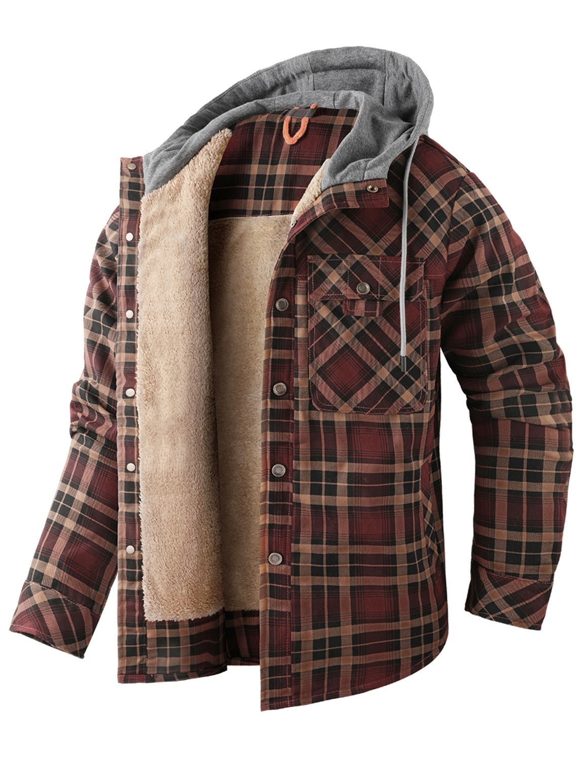 Men's Plaid Double Pocket Button Up Checkered Lapel Long Sleeve Fall Winter Shirt
