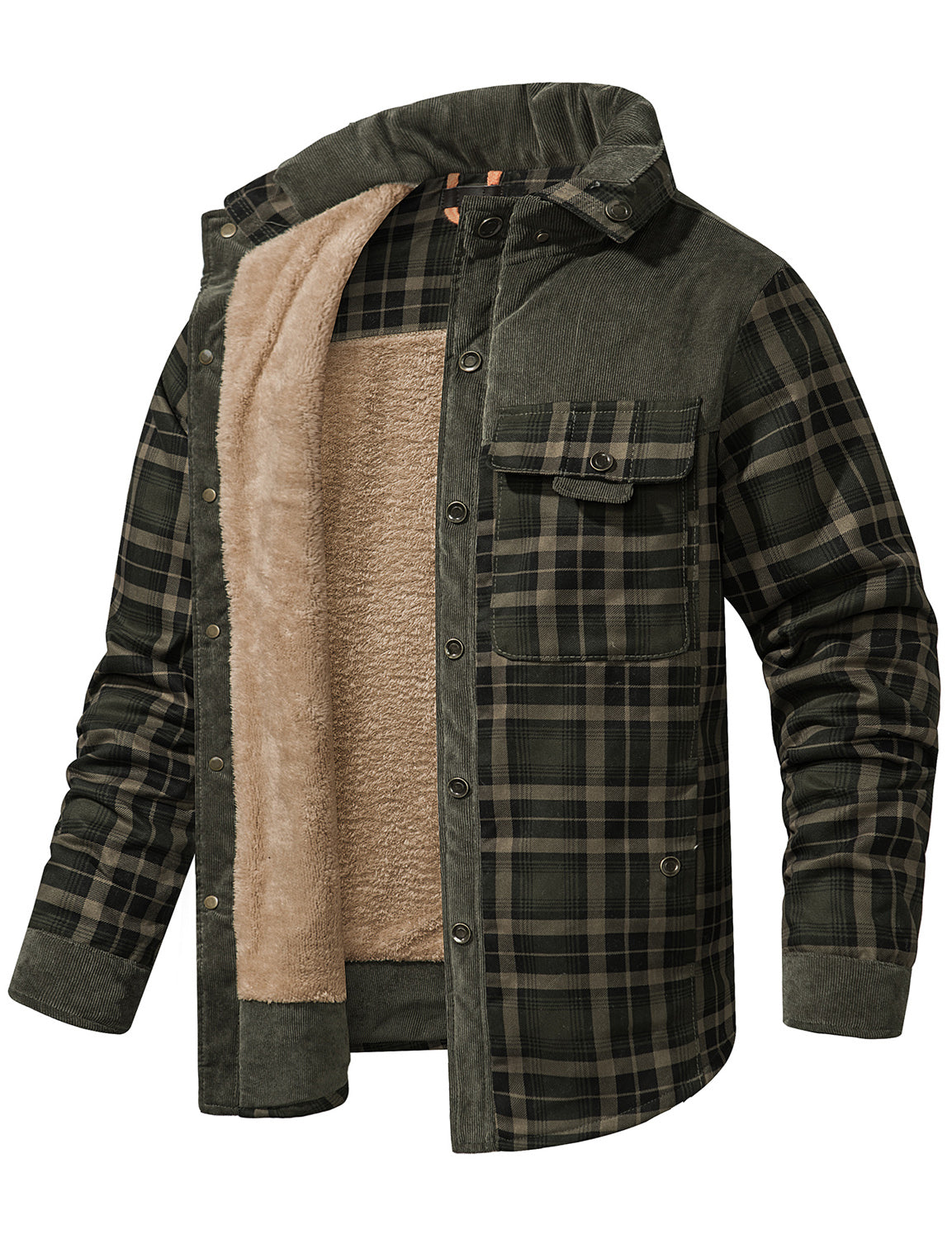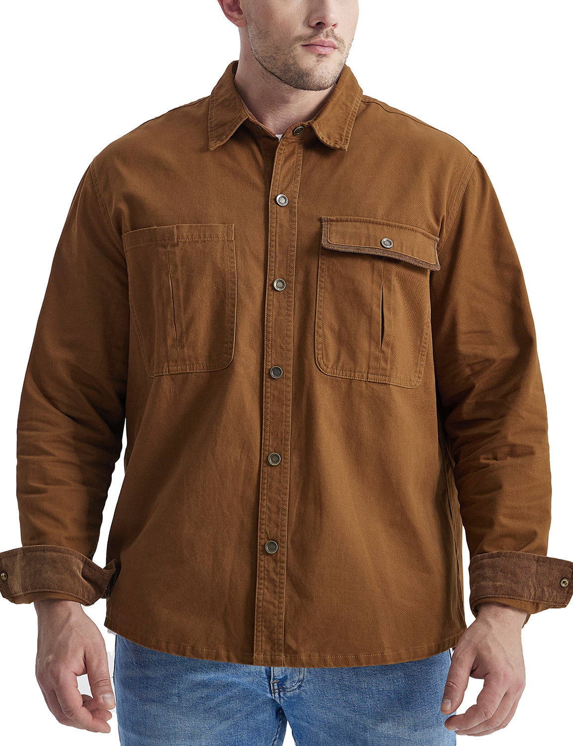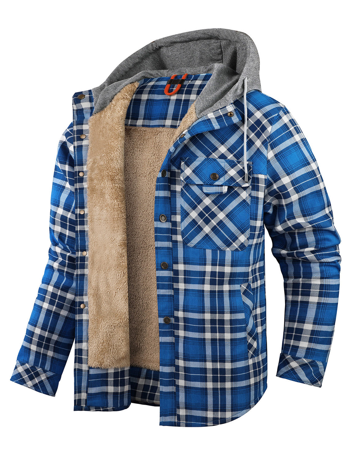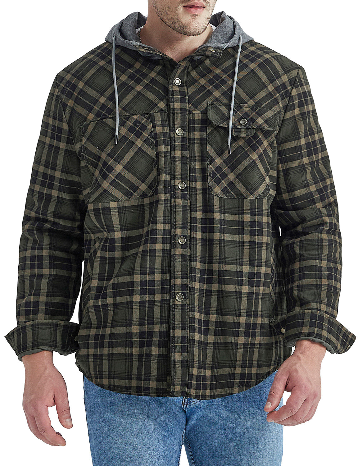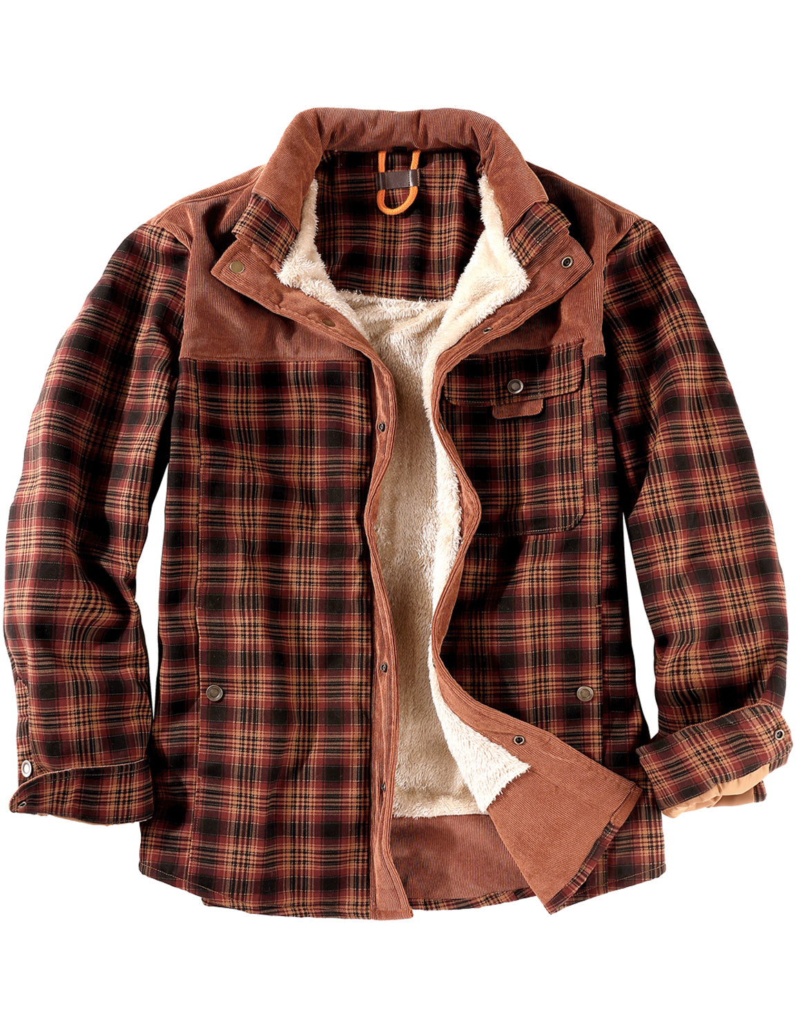 Men's Plaid Double Pocket Button Up Checkered Lapel Long Sleeve Fall Winter Shirt