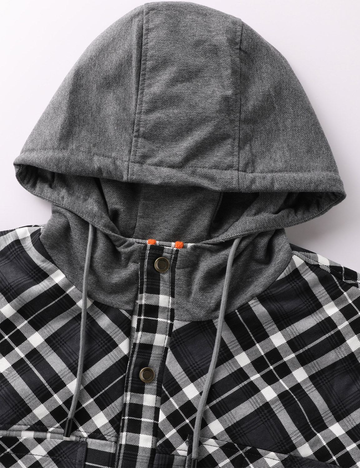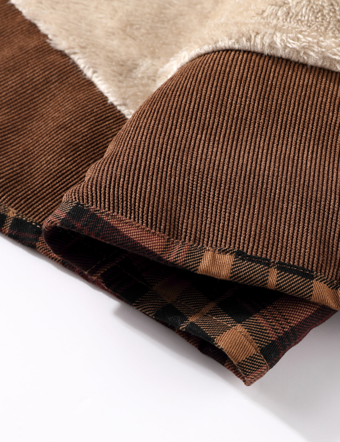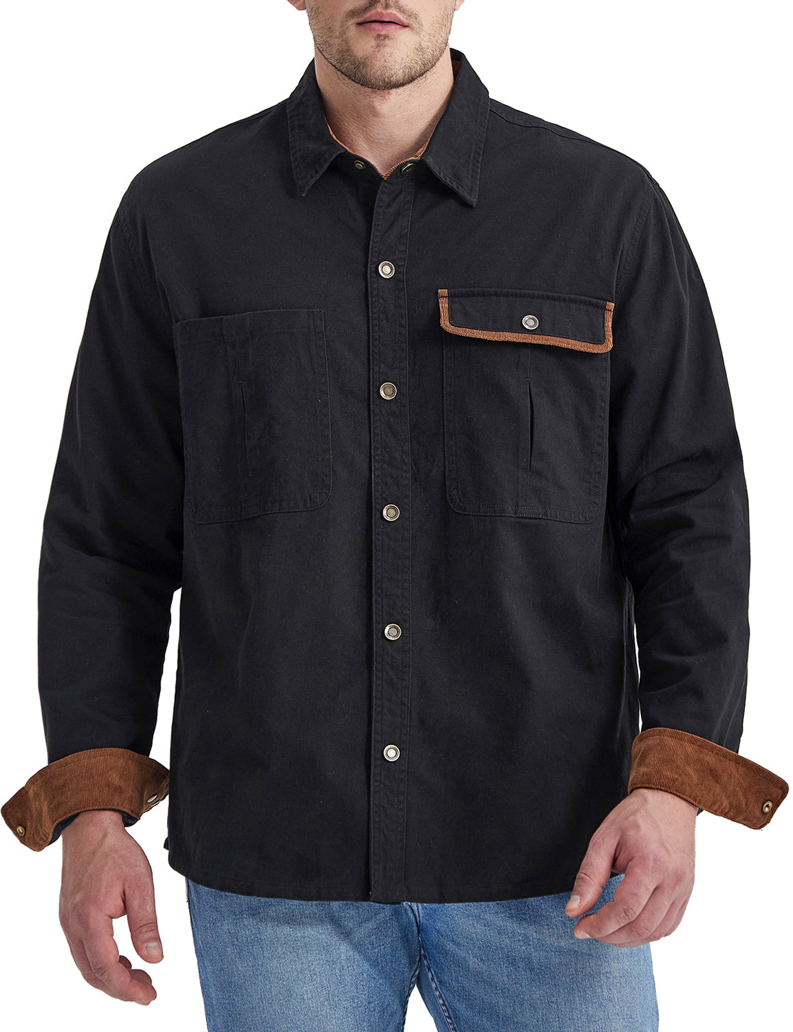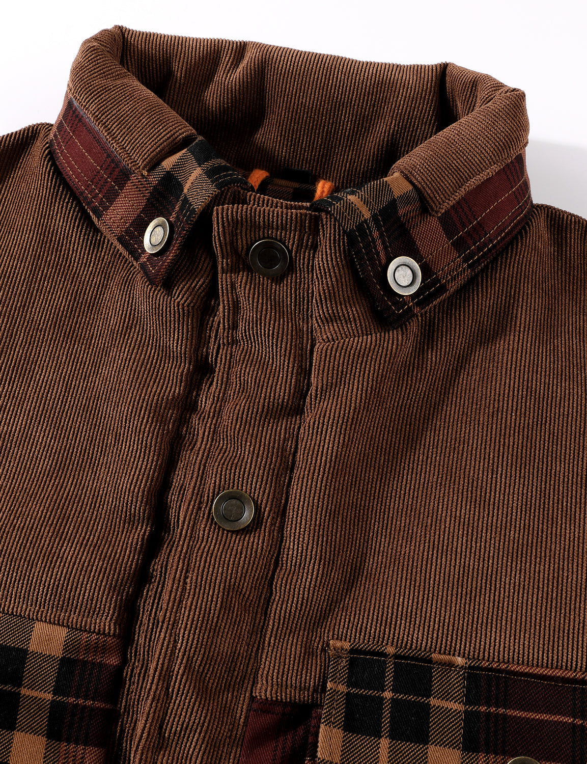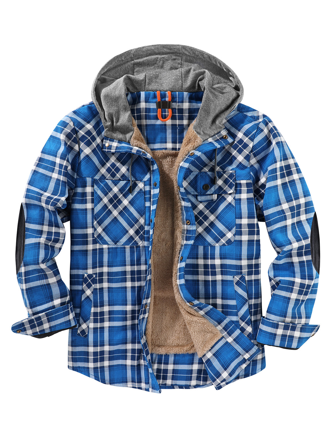 Men's Plaid Double Pocket Button Up Checkered Lapel Long Sleeve Fall Winter Shirt