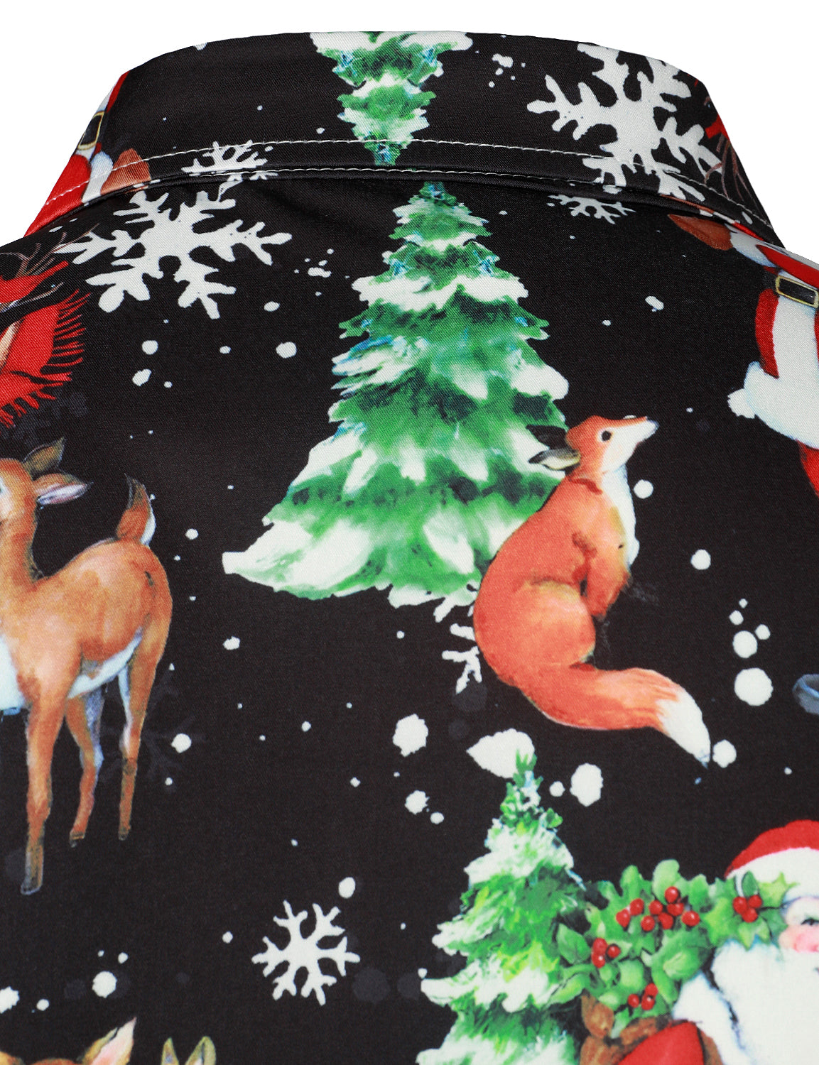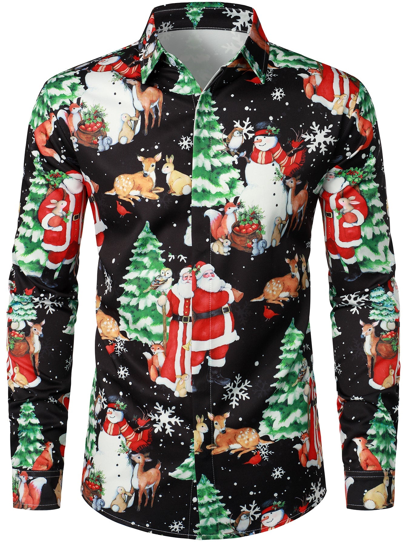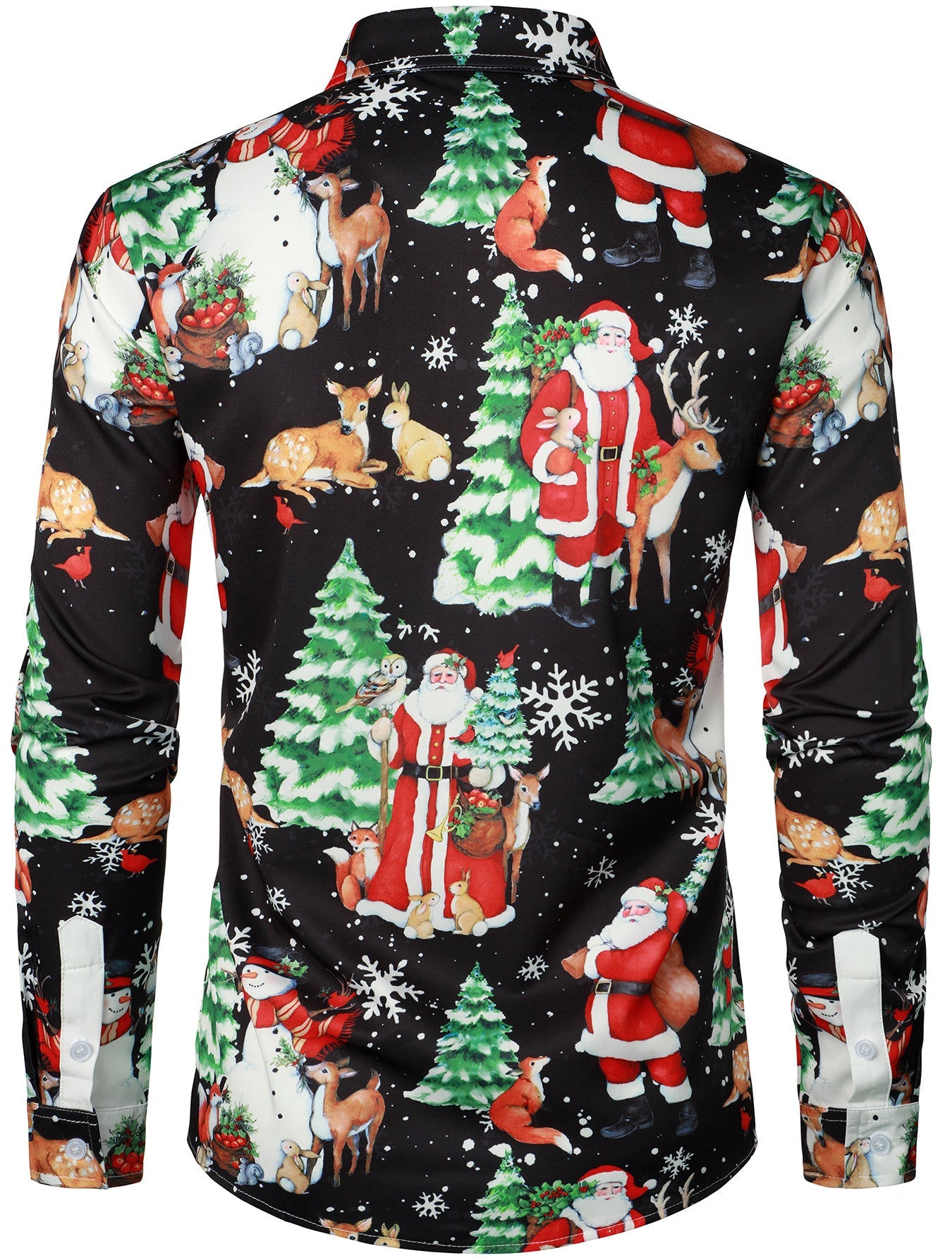 Men's Funny Christmas Santa Xmas Button Up Black Novelty Long Sleeve Shirt