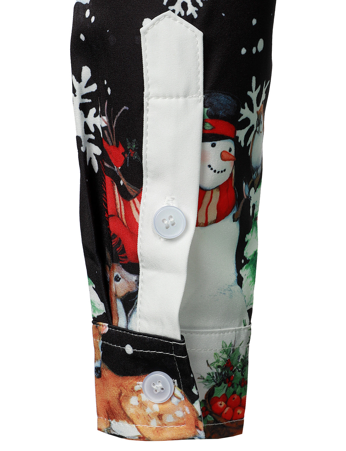 Men's Vintage Santa Claus Snowman Christmas Long Sleeve Shirt