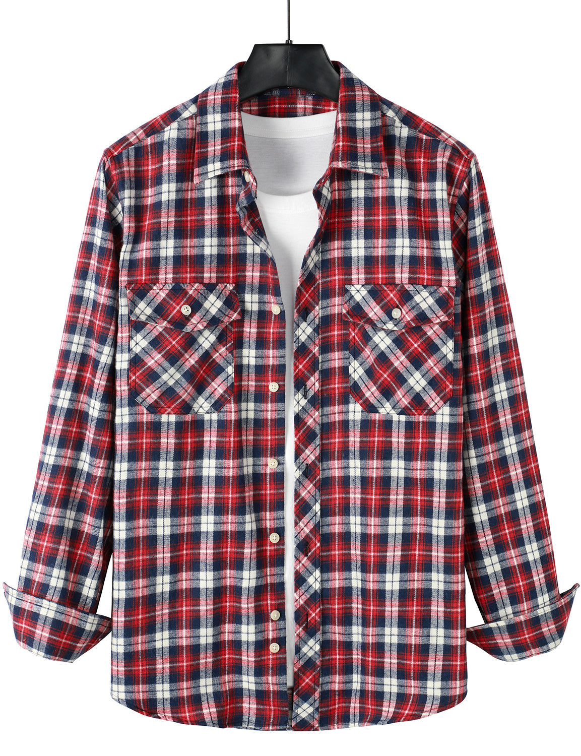 Men's Casual Plaid Double Pocket Flannel Checkered Button Up Long Sleeve Shirt