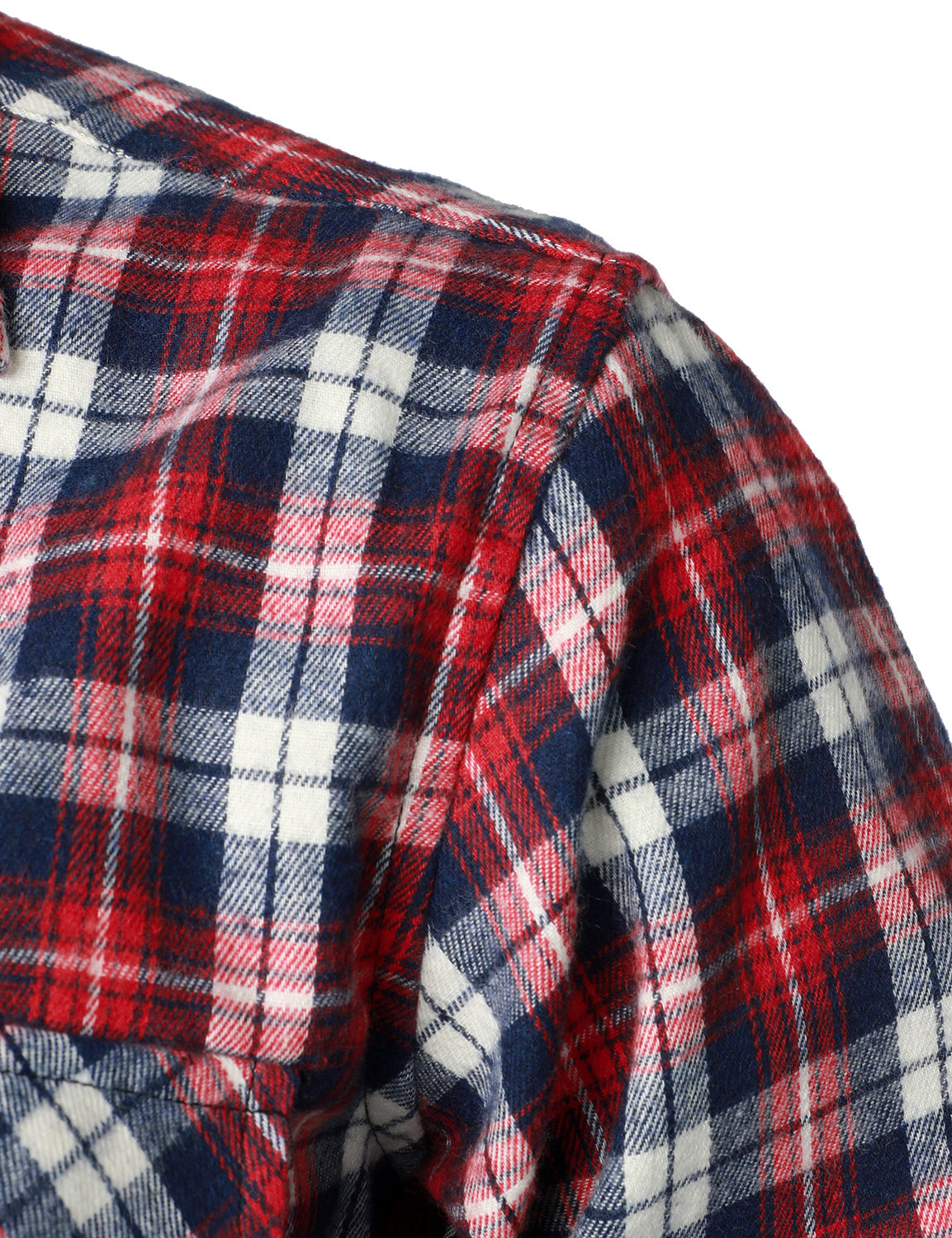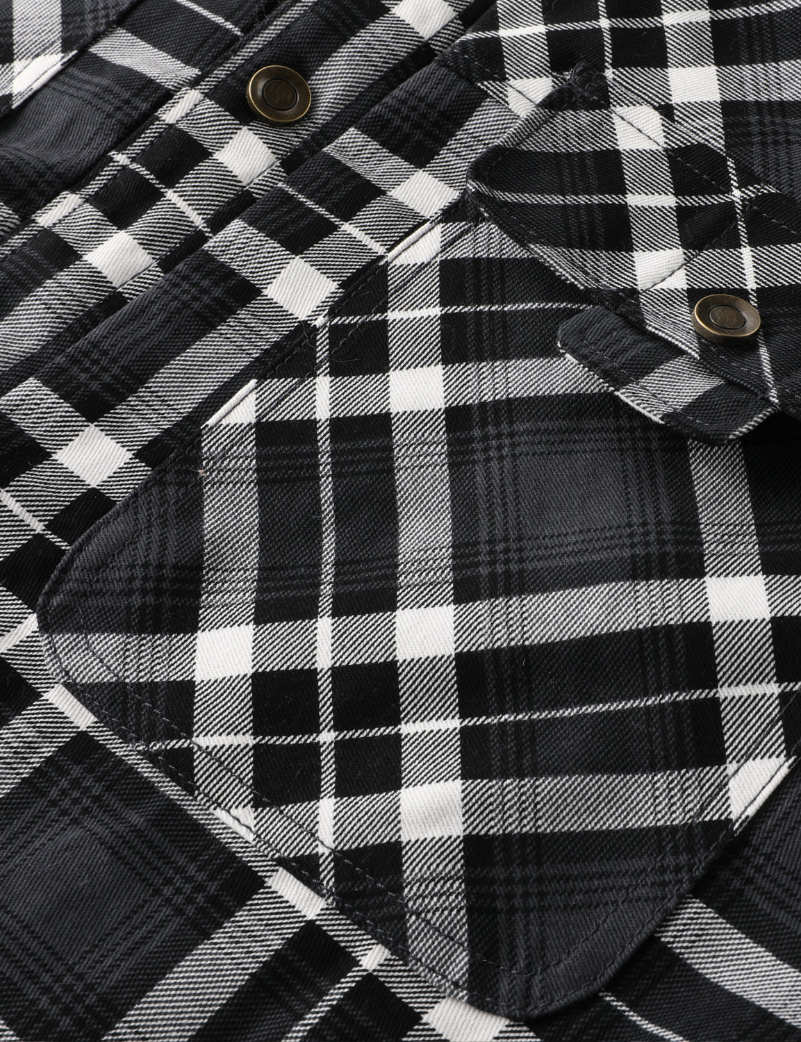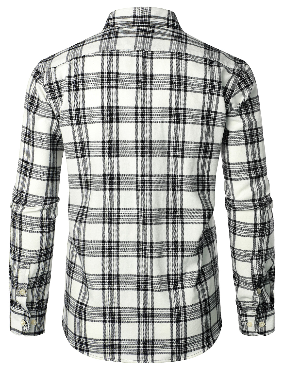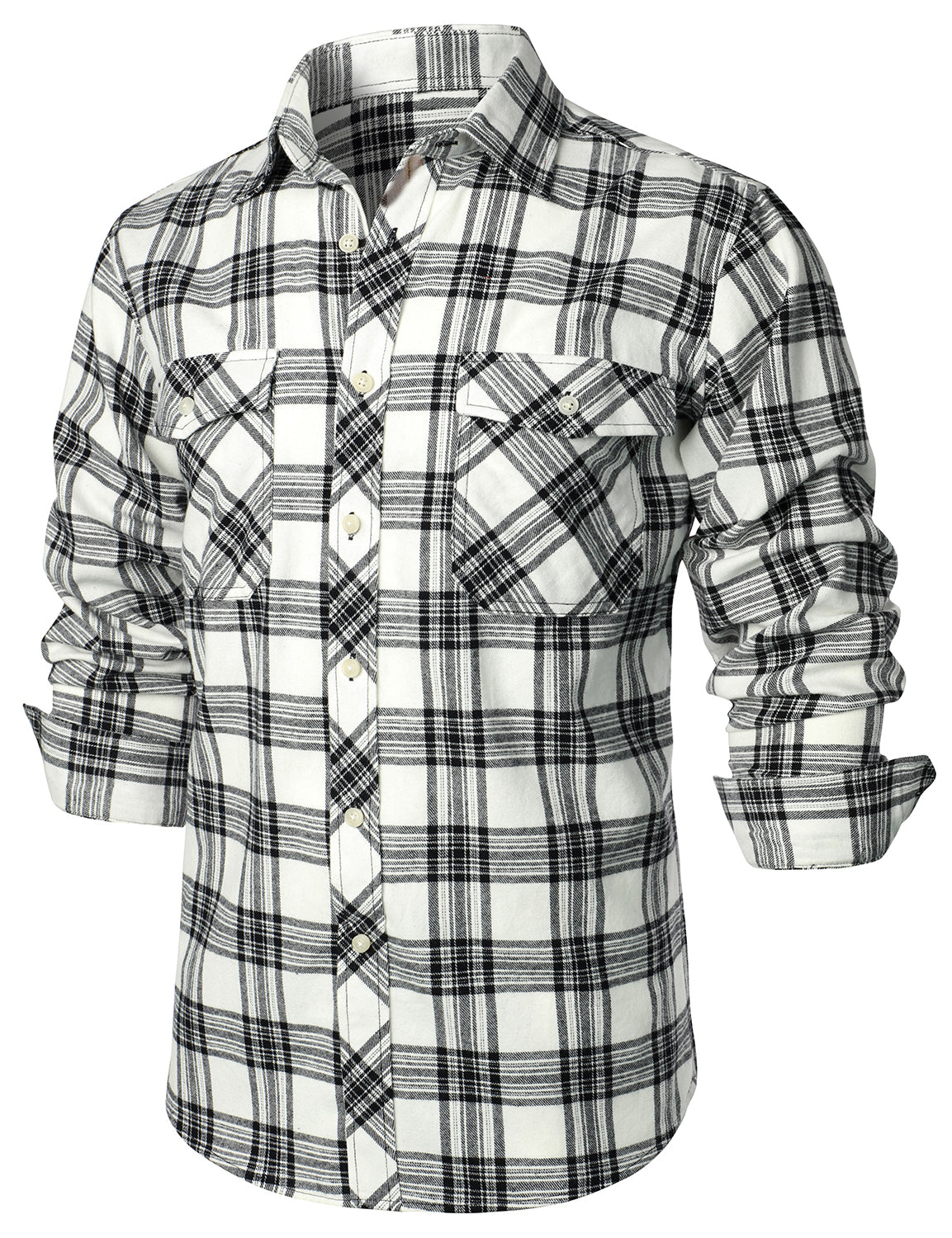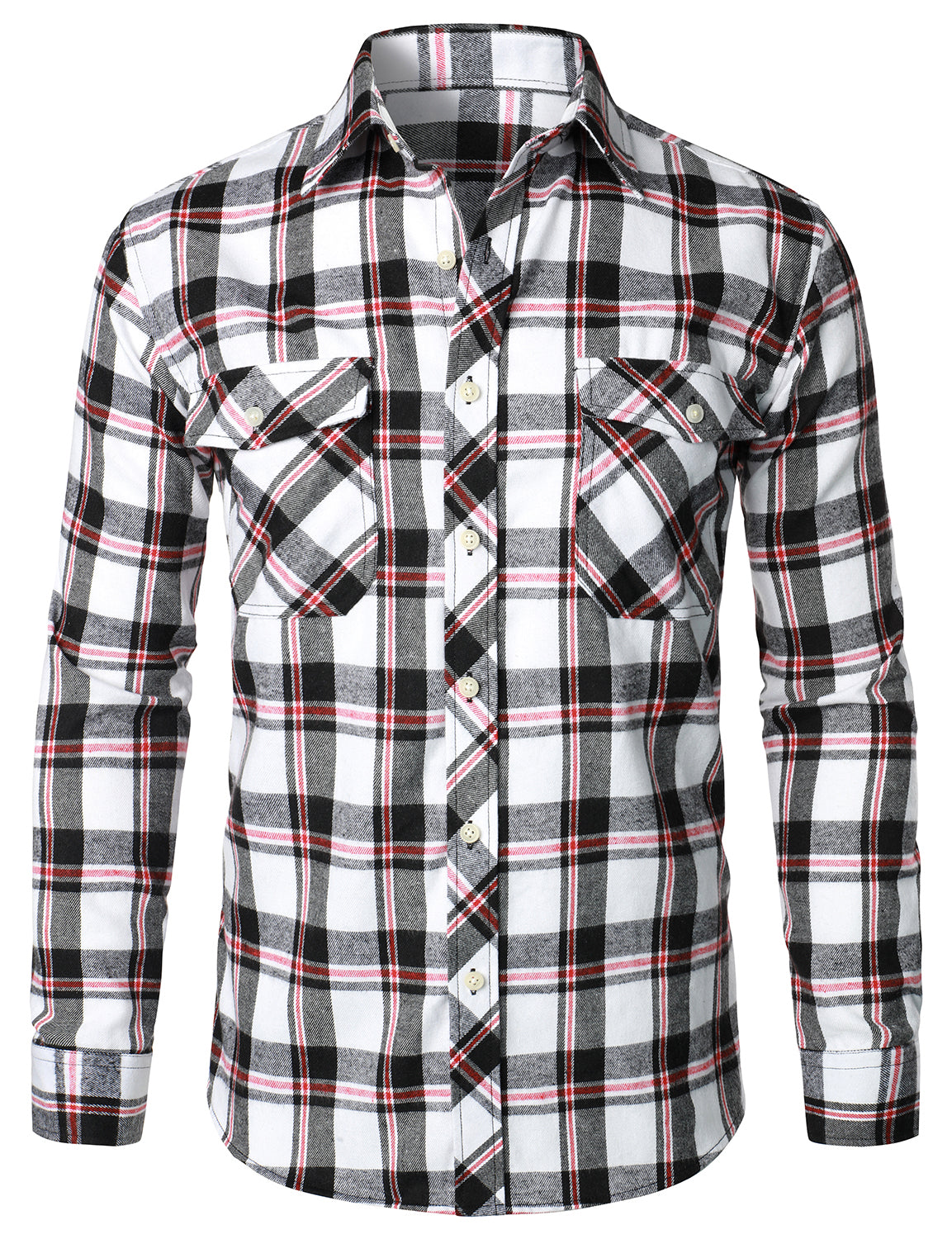Men's Flannel Double Pocket Checkered Button Up Long Sleeve Casual Plaid Shirt