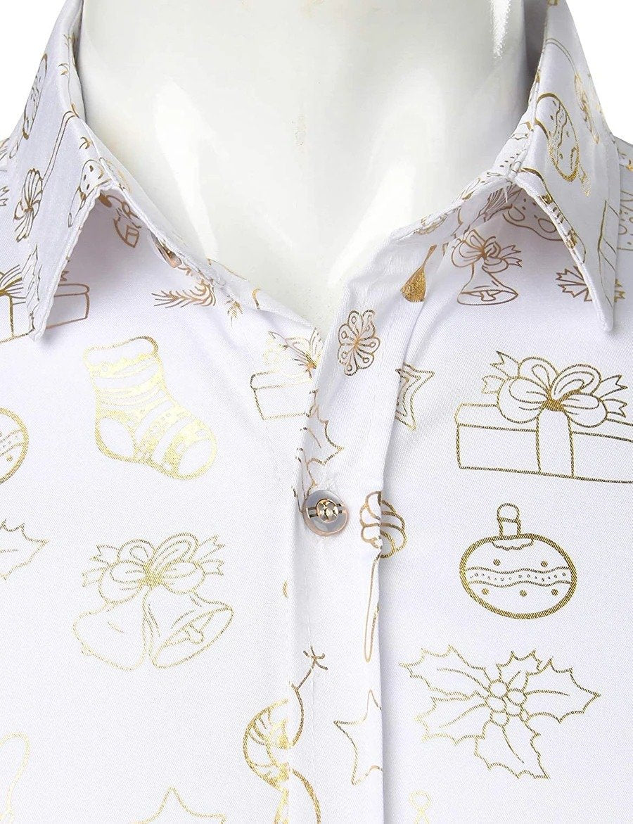 Men's Vintage Christmas Santa Gifts Button Up Long Sleeve Shirt