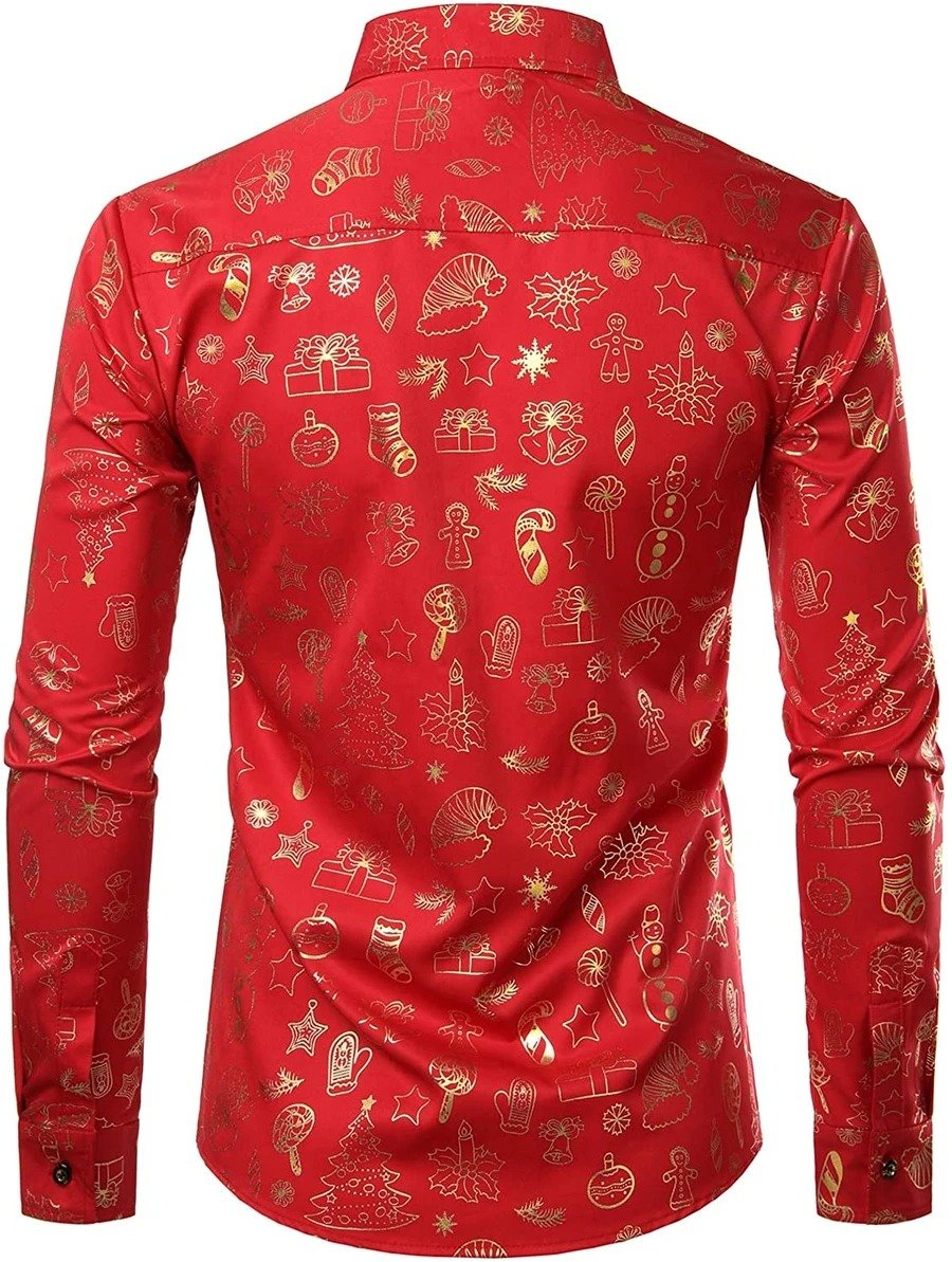Men's Merry Christmas Cute Santa Elk Reindeer Snowman Print Holiday Xmas Day Button Up Red Long Sleeve Shirt