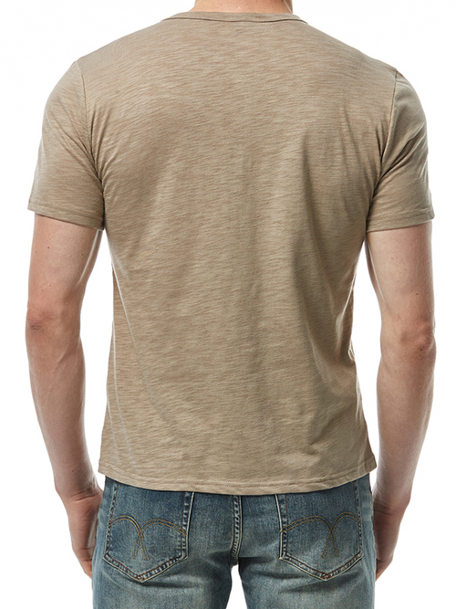 Men's Henley Collar Casual Tee Solid Color T-Shirt