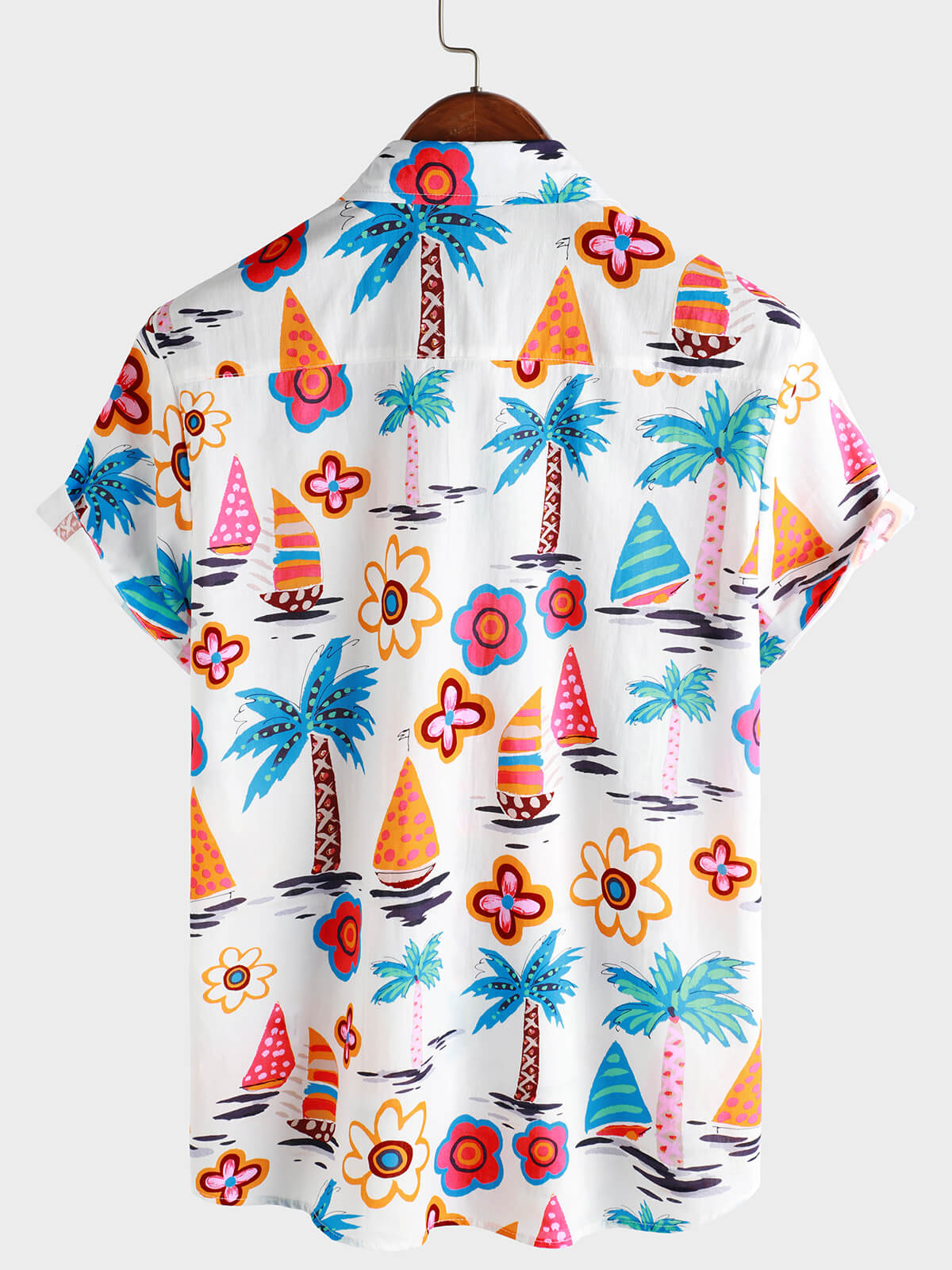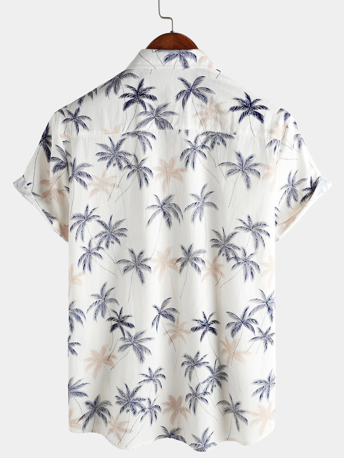 Men‘s 100% Cotton Hawaiian Plam Tree Short Sleeve Button Beach Shirt