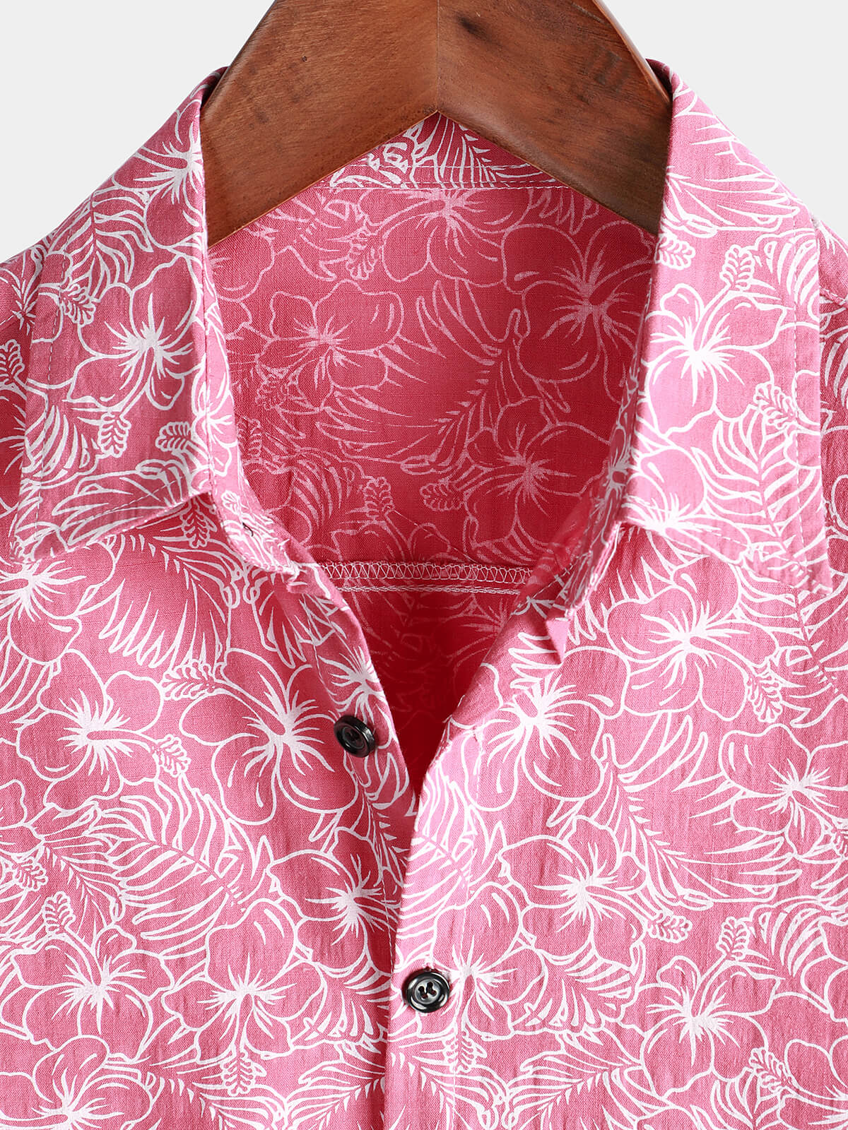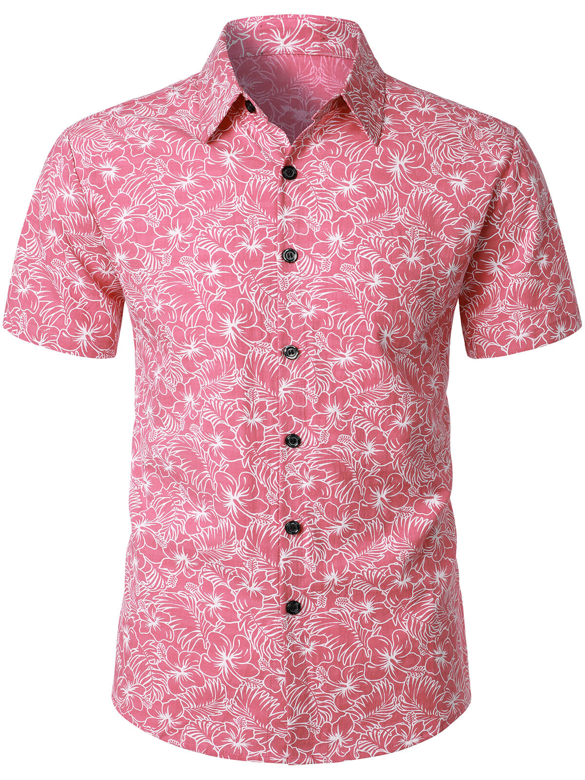 Men's Cotton Floral Holiday Flower Print Button Up Beach Pink Hawaiian Short Sleeve Shirt