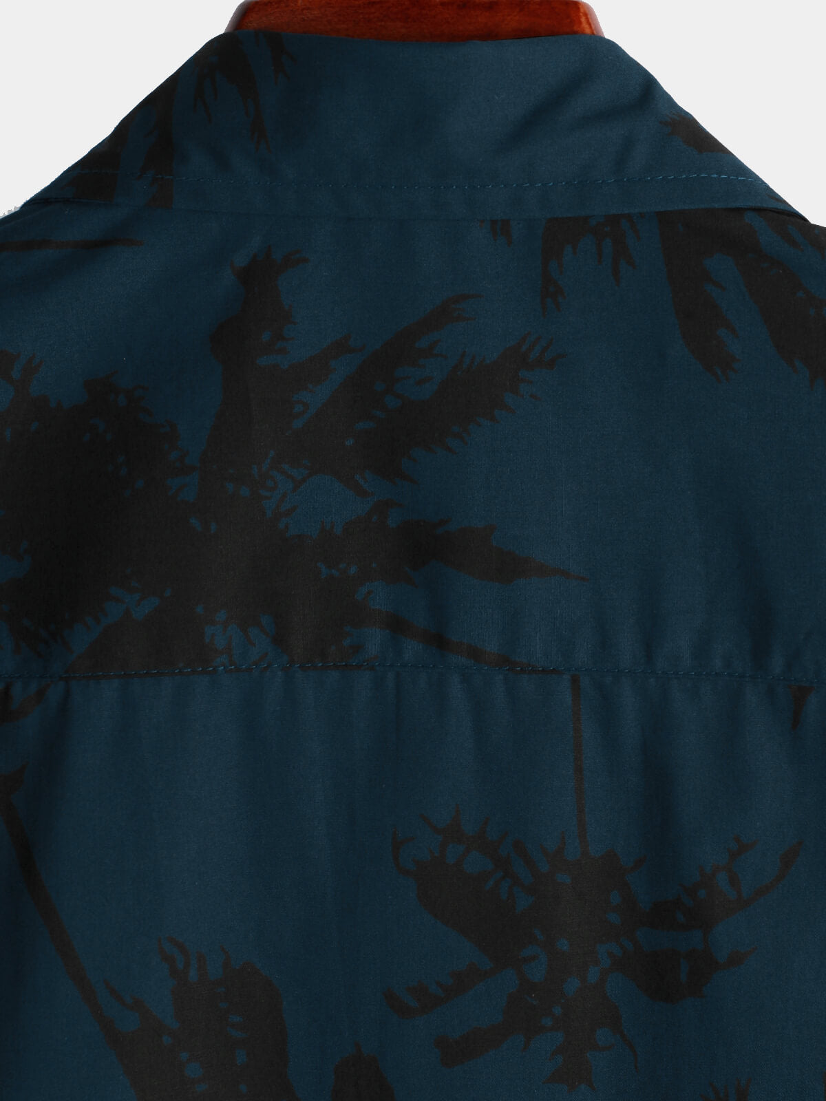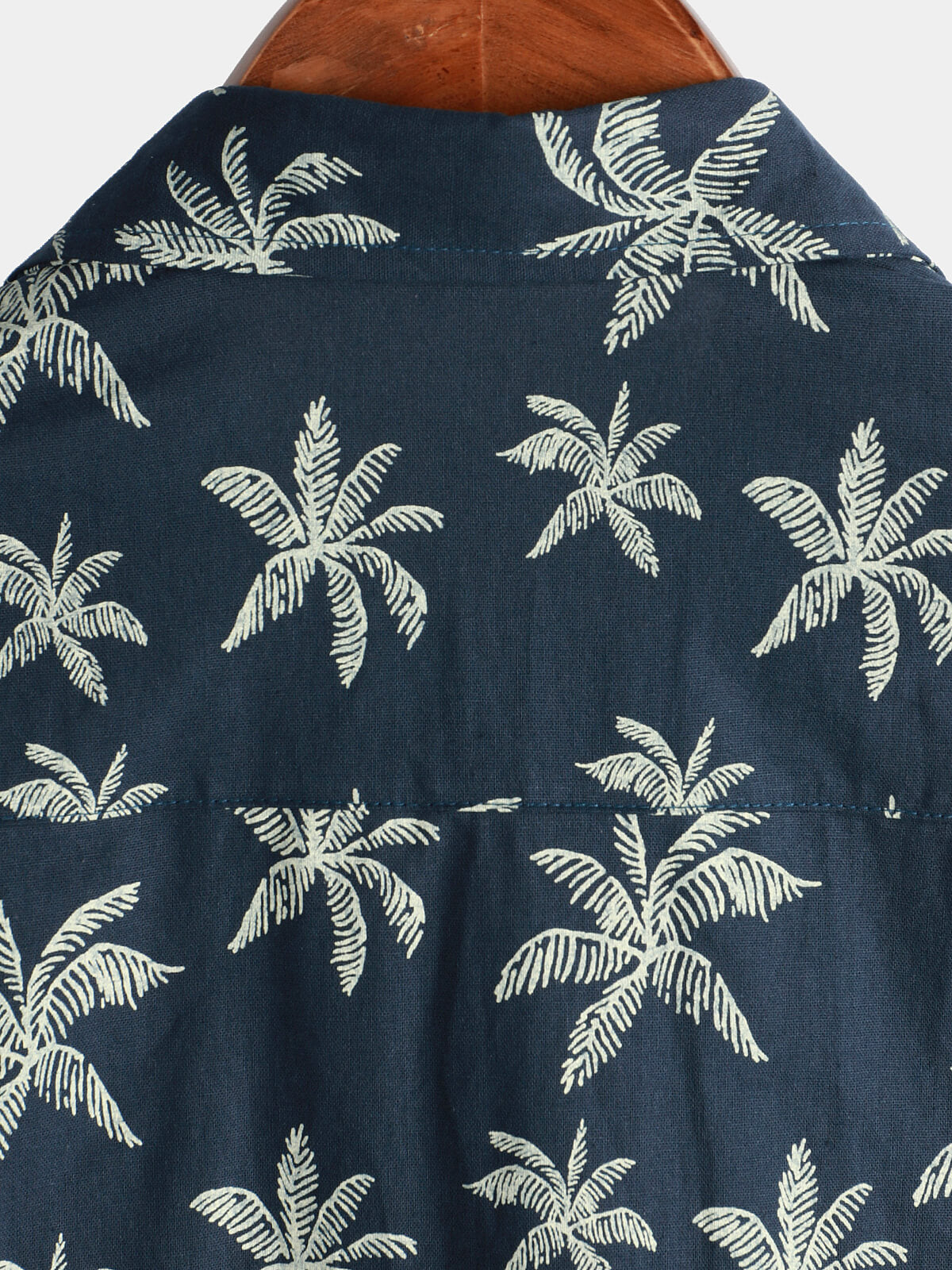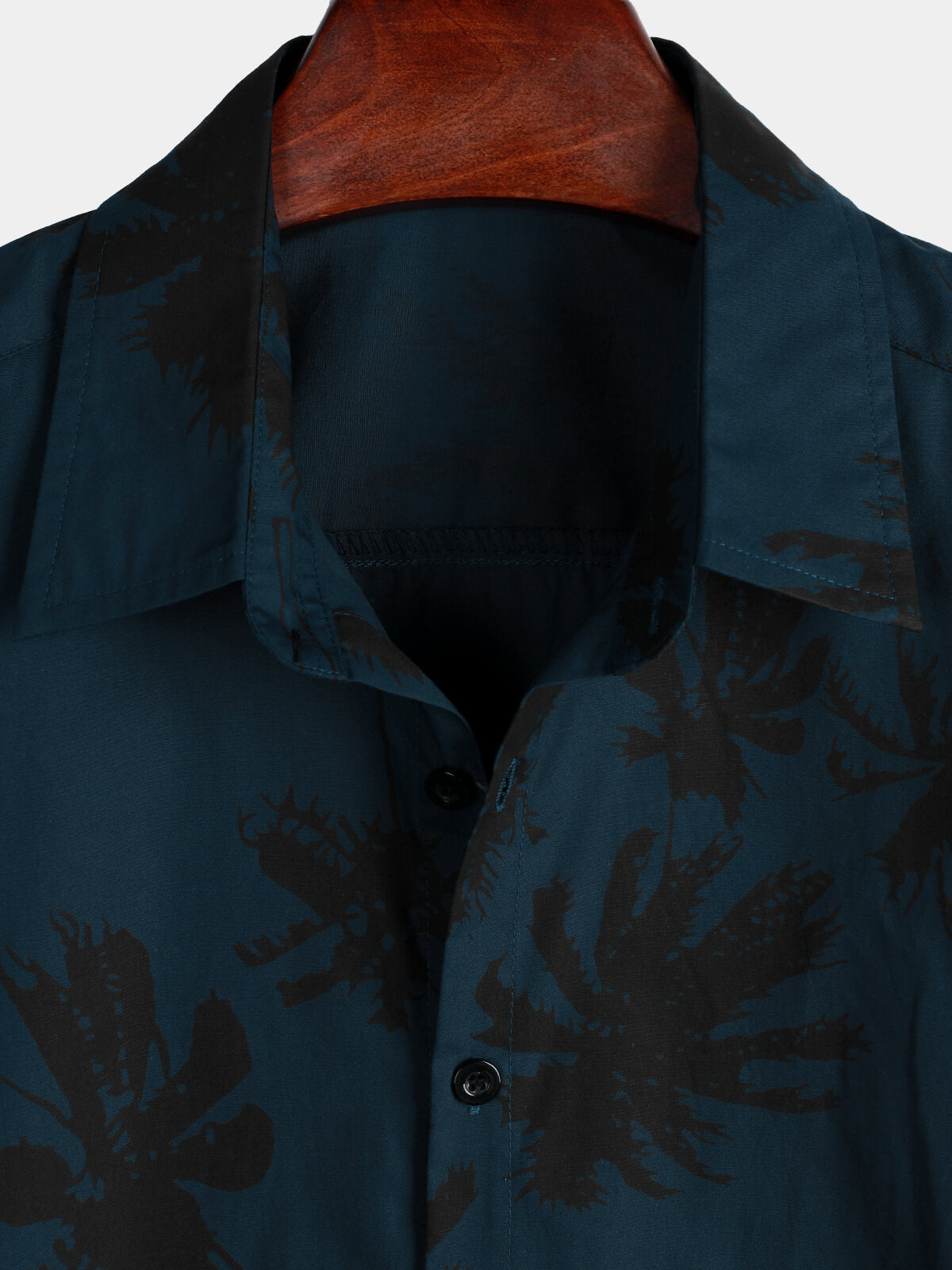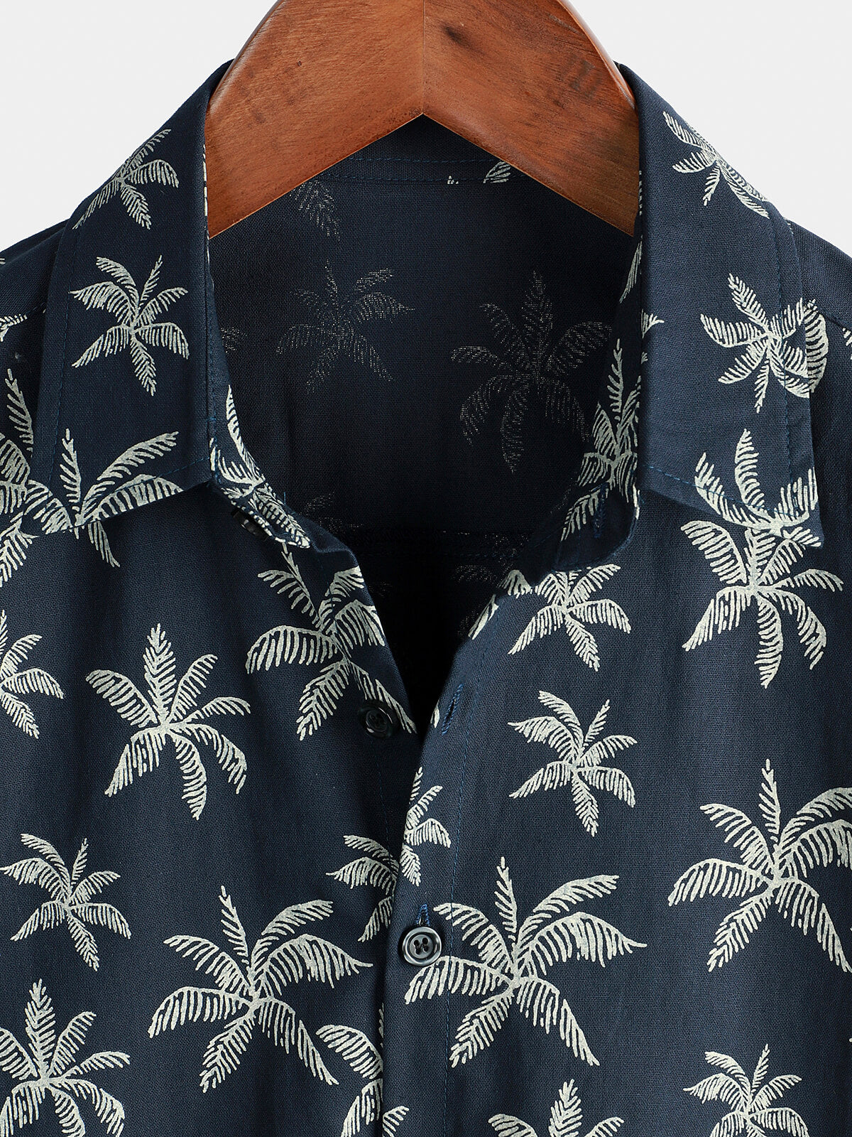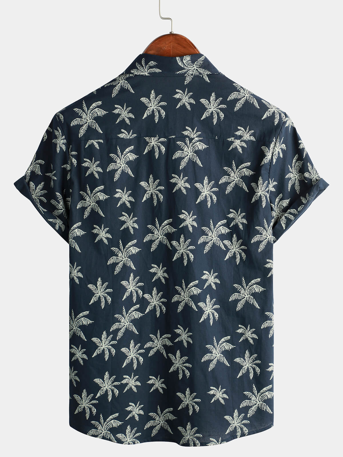 Men's Palm Tree Print 100% Cotton Navy Blue Short Sleeve Hawaiian Collared Shirt