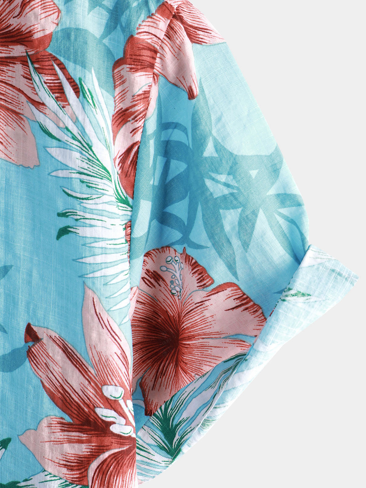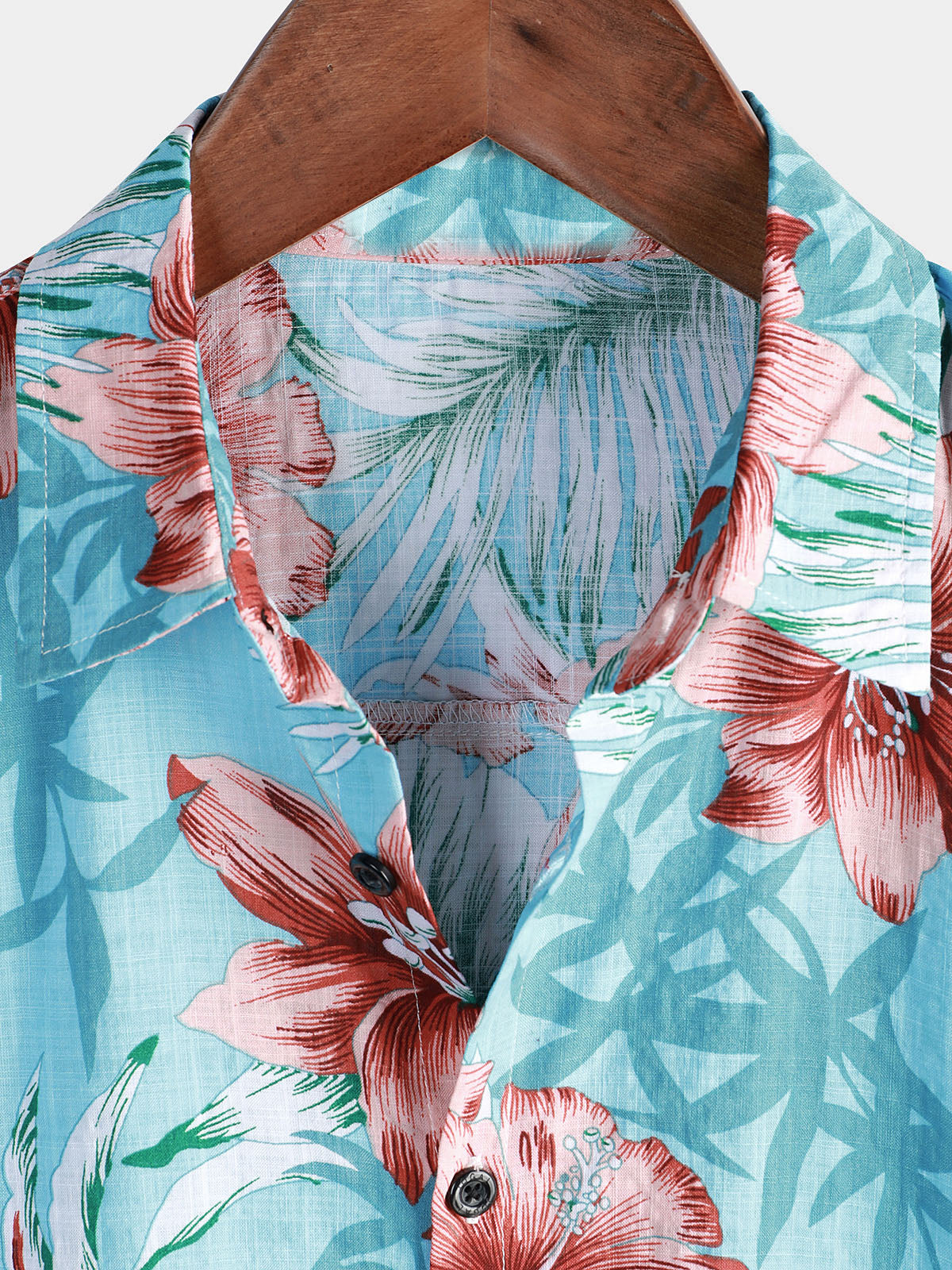 Men's Blue Tropical Floral Plant Leaf Cotton Button Up Short Sleeve Aloha Resort Beach Shirt