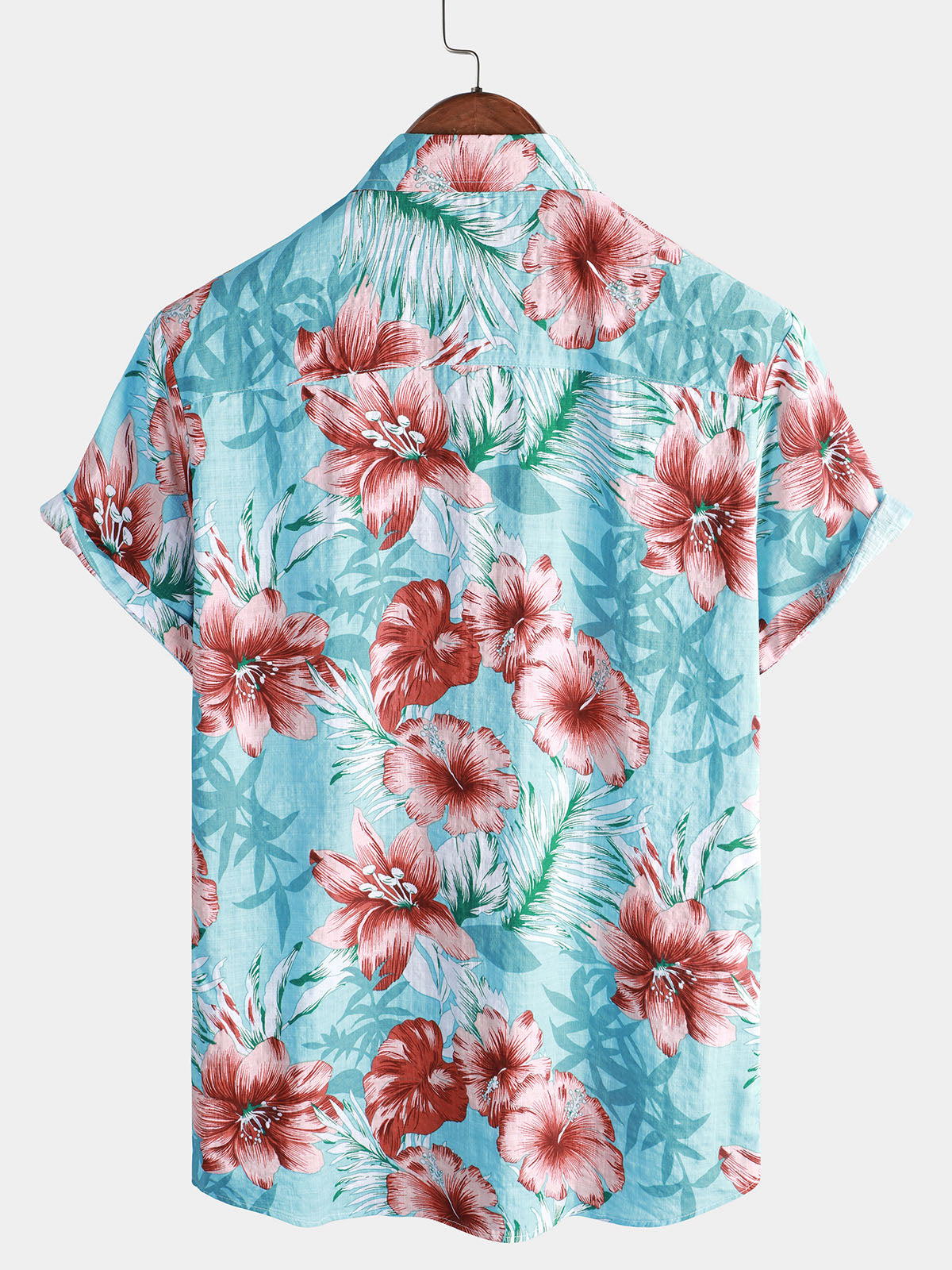 Men's Hawaiian Tropical Button Hibiscus Floral Print Vacation Beach Blue Short Sleeve Shirt