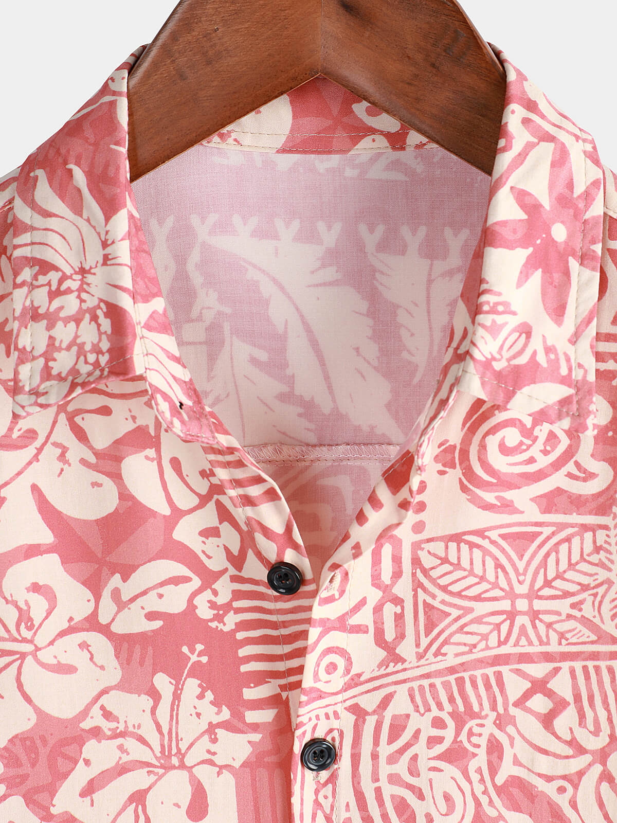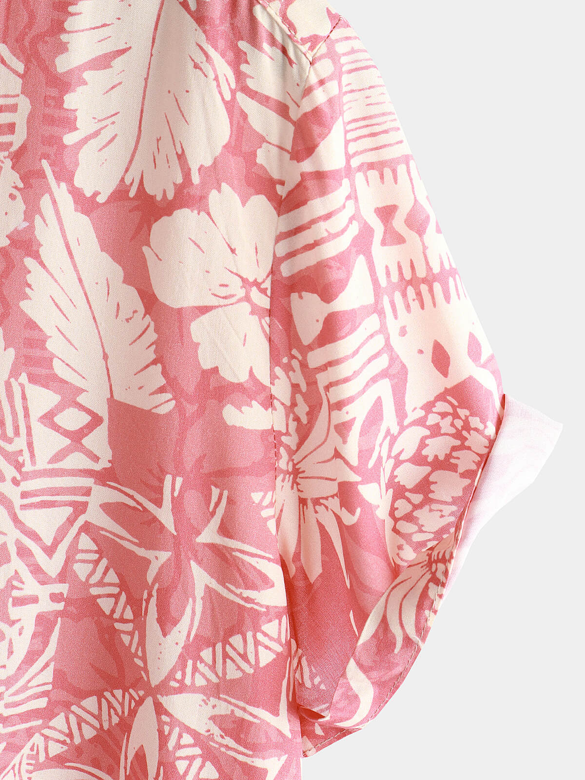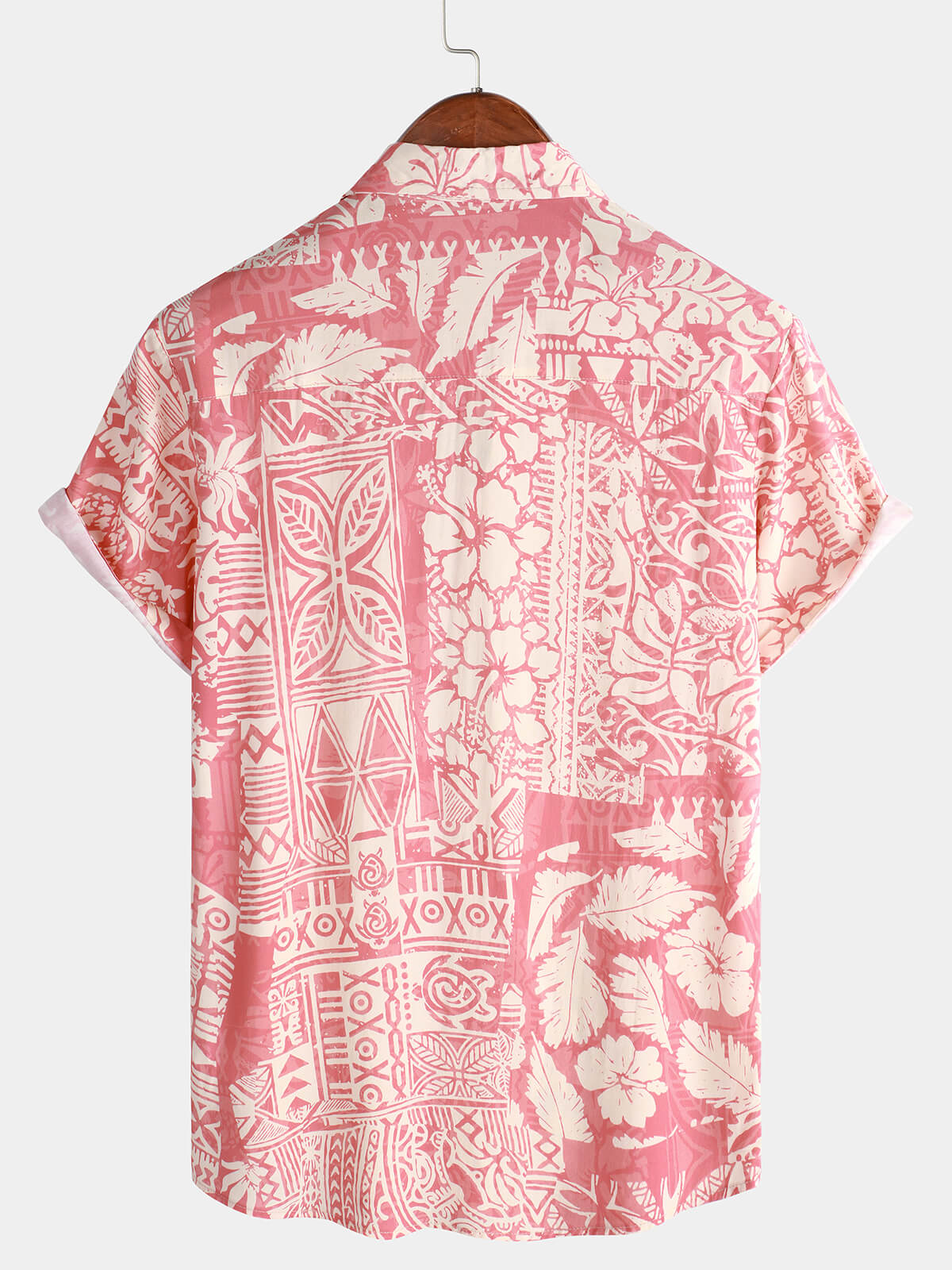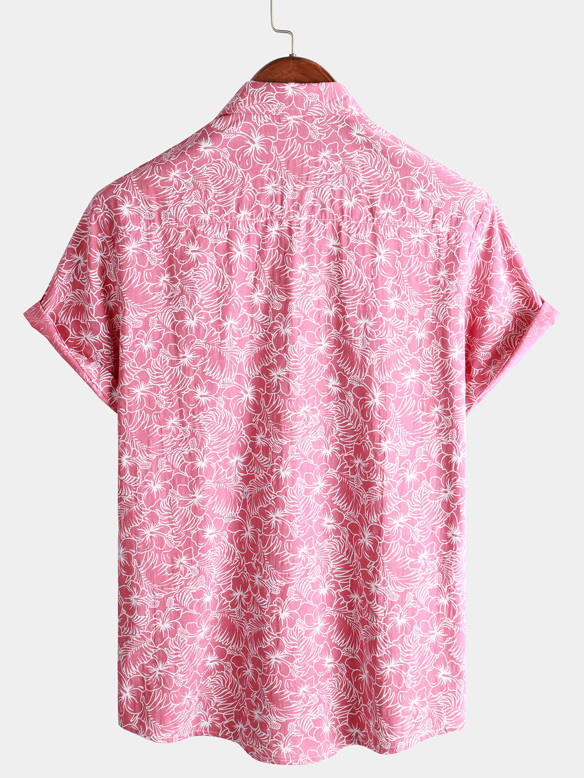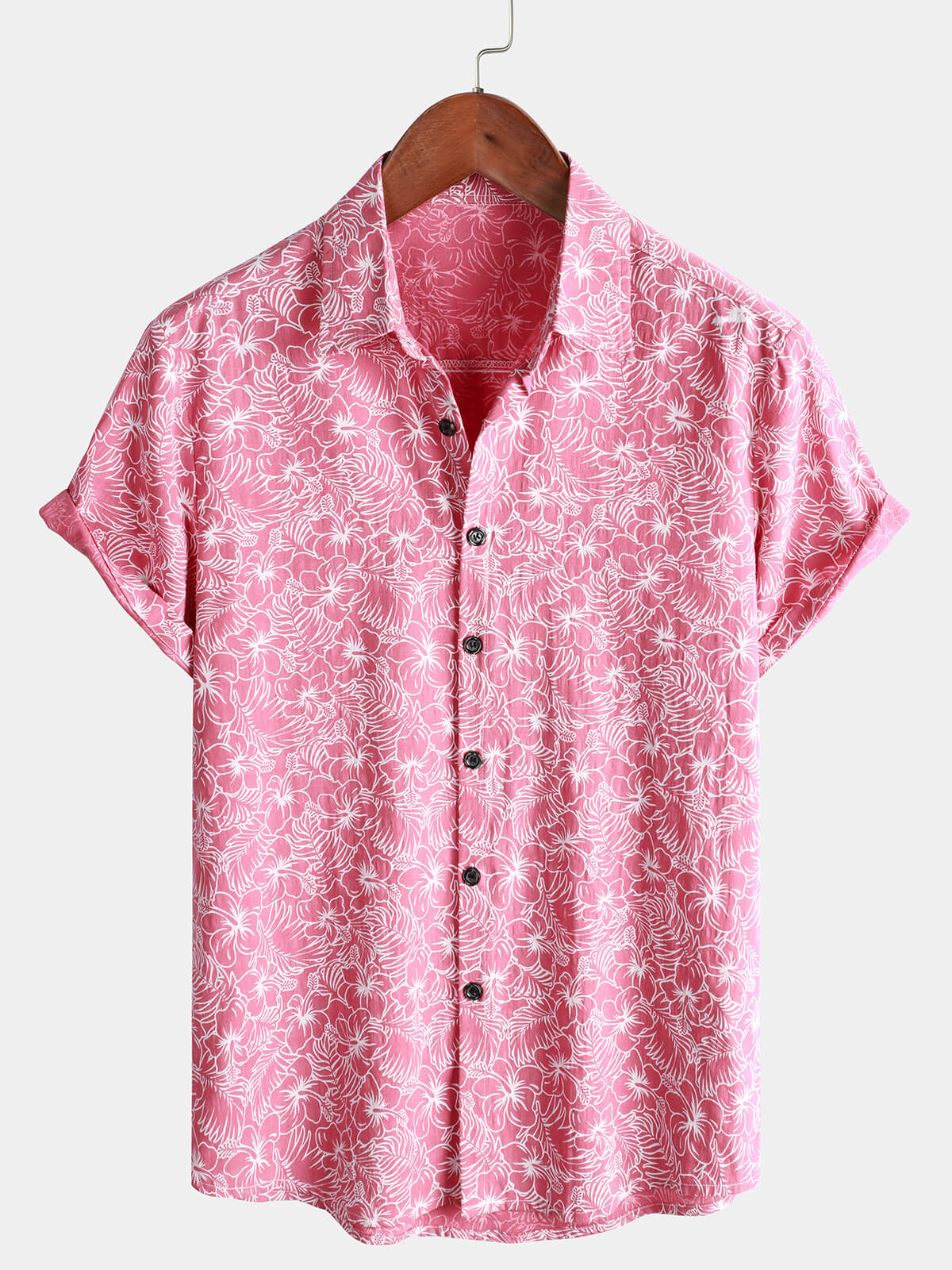 Men's Pink Cotton Hawaiian Floral Button Up Summer Short Sleeve Shirt