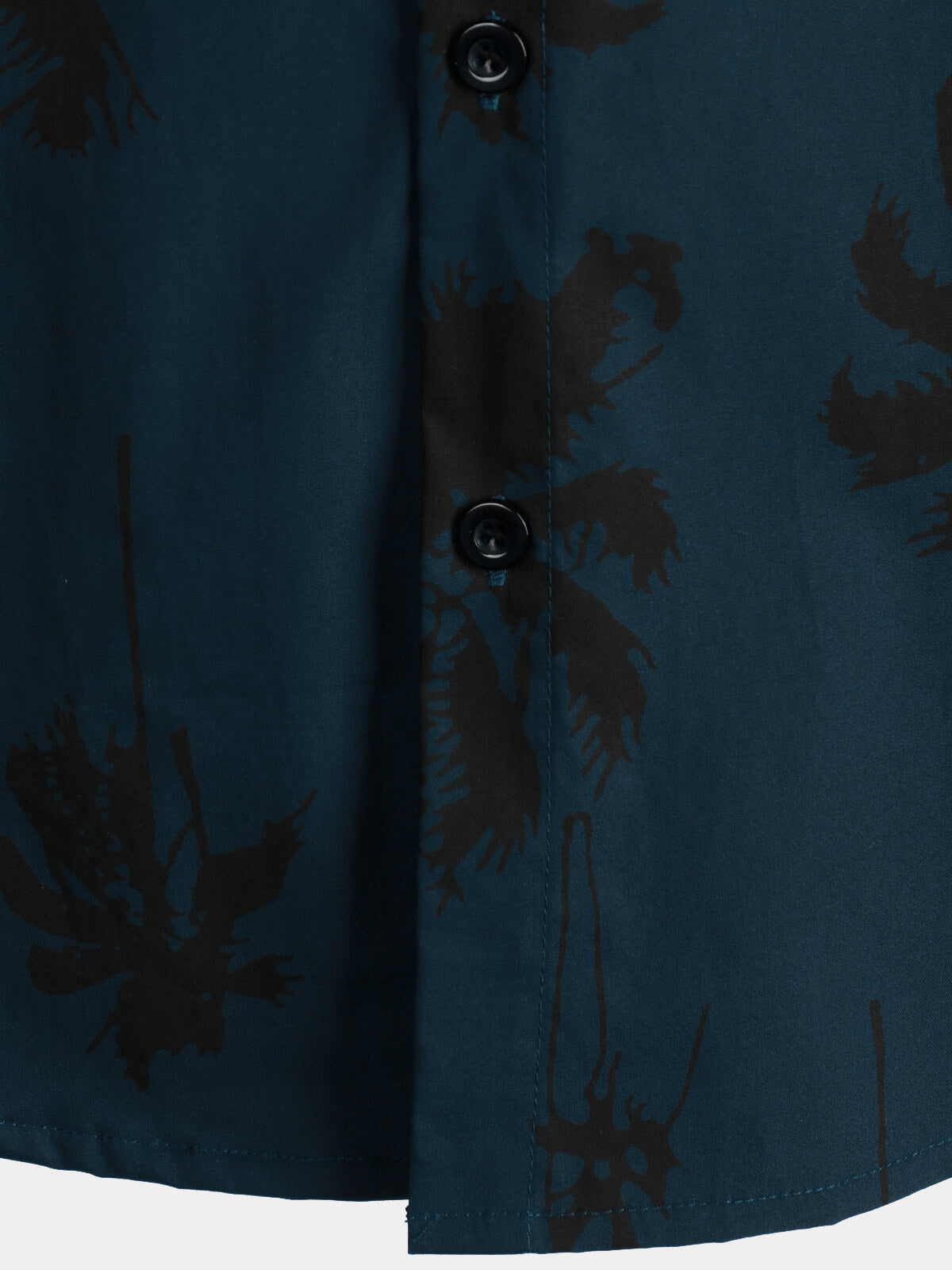 Men's Palm Tree Print Cotton Navy Blue Button Up Short Sleeve Hawaiian Shirt