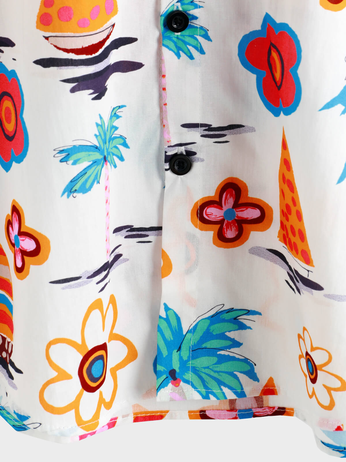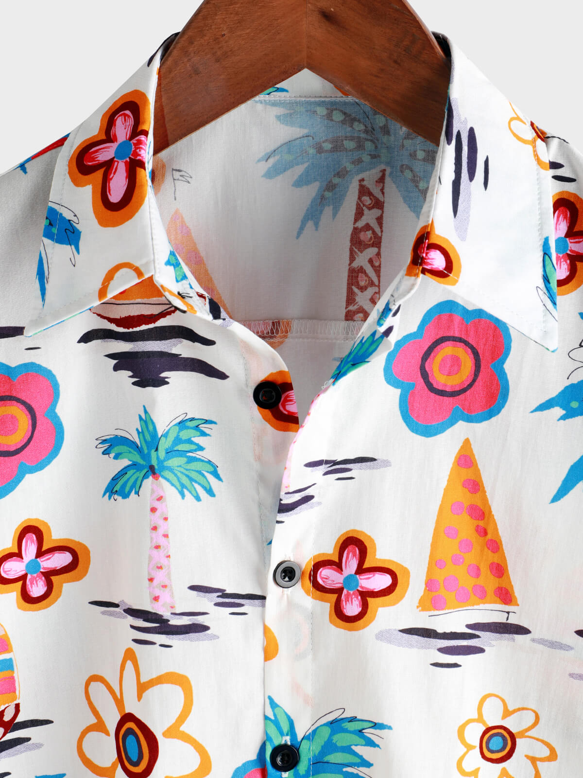 Men's Summer Floral Print Cotton Button Up Beach White Hawaiian Shirt