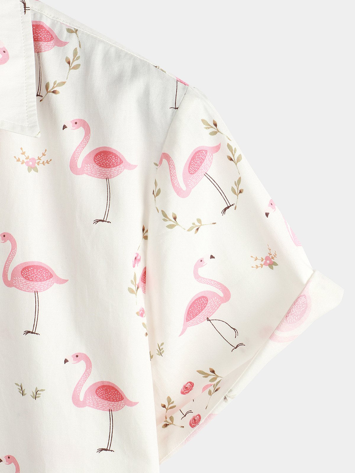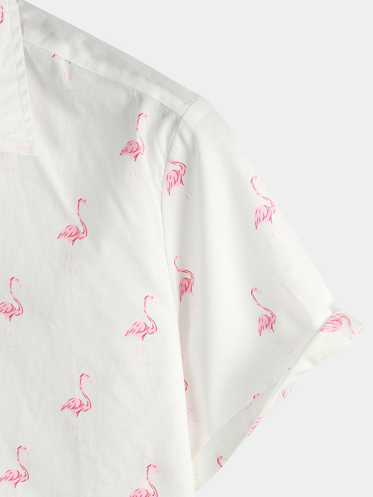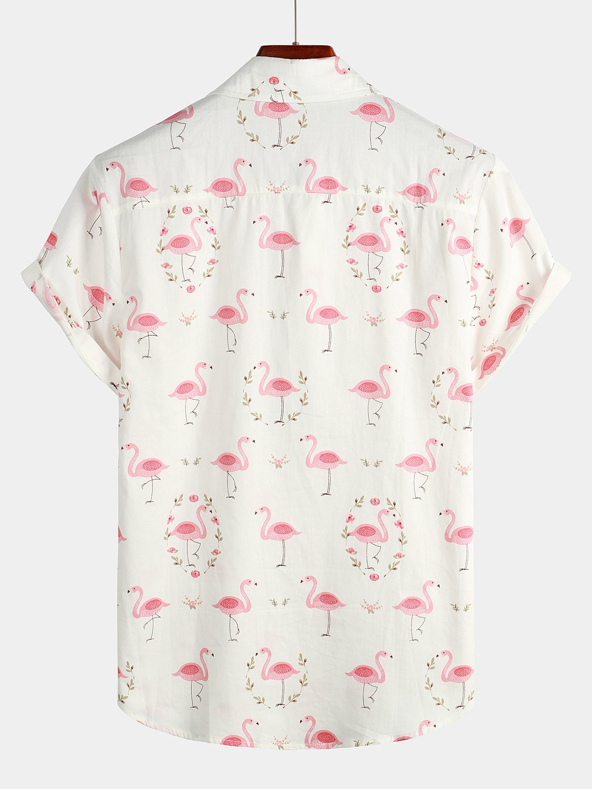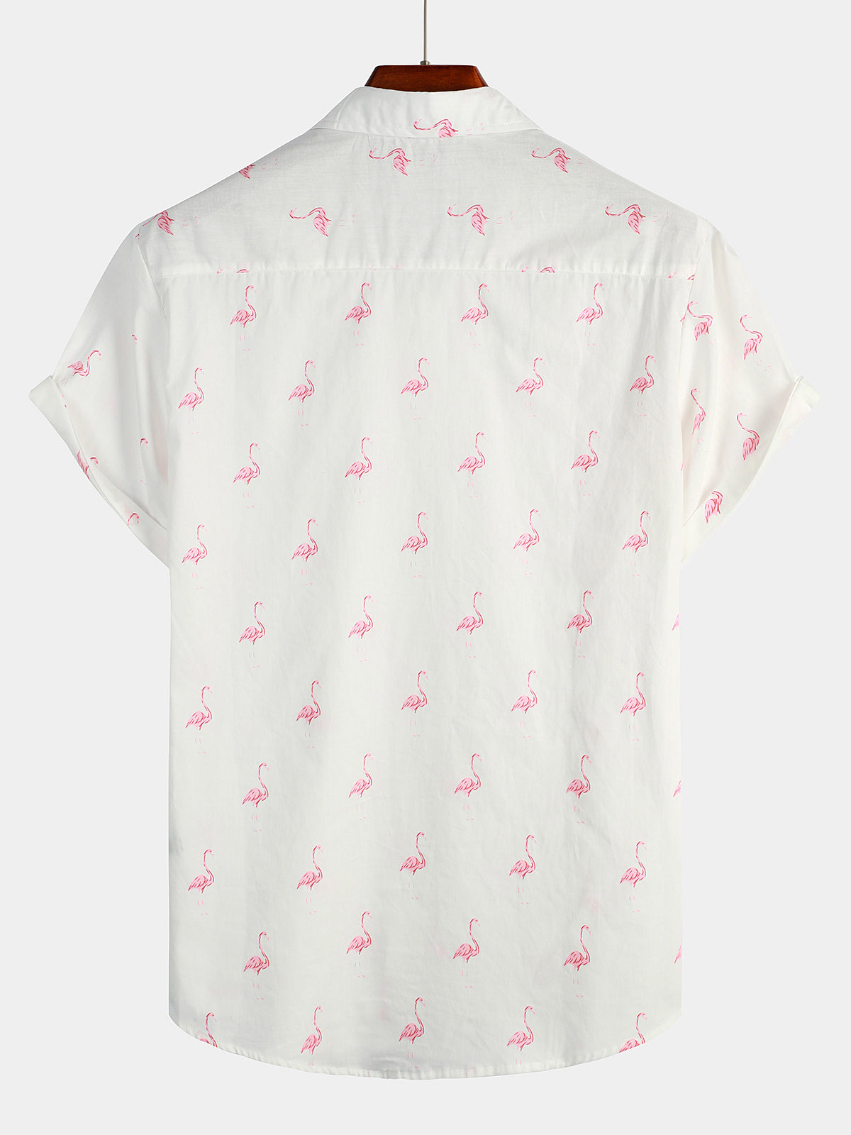 Men's Pink Flamingo Print Cotton Short Sleeve Shirt