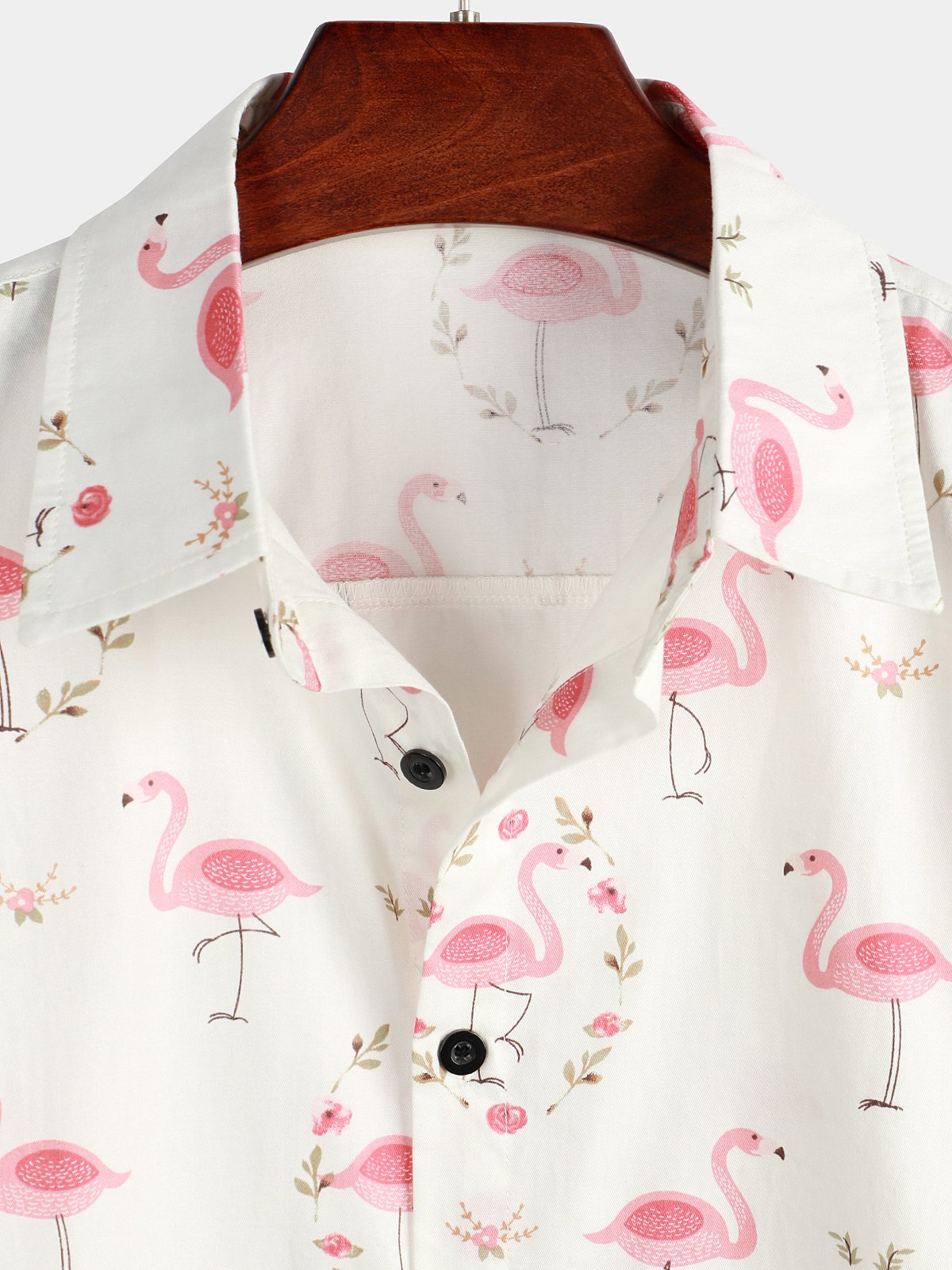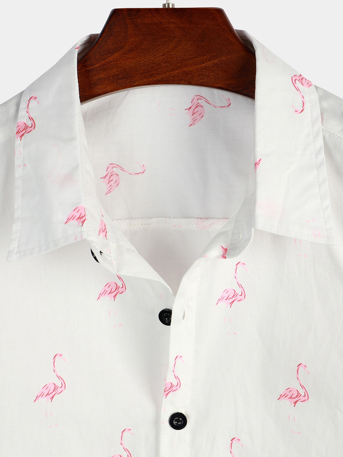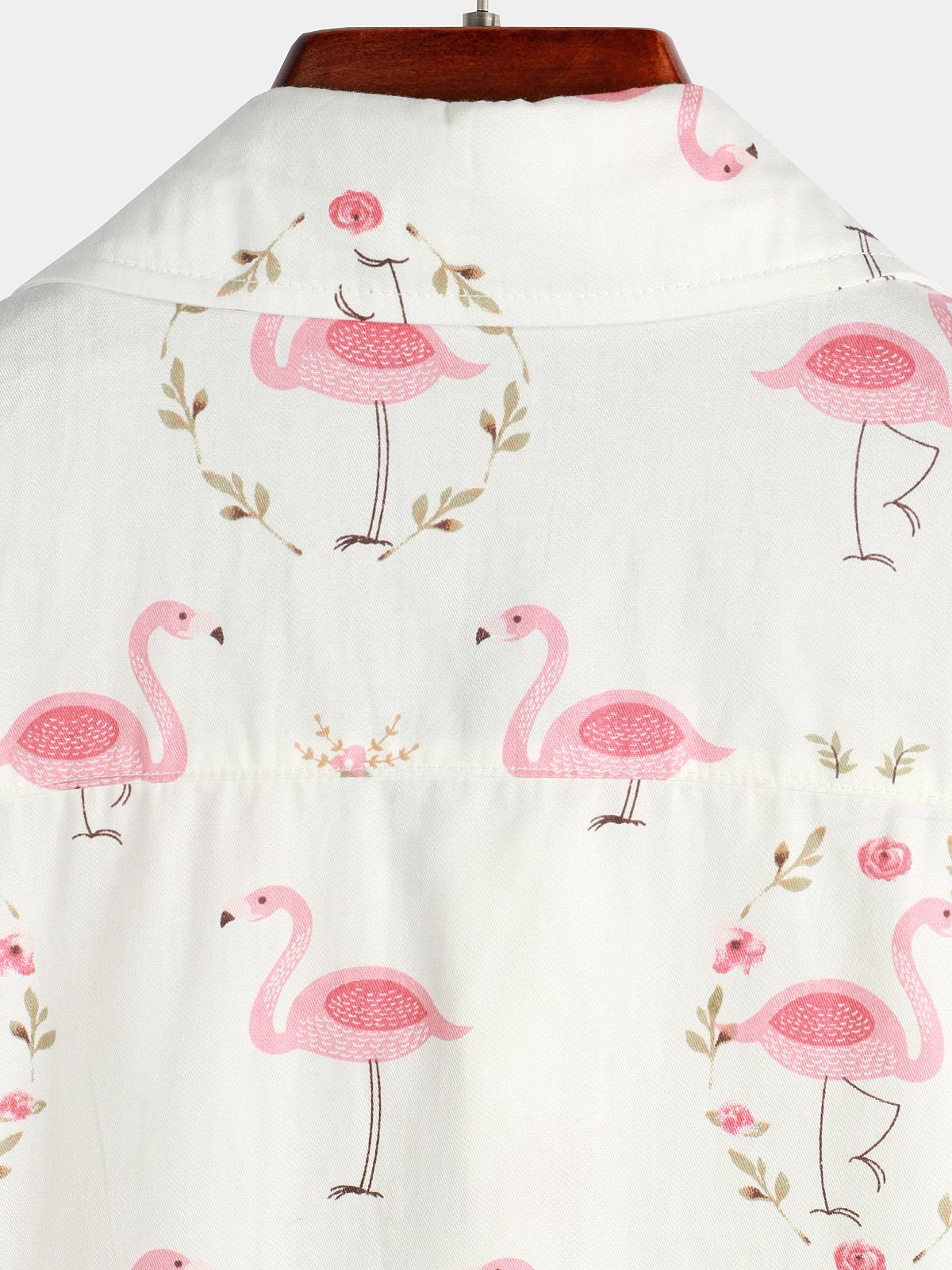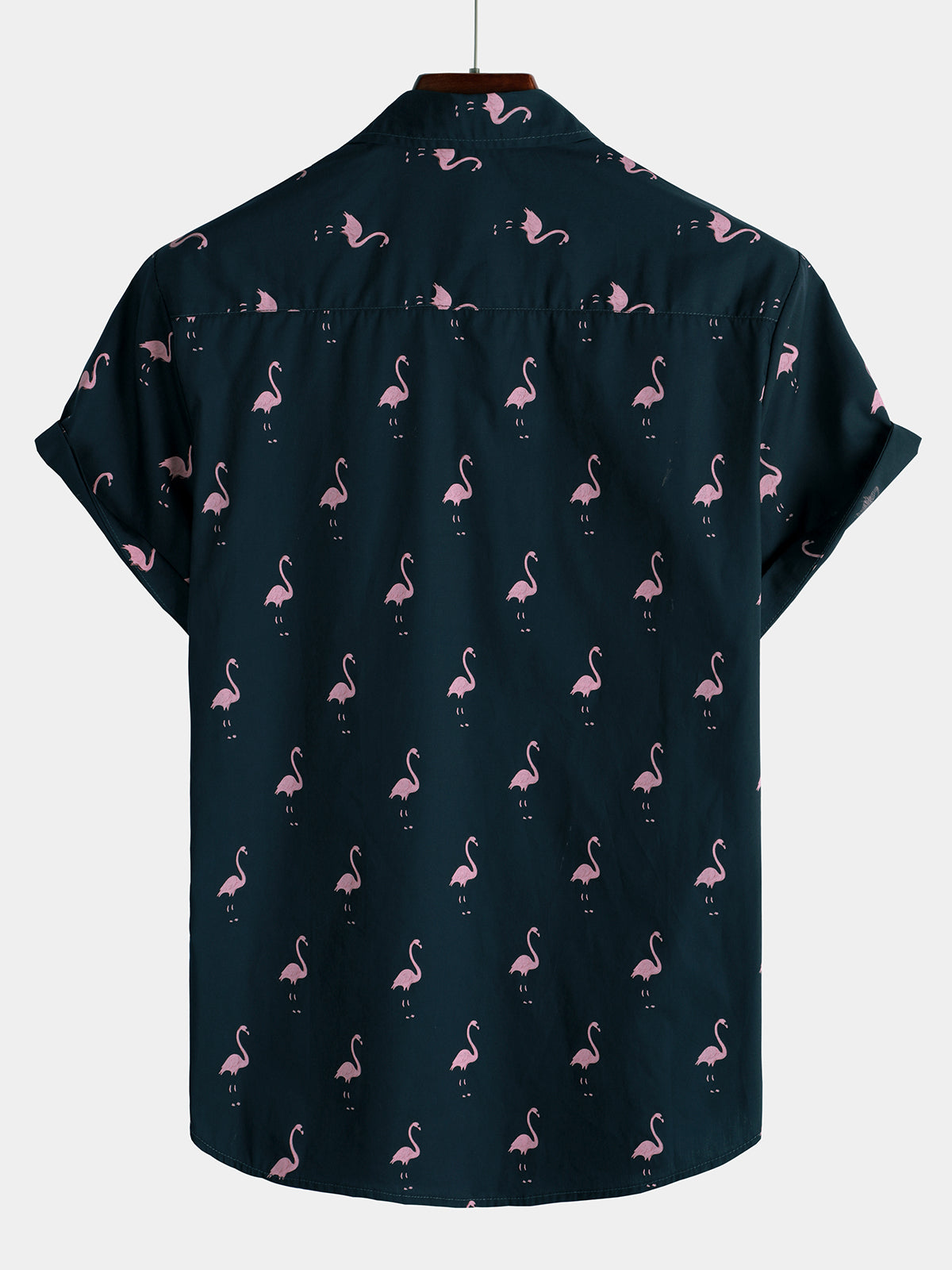 Men's Pink Flamingo Print Cotton Short Sleeve Shirt