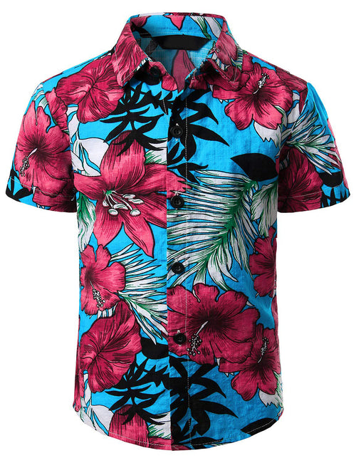 Children's Hawaiian Floral Print Tropical Aloha Holiday Summer Beach Short Sleeve Shirt