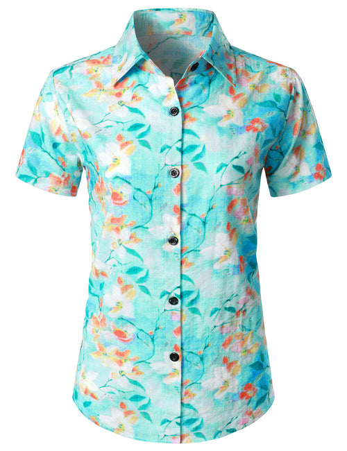 Women's Floral Print Blouse Flower Hawaiian Cotton Short Sleeve Beach Summer Aloha Shirt