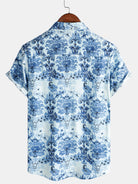 Men's Blue Floral Print Hawaiian Short Sleeve Shirt