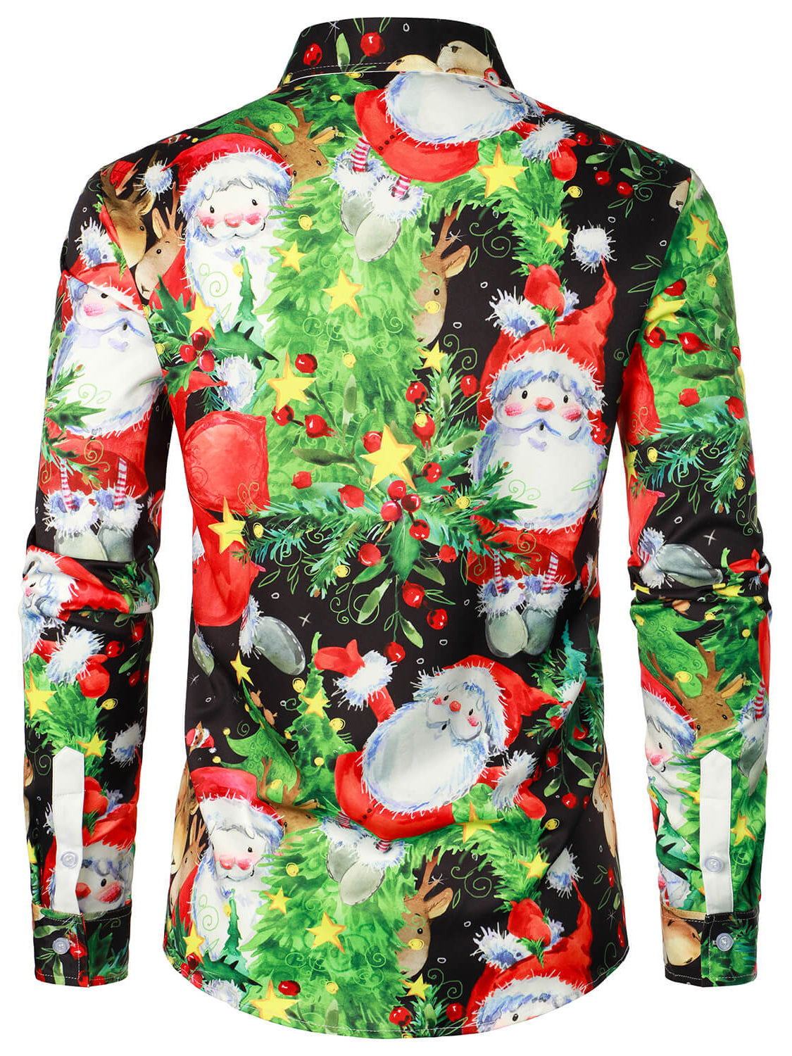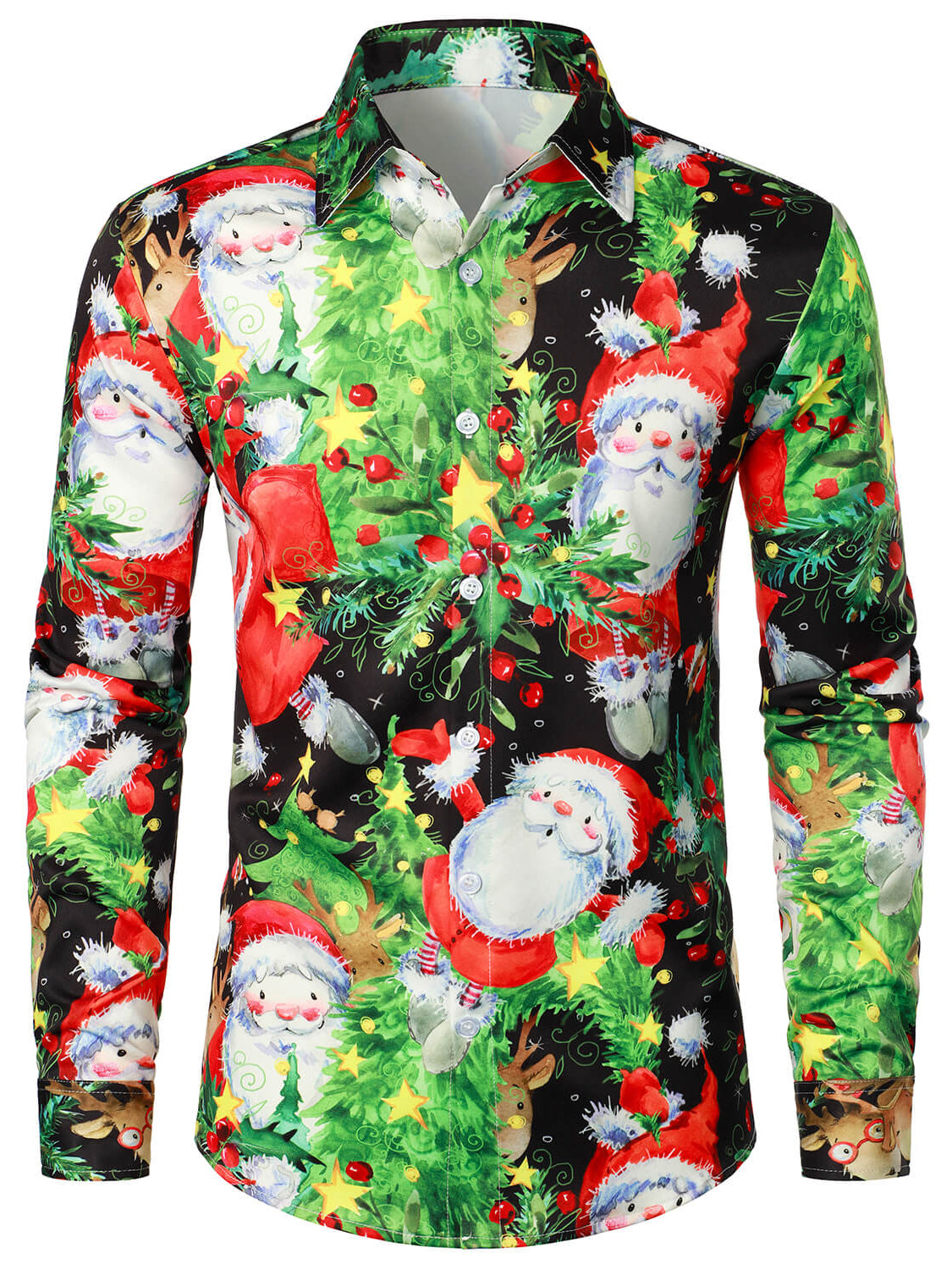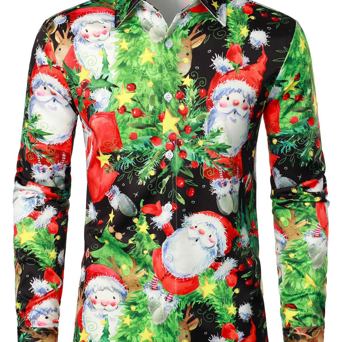 Men's Merry Christmas Cute Santa Elk Reindeer Snowman Print Holiday Xmas Day Button Up Red Long Sleeve Shirt