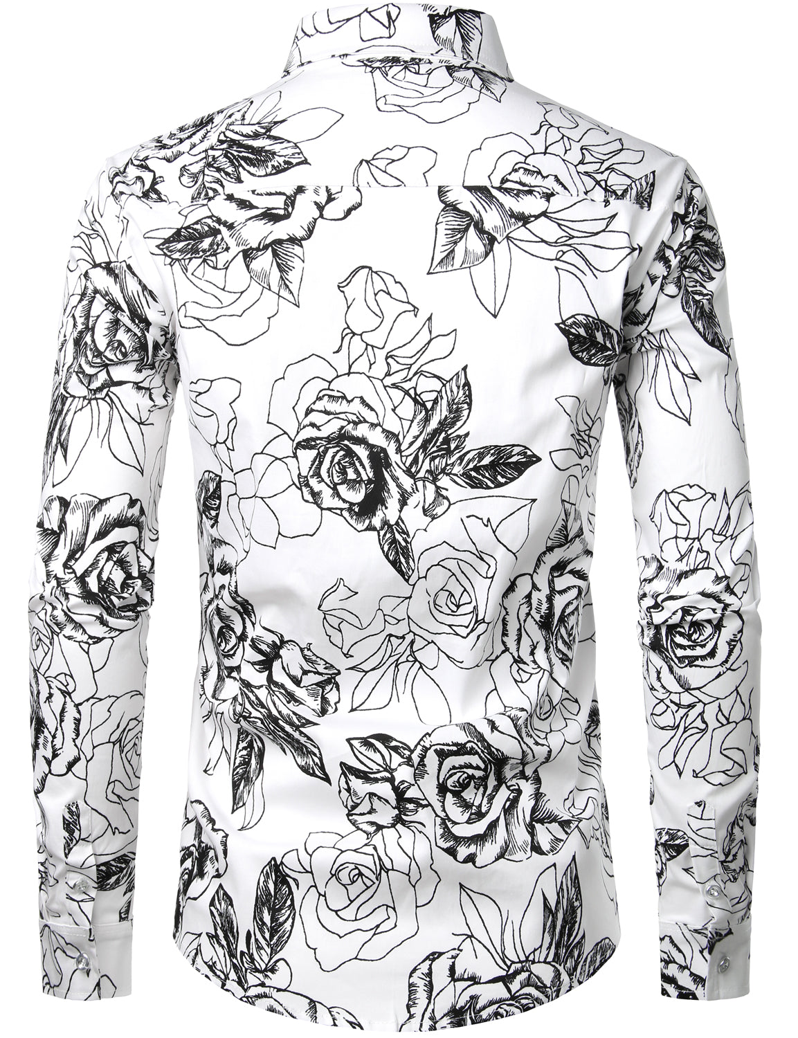 Men's Floral Rose Cotton Casual Button Up Flower Long Sleeve Regular fit Dress Shirt