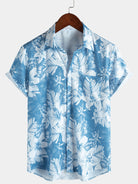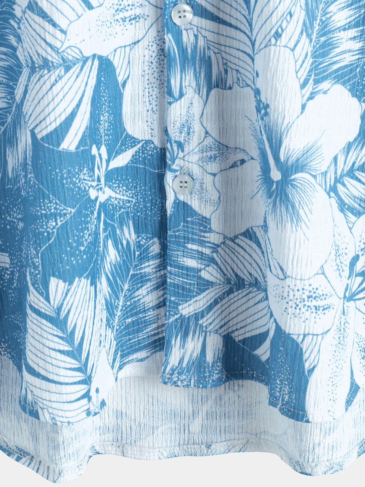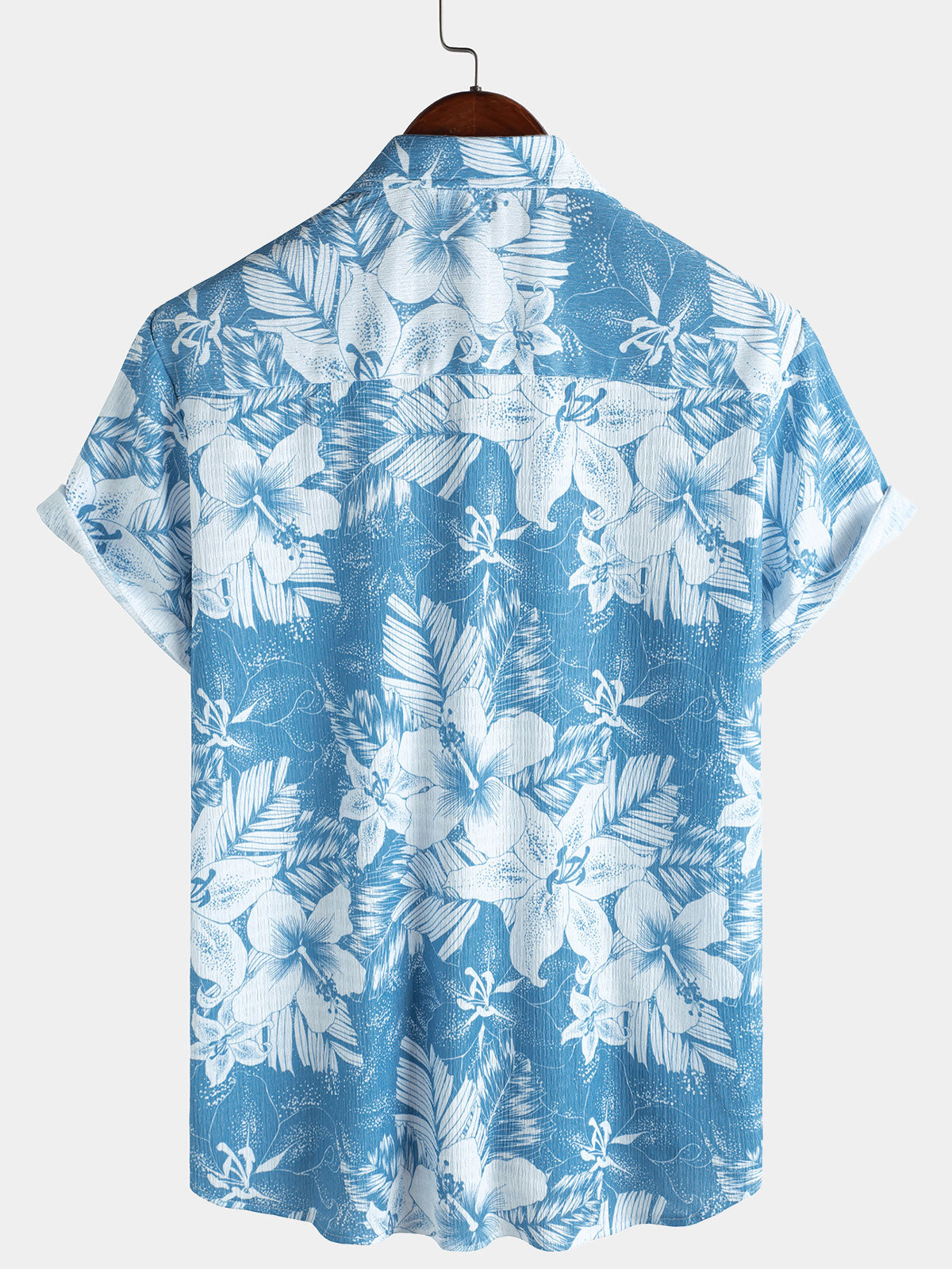 Men’s Blue Tropical Print Summer Beach Short Sleeve Shirt
