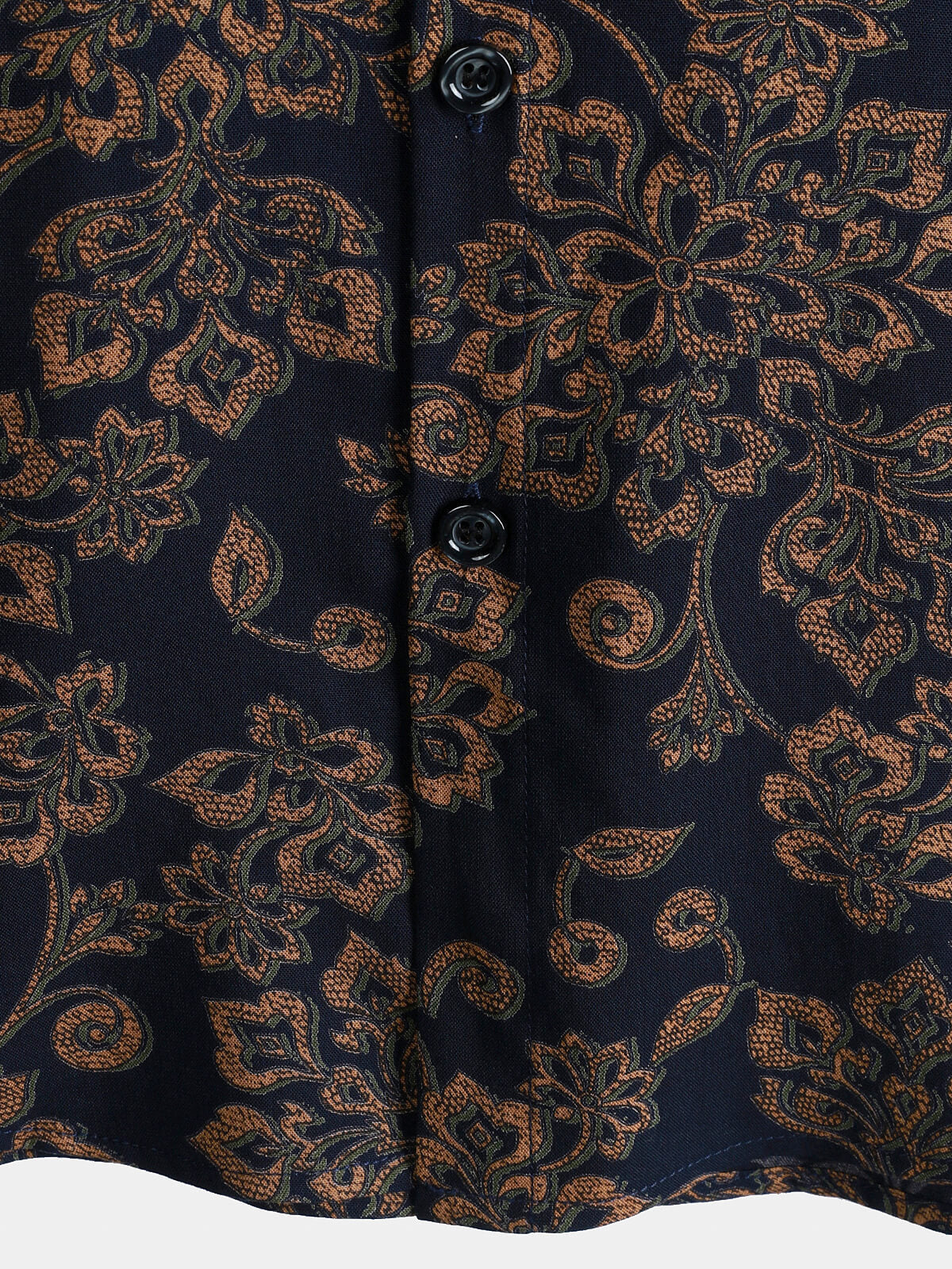 Men's Rayon Navy Paisley Print Retro Boho Short Sleeve Shirt