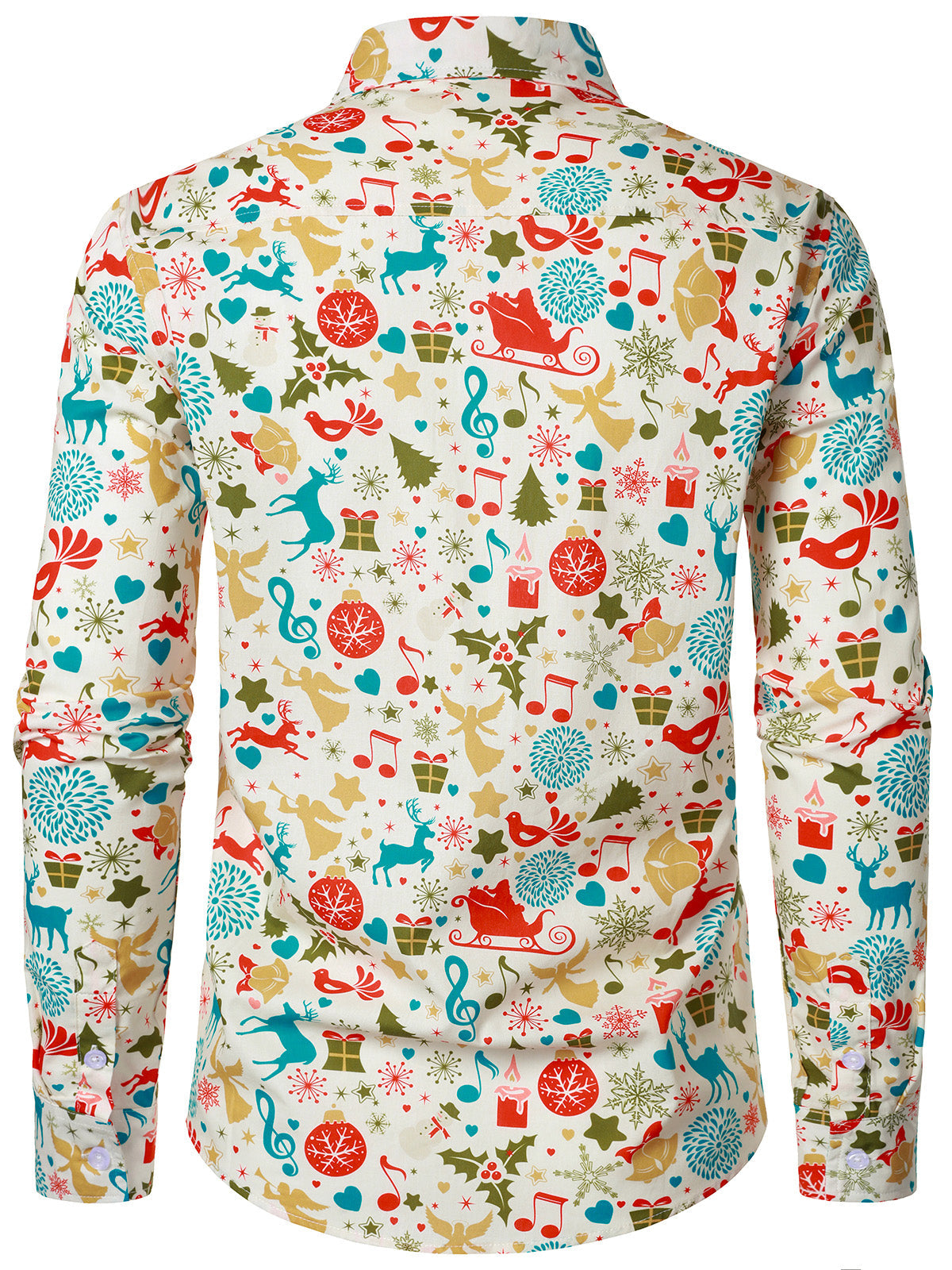 Men's Christmas Reindeer Print Holiday Long Sleeve Shirt