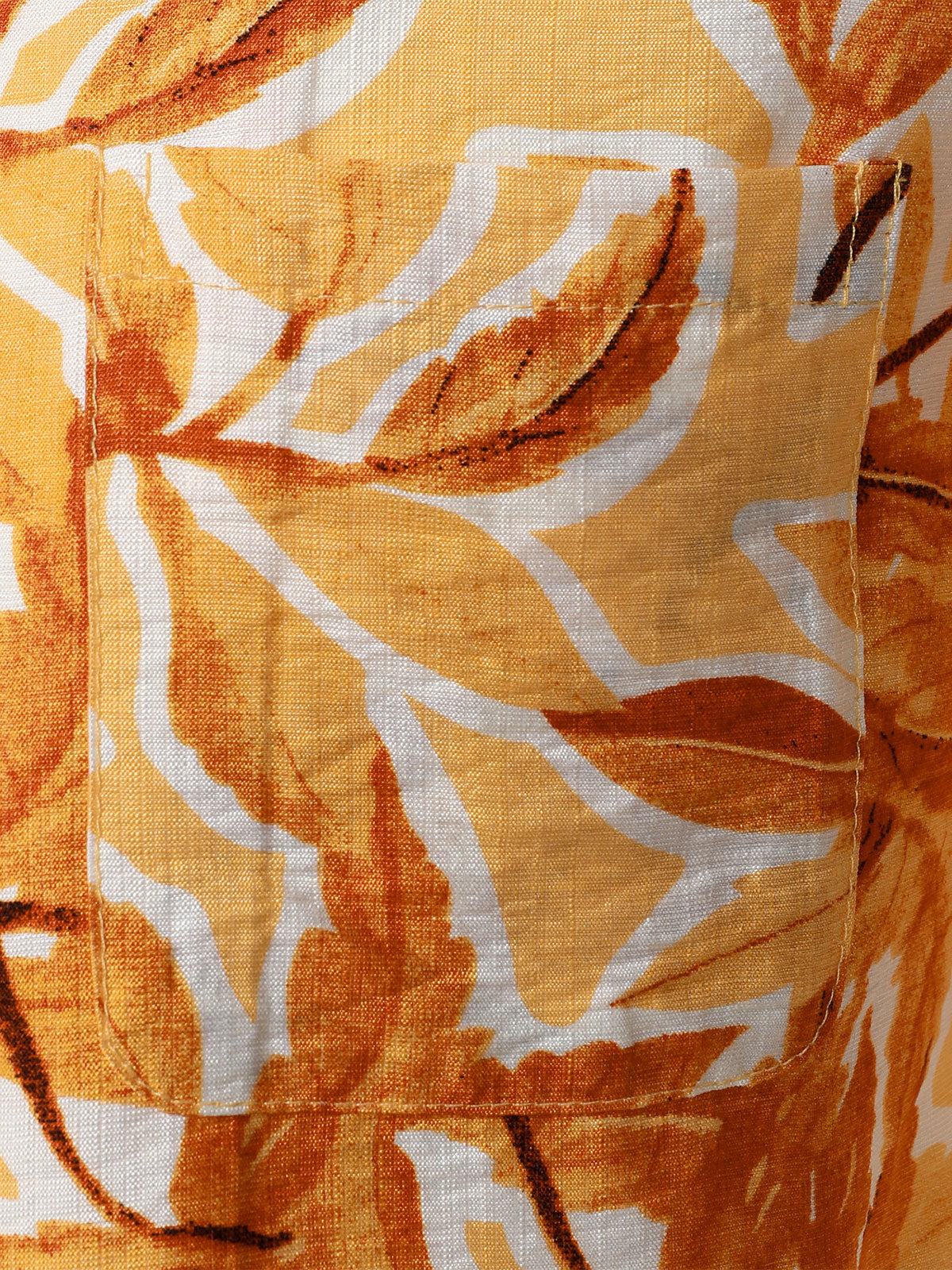 Men's Yellow Tropical Print Pocket Hawaiian Short Sleeve Shirt