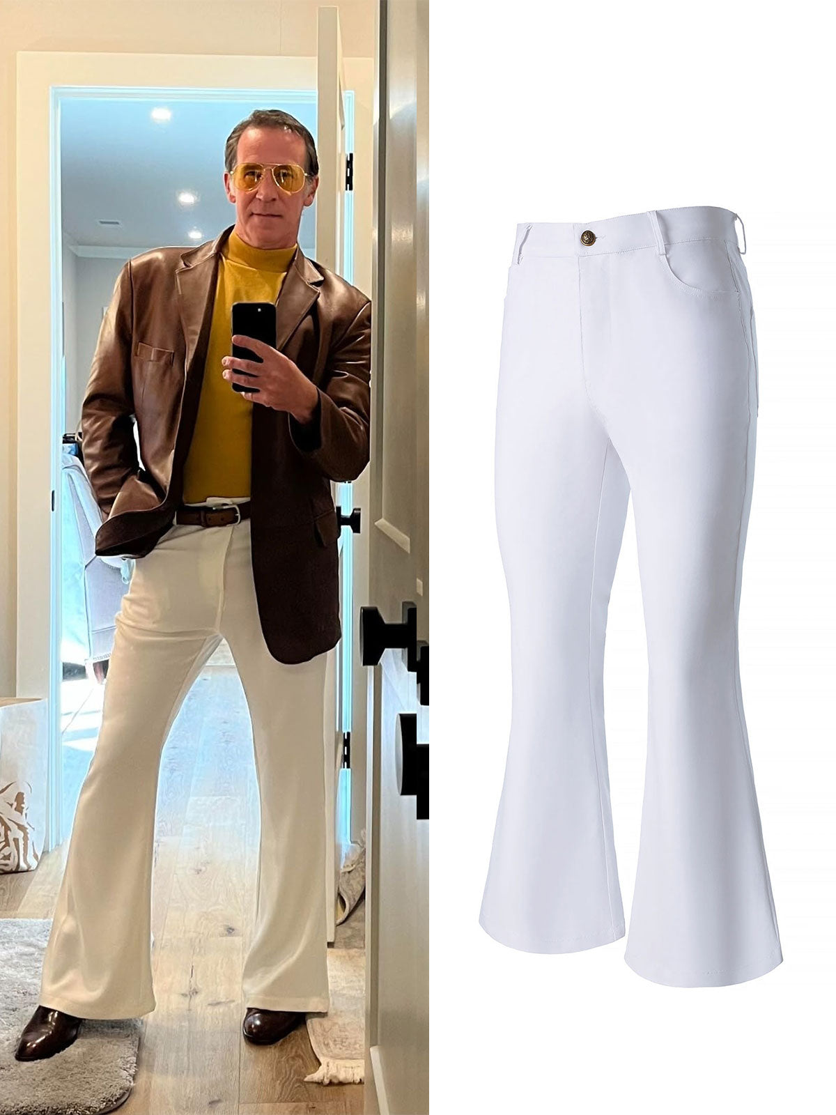 Men's Bell Bottom Pants 70s Disco Outfits Slim Fit Retro Flared Trousers