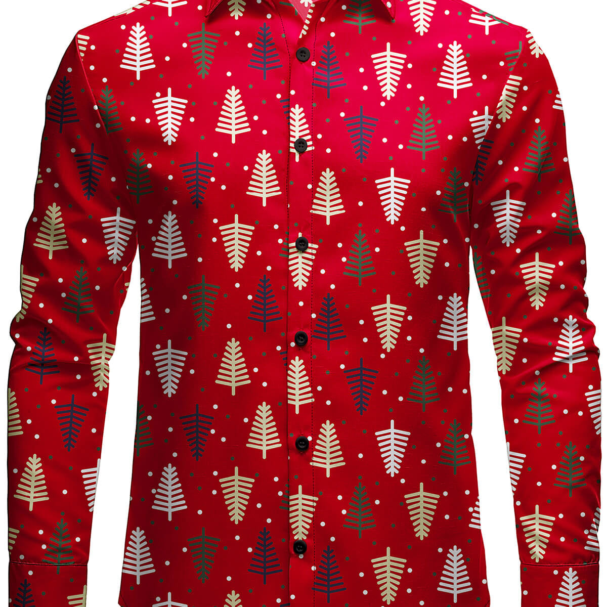 Men's Christmas Long Sleeve Snow Red Christmas Tree Shirt