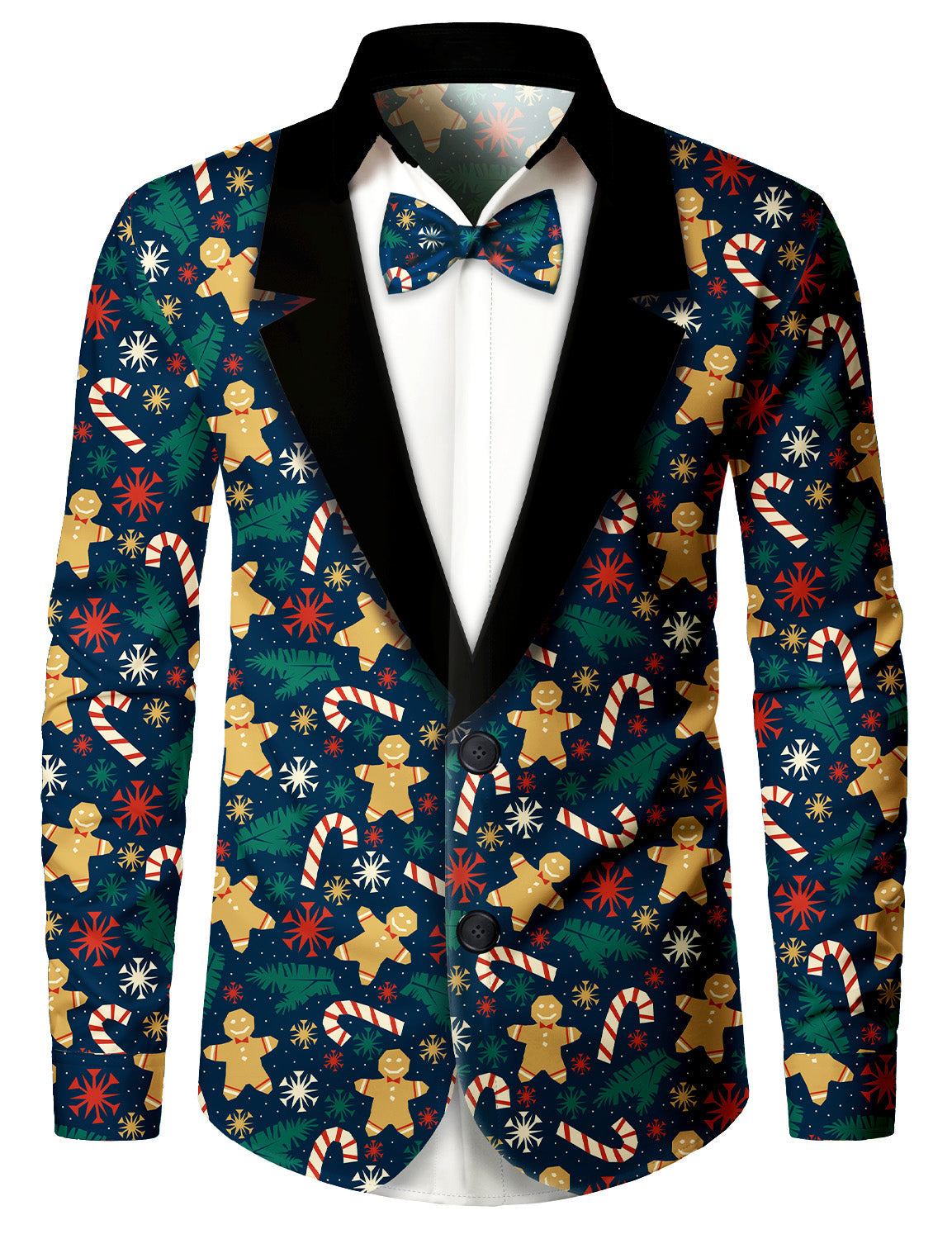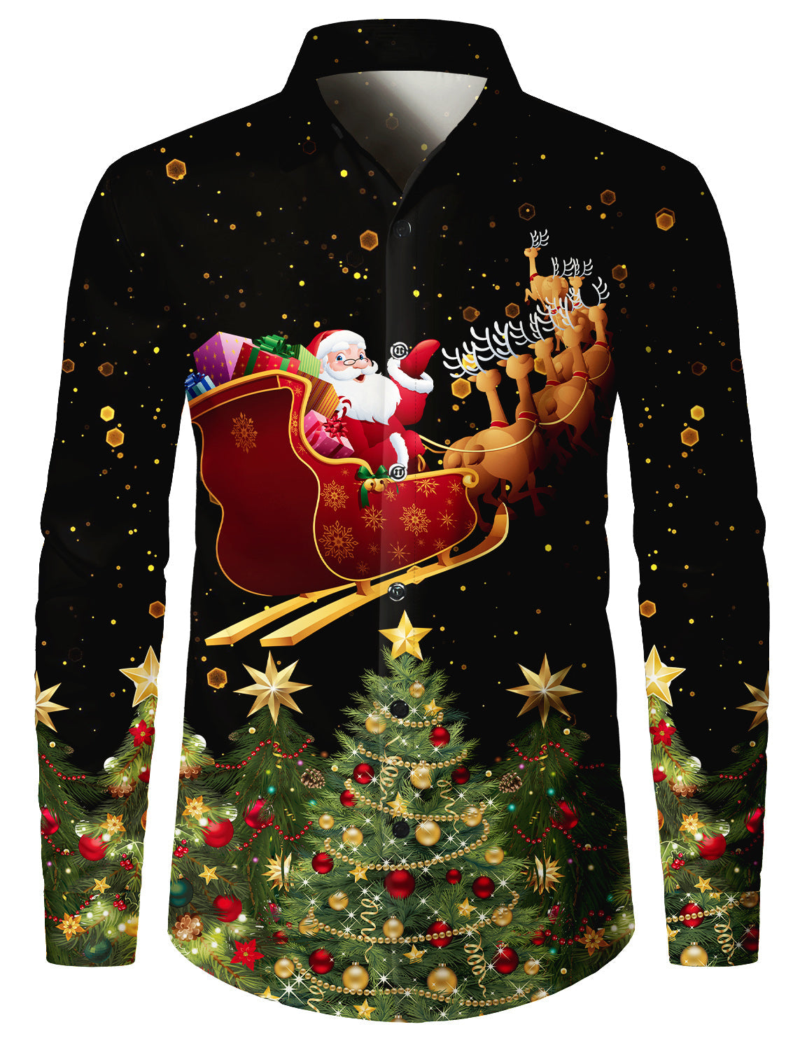 Men's Christmas Santa Claus Reindeer Funny Holiday Long Sleeve Shirt