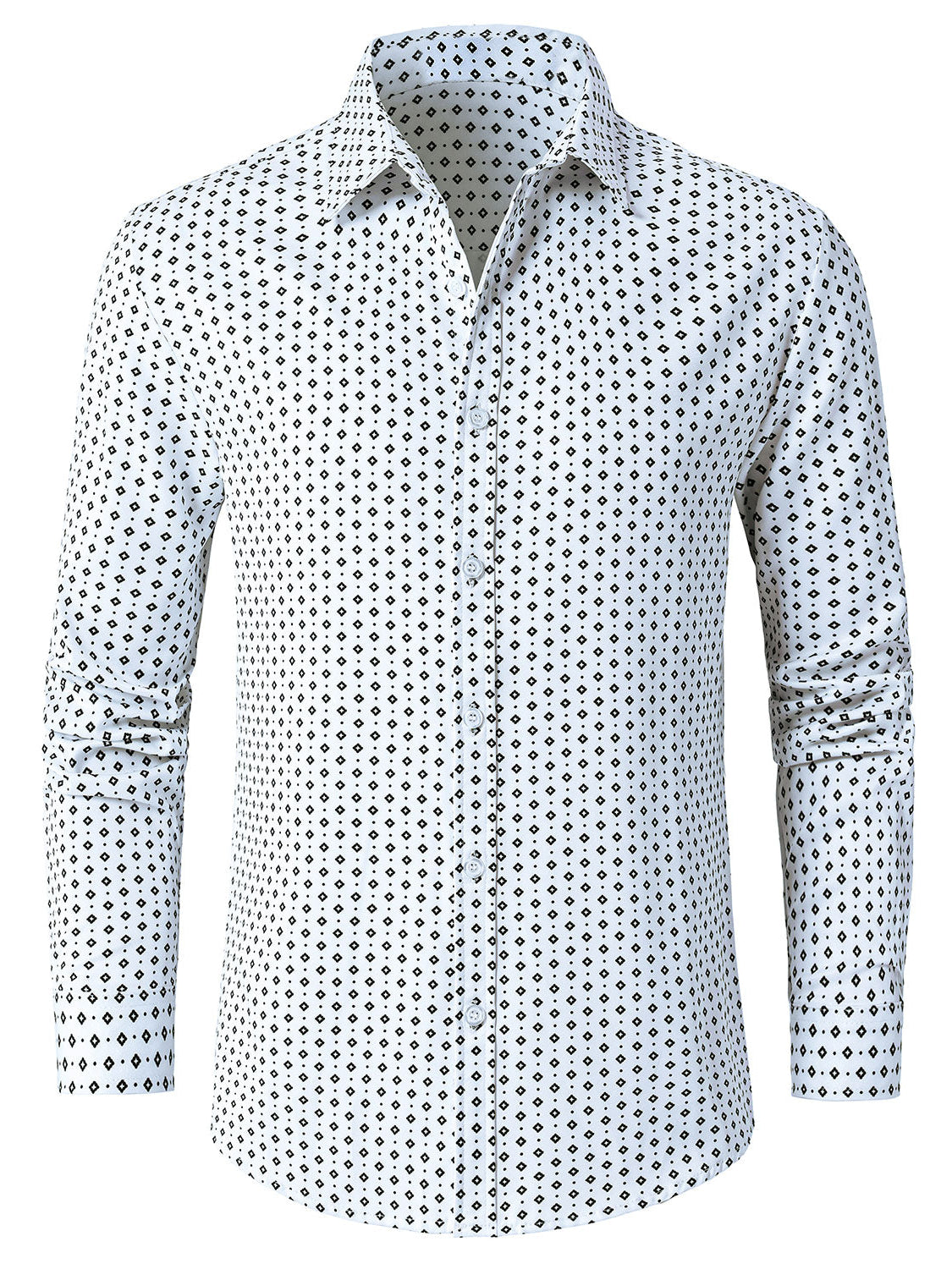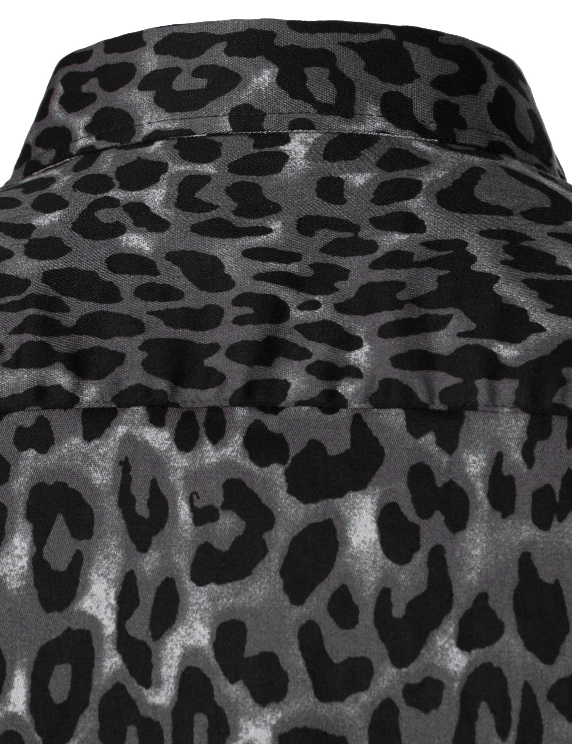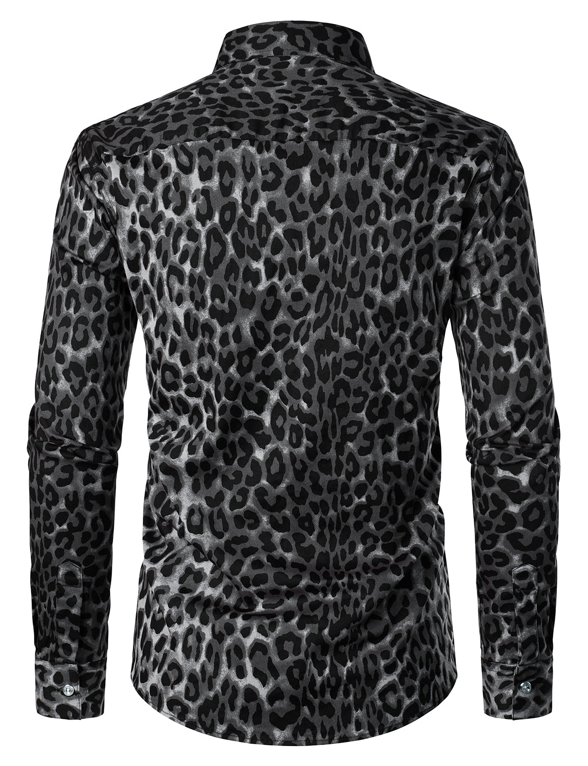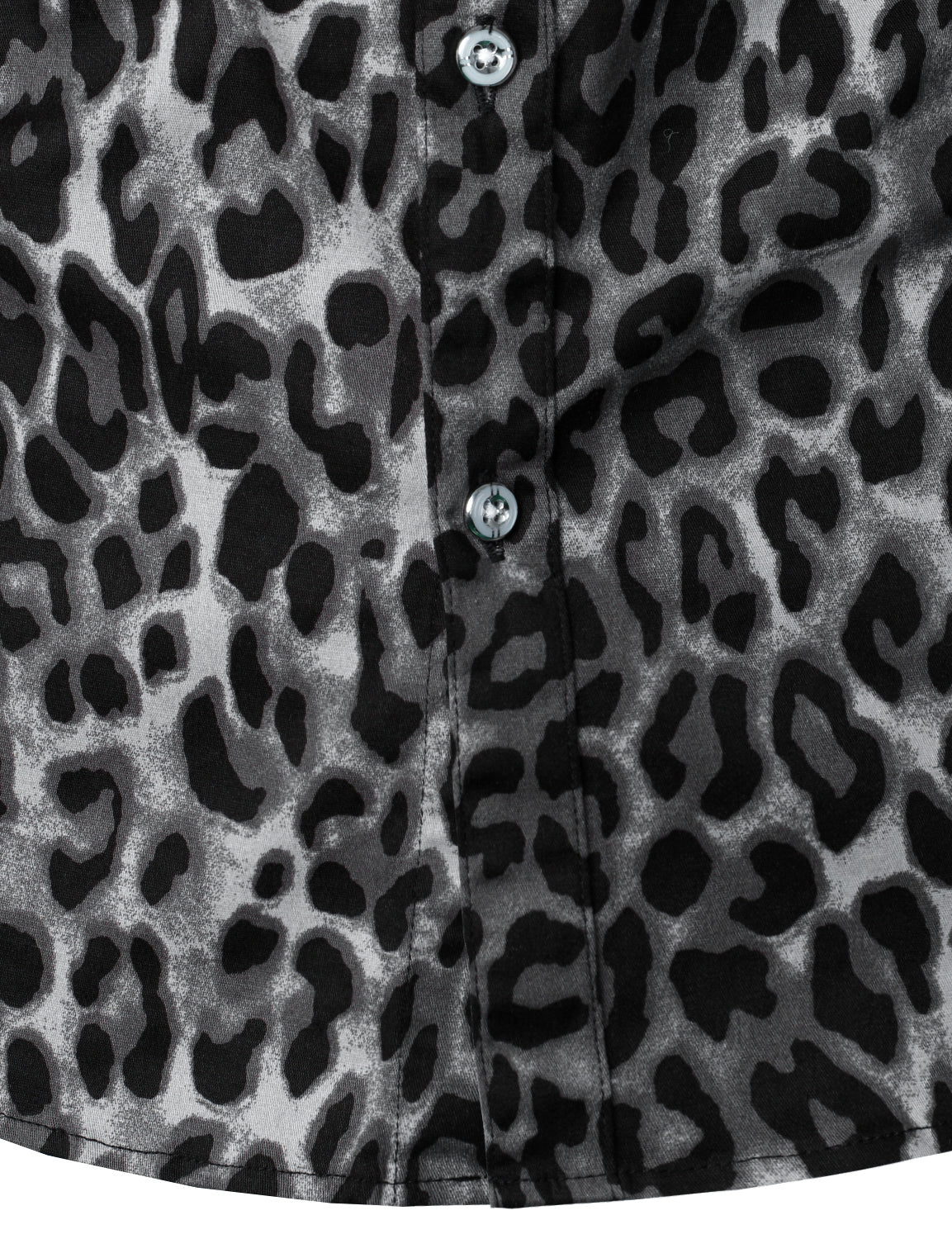 Men's Grey Snow Leopard Print Animal Casual Rock Cool Cotton Long Sleeve Shirt