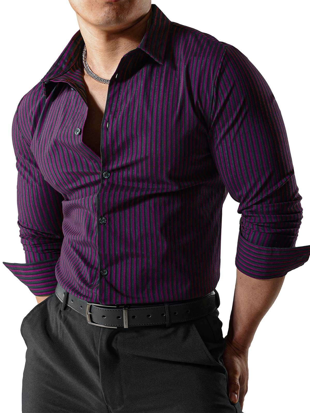 Men's Striped Textured Wrinkle-Free Long Sleeve Shirts