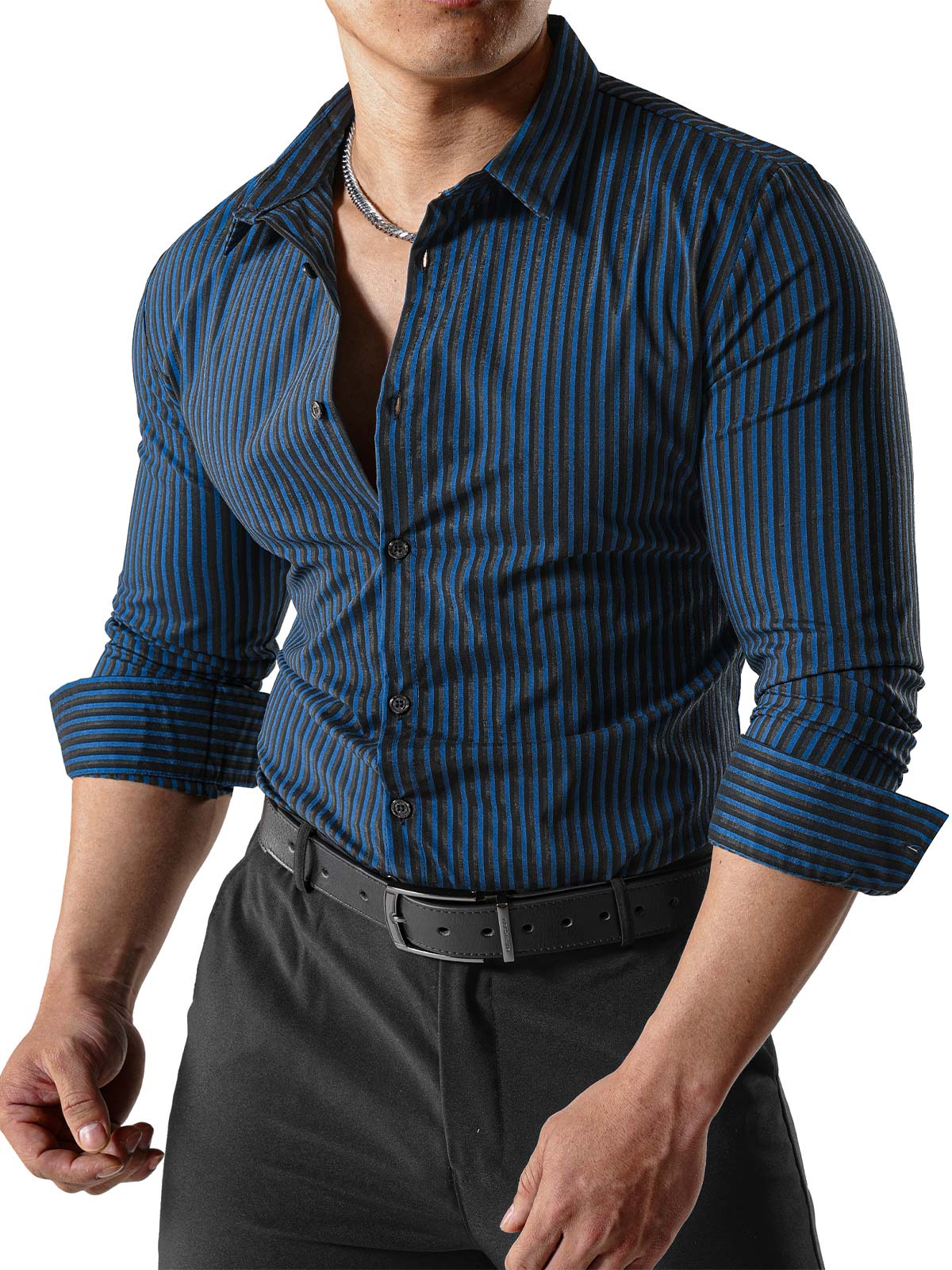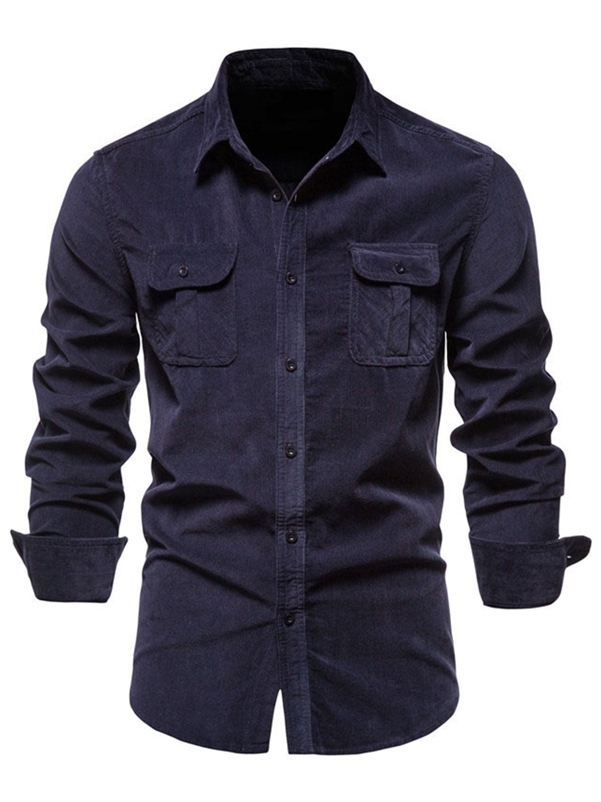 Men's Breathable Cotton Solid Color Button Up Long Sleeve Shirt