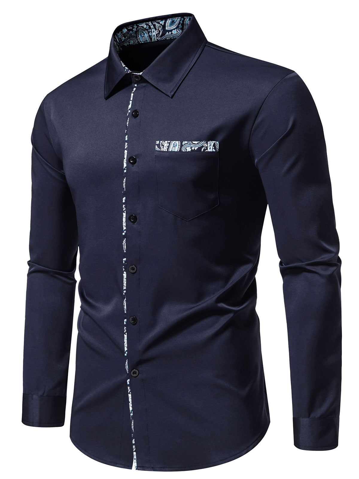 Men's Colorblock Paisley Print Button Up Long Sleeve Shirt