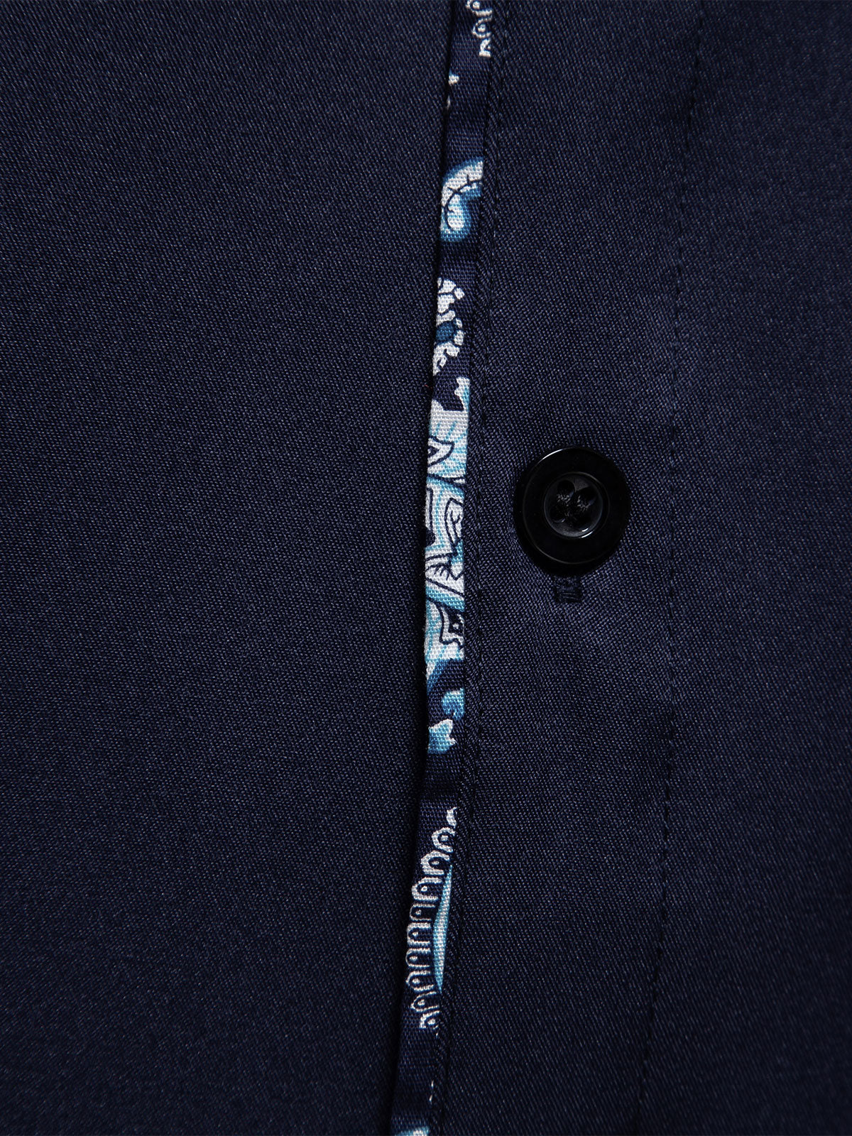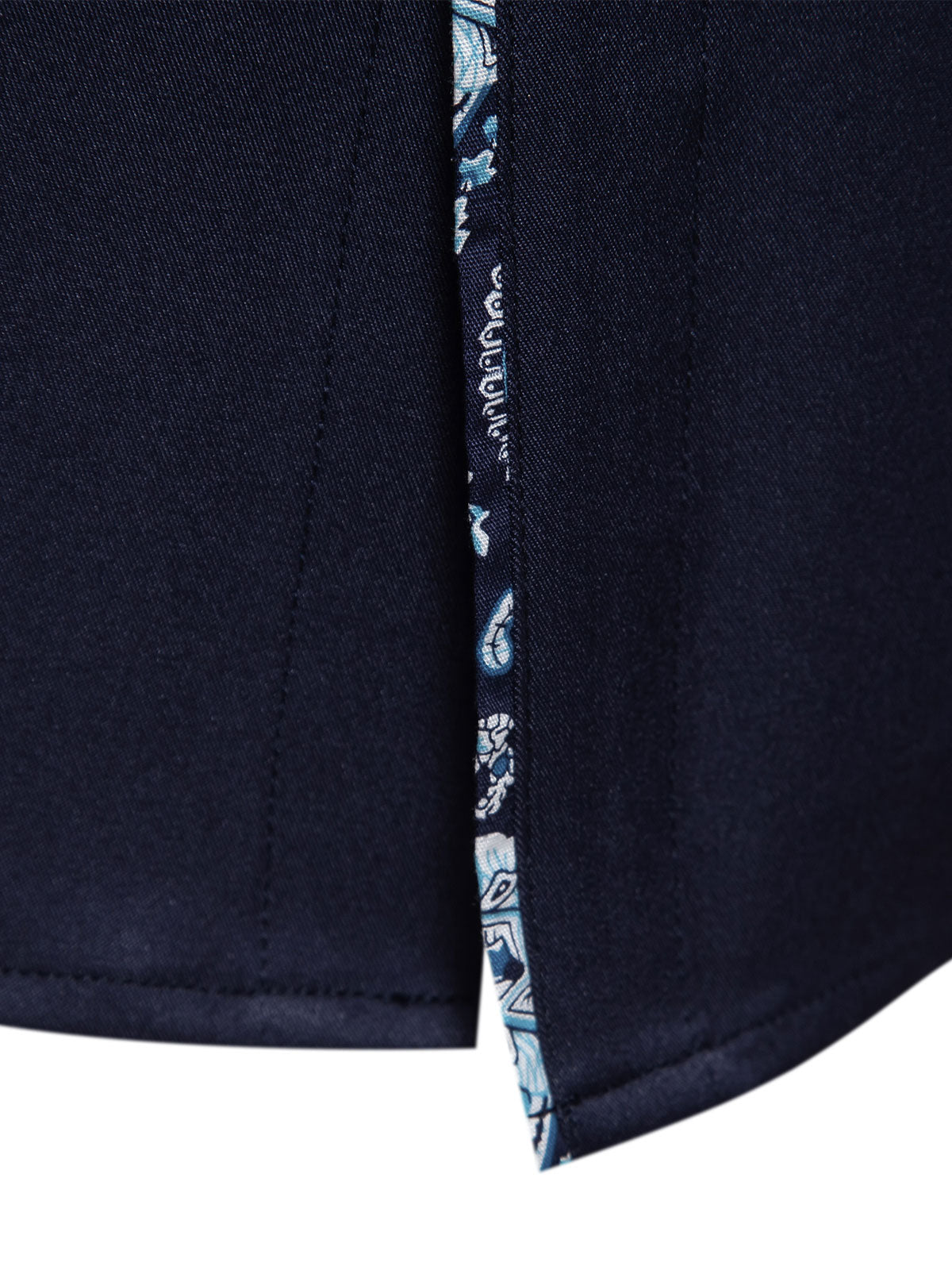 Men's Navy Blue Vintage Floral Cotton Breathable Flower Button Long Sleeve Dress Shirt