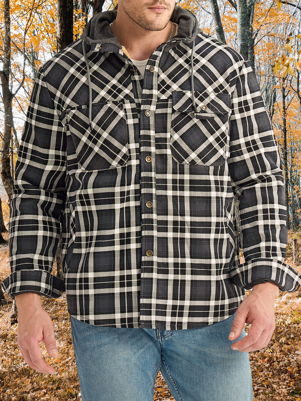 Men's Casual Flannel Lined Long Sleeve Fall Winter Warm Plaid Hooded Shirt Jacket