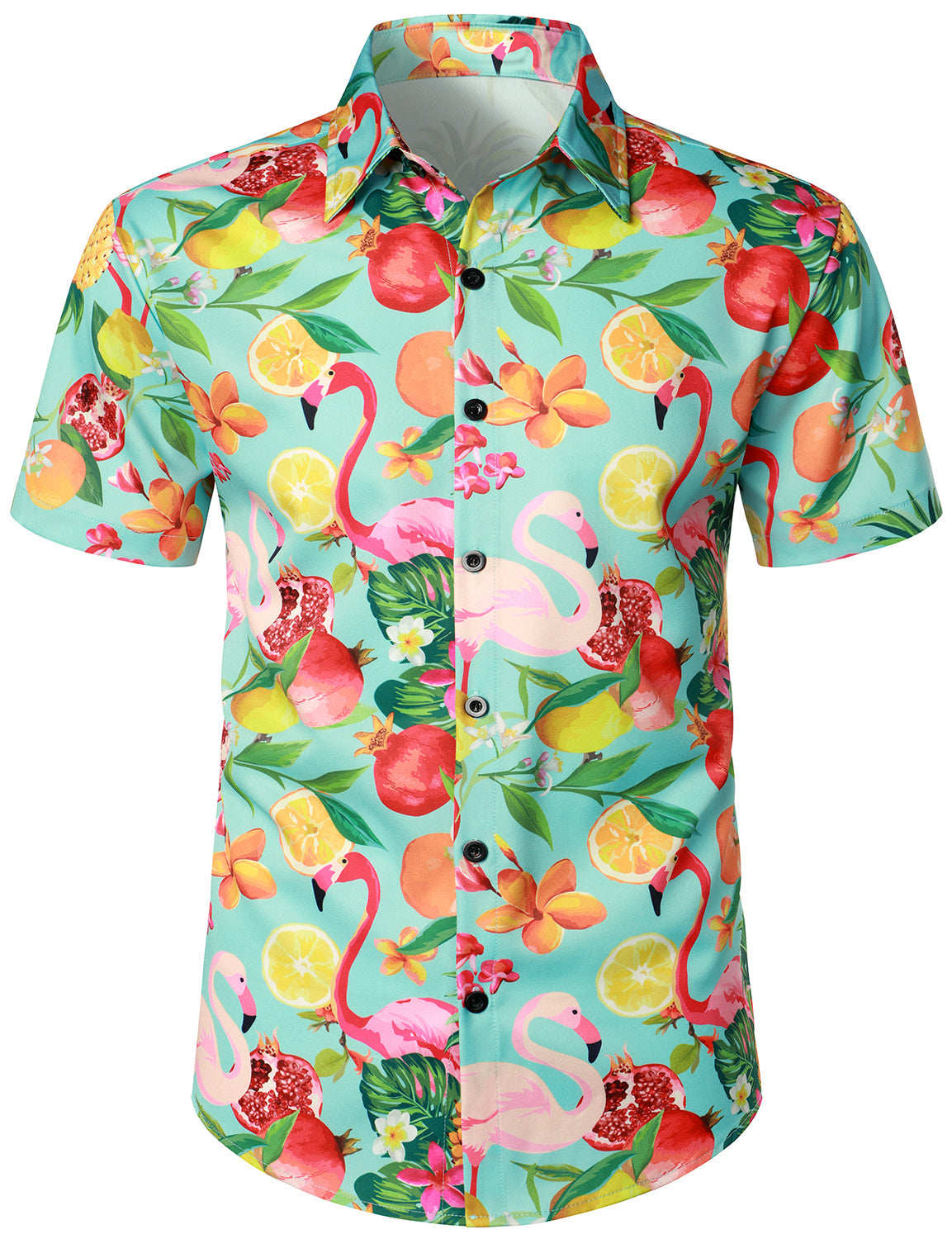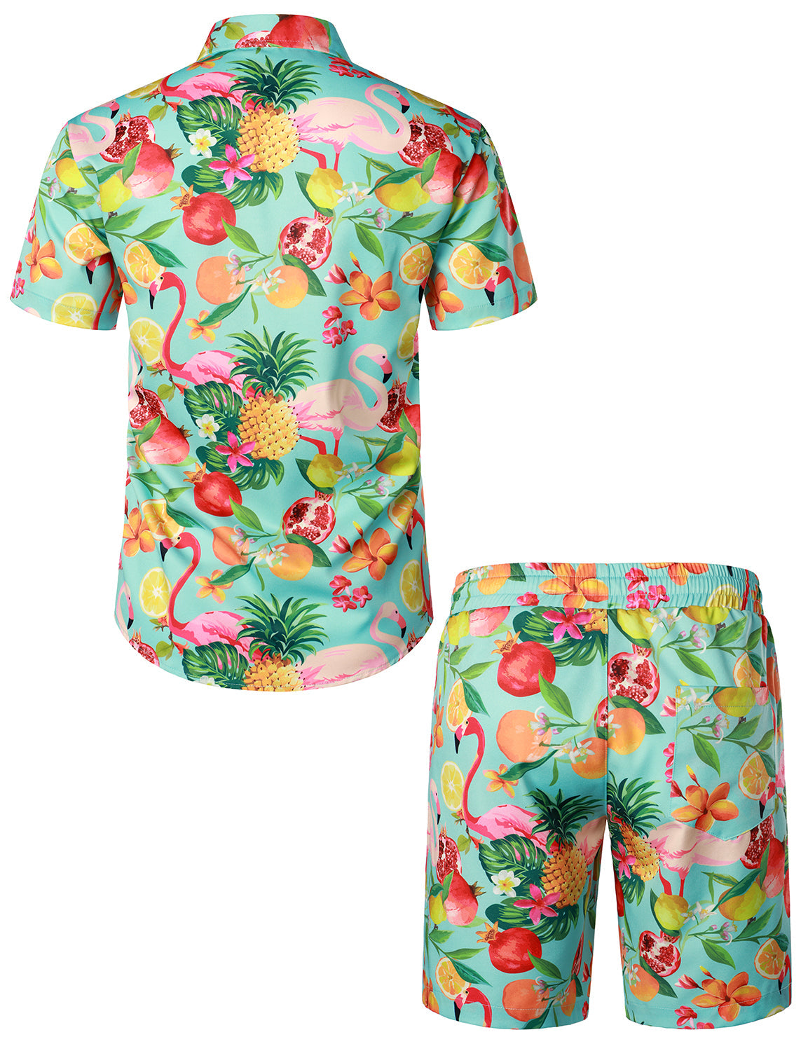 Men's Flamingo Pineapple Print Hawaiian Shirt & Shorts Set