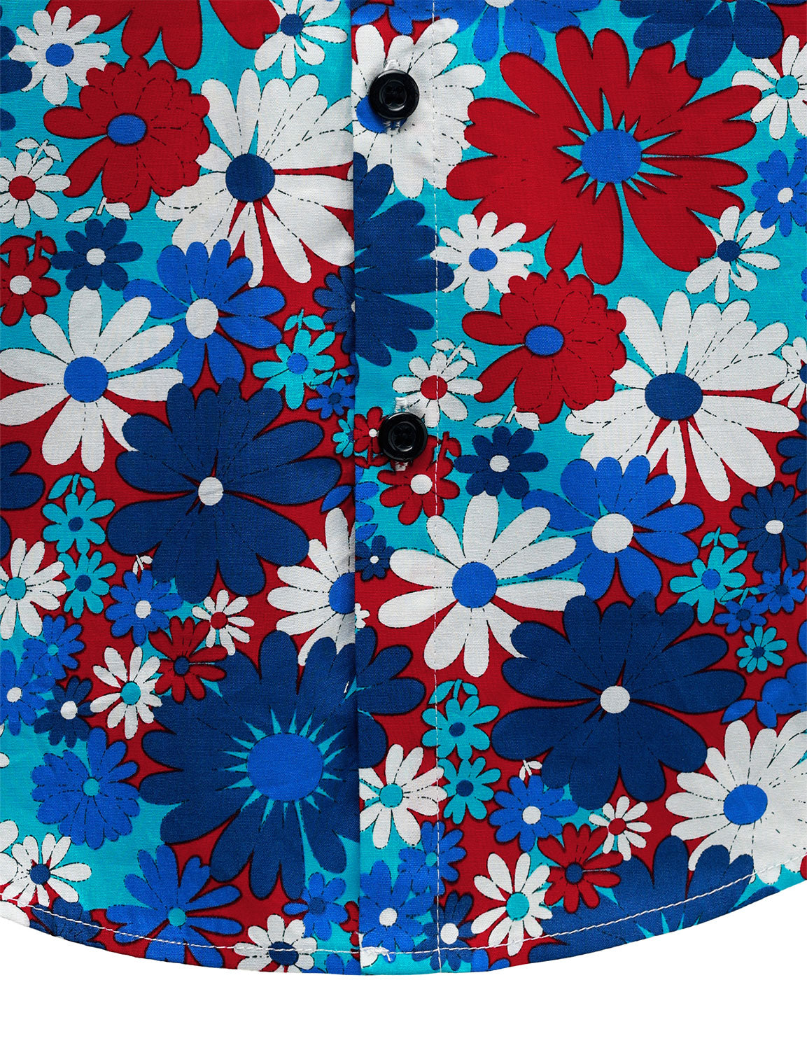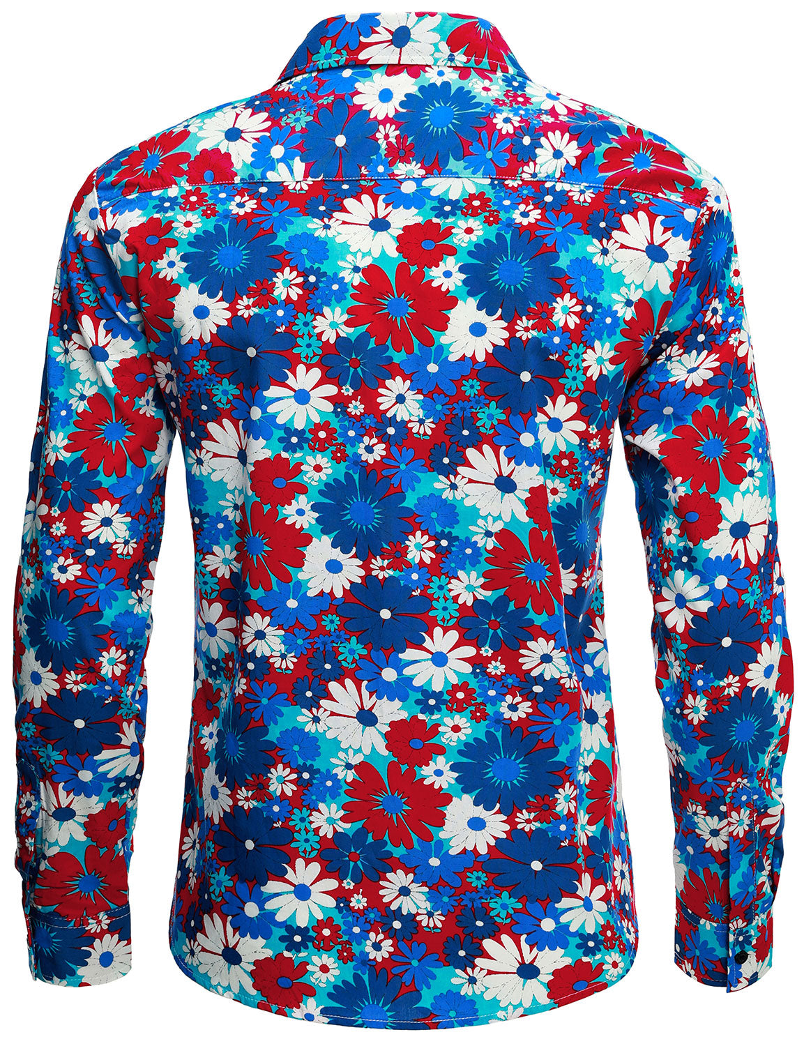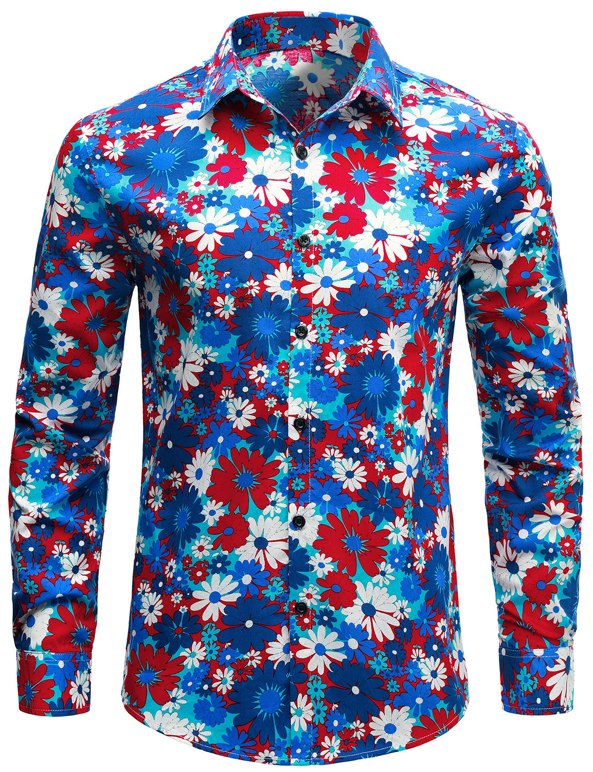 Men's Cotton Blue Floral Button Up Long Sleeve Shirt
