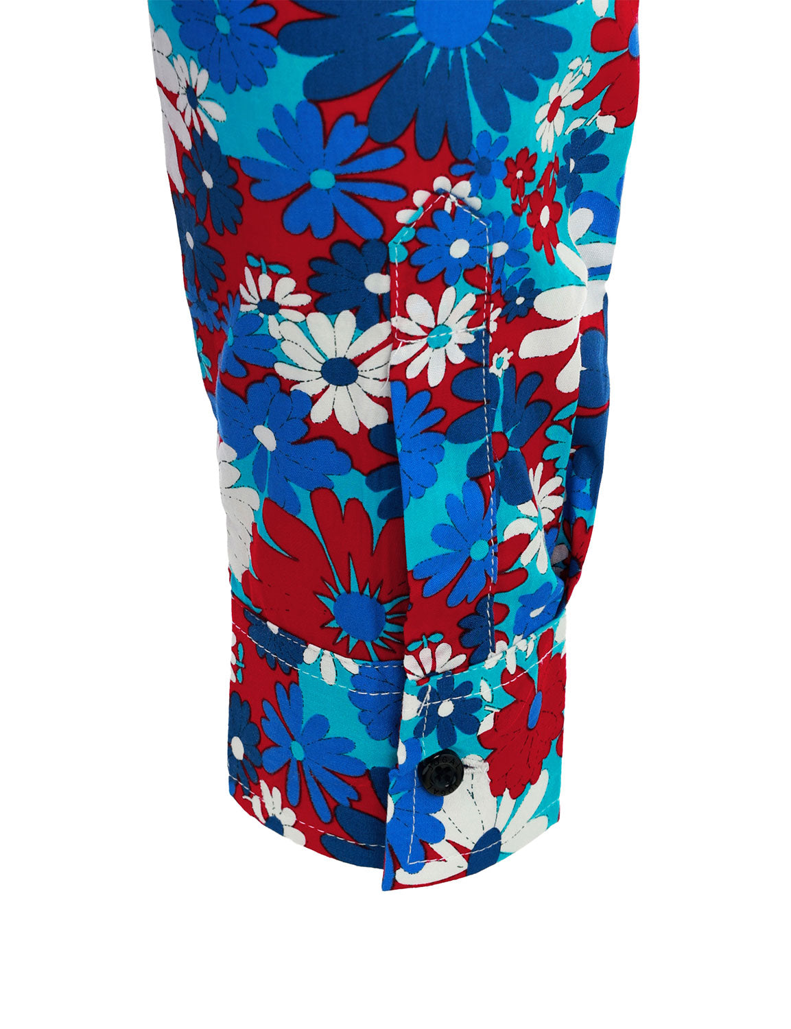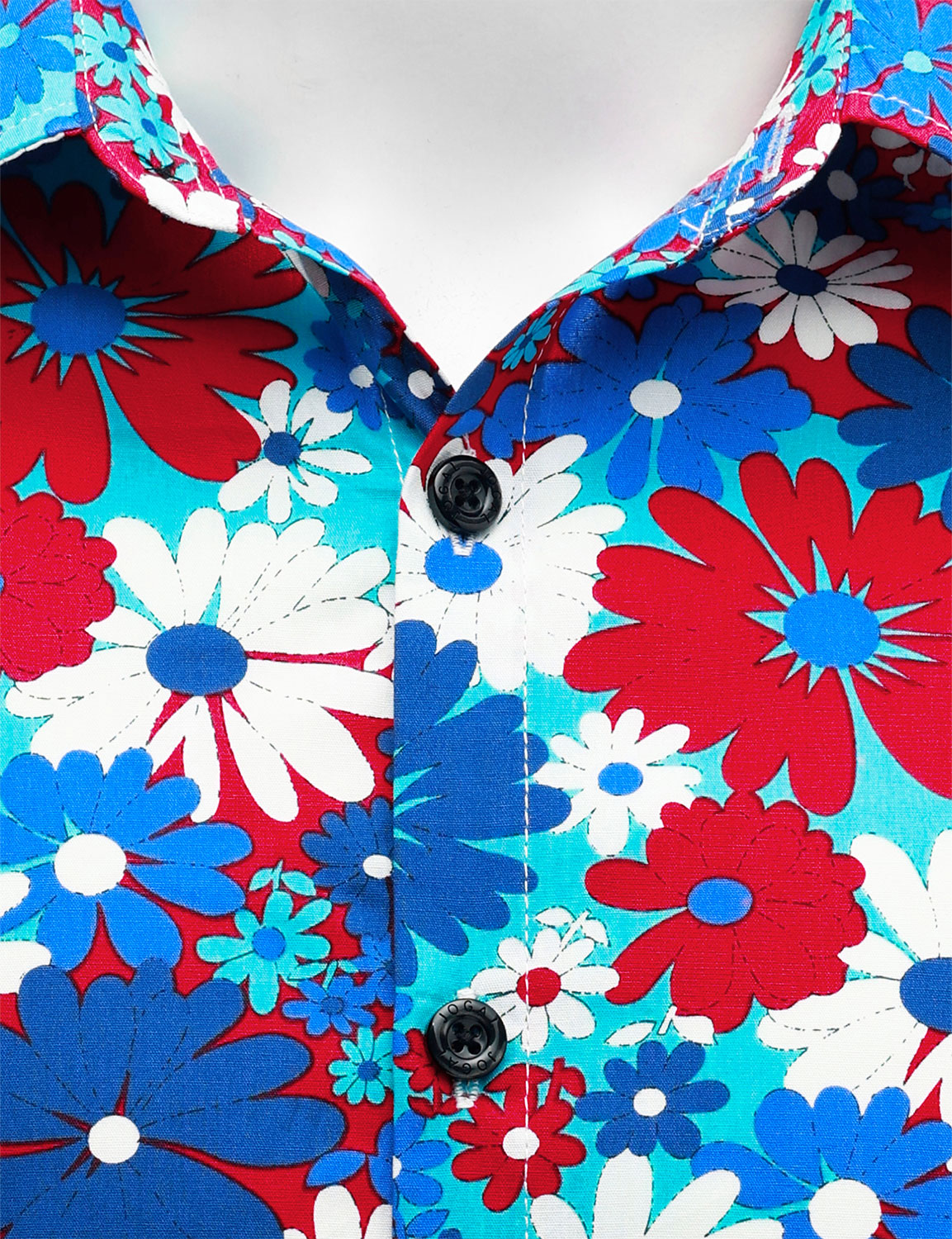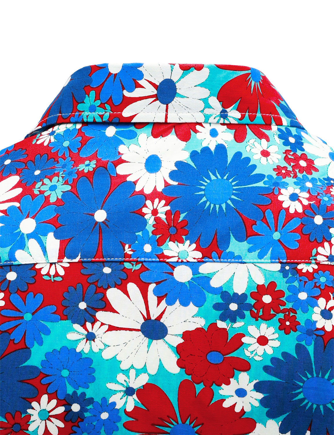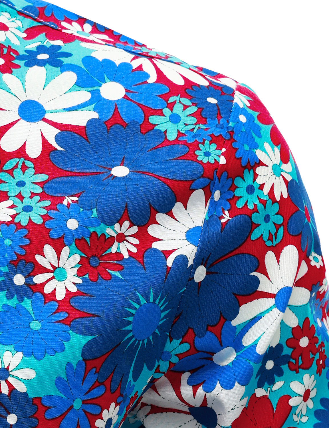 Men's Cotton Blue Floral Button Up Long Sleeve Shirt