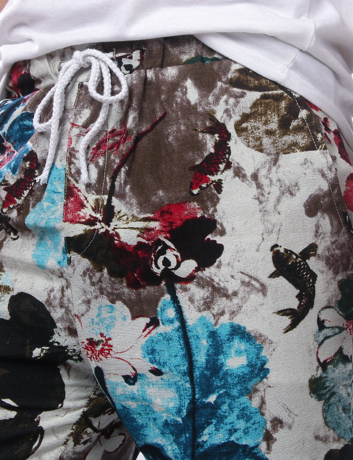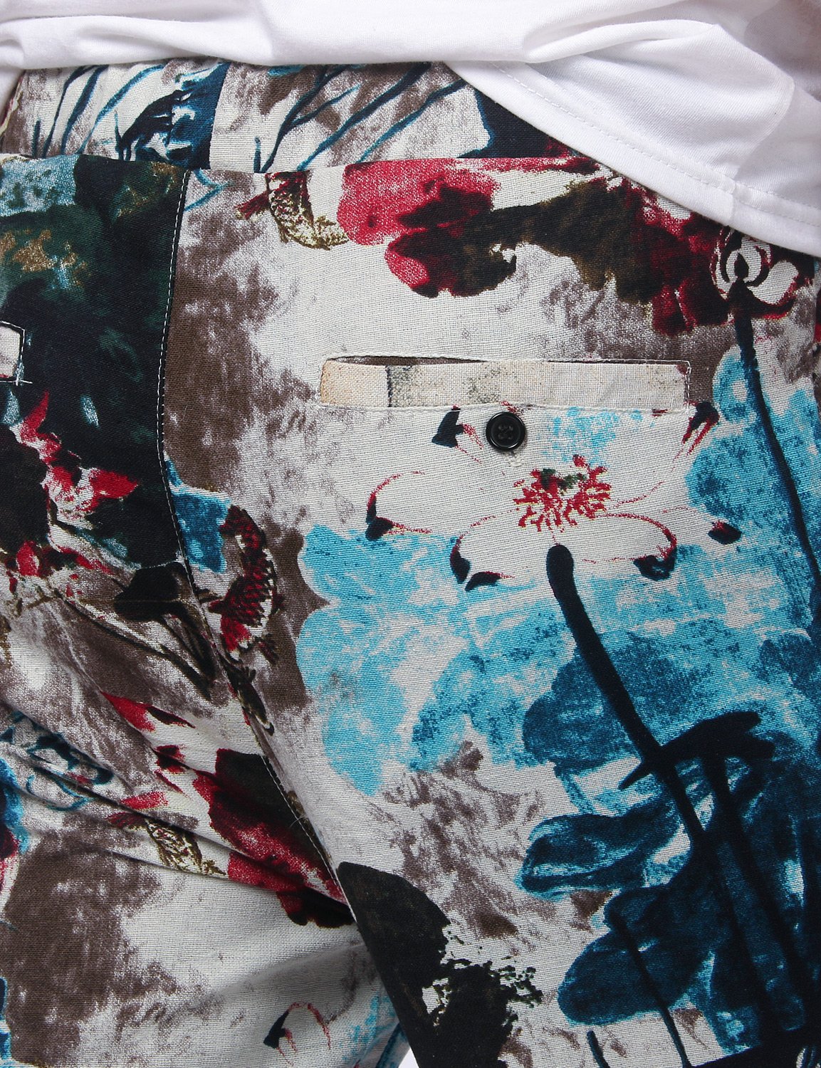 Men's Cotton Casual Red Flower Hawaiian Shorts