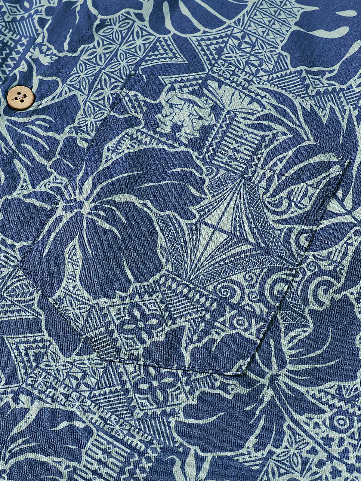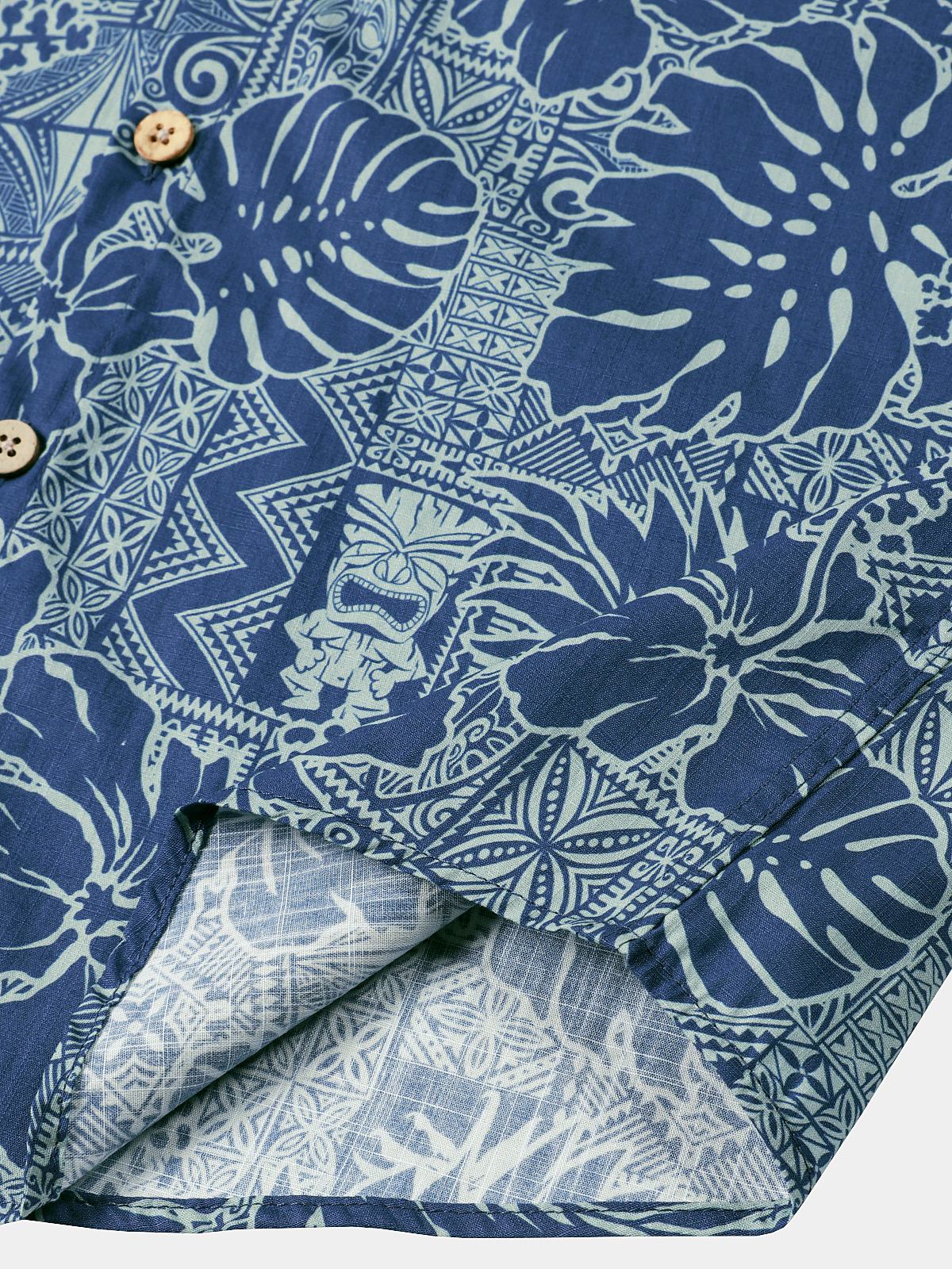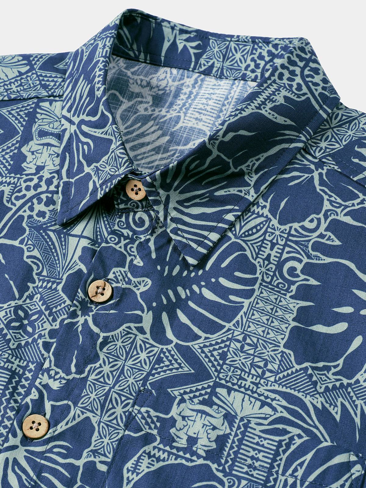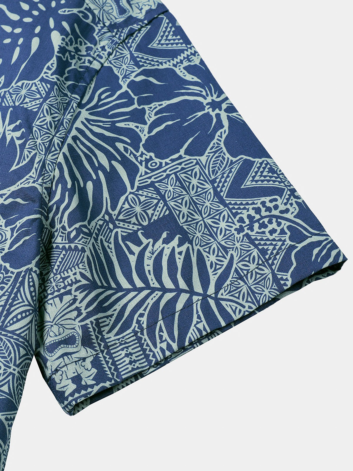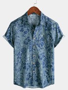 Men's Breathable Short Sleeve Tropical Botanical Cotton Shirt