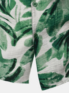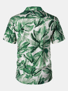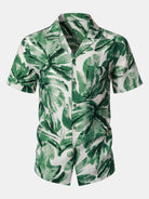 Men's Green Tropical Leaves Print Pocket Hawaiian Short Sleeve Shirt